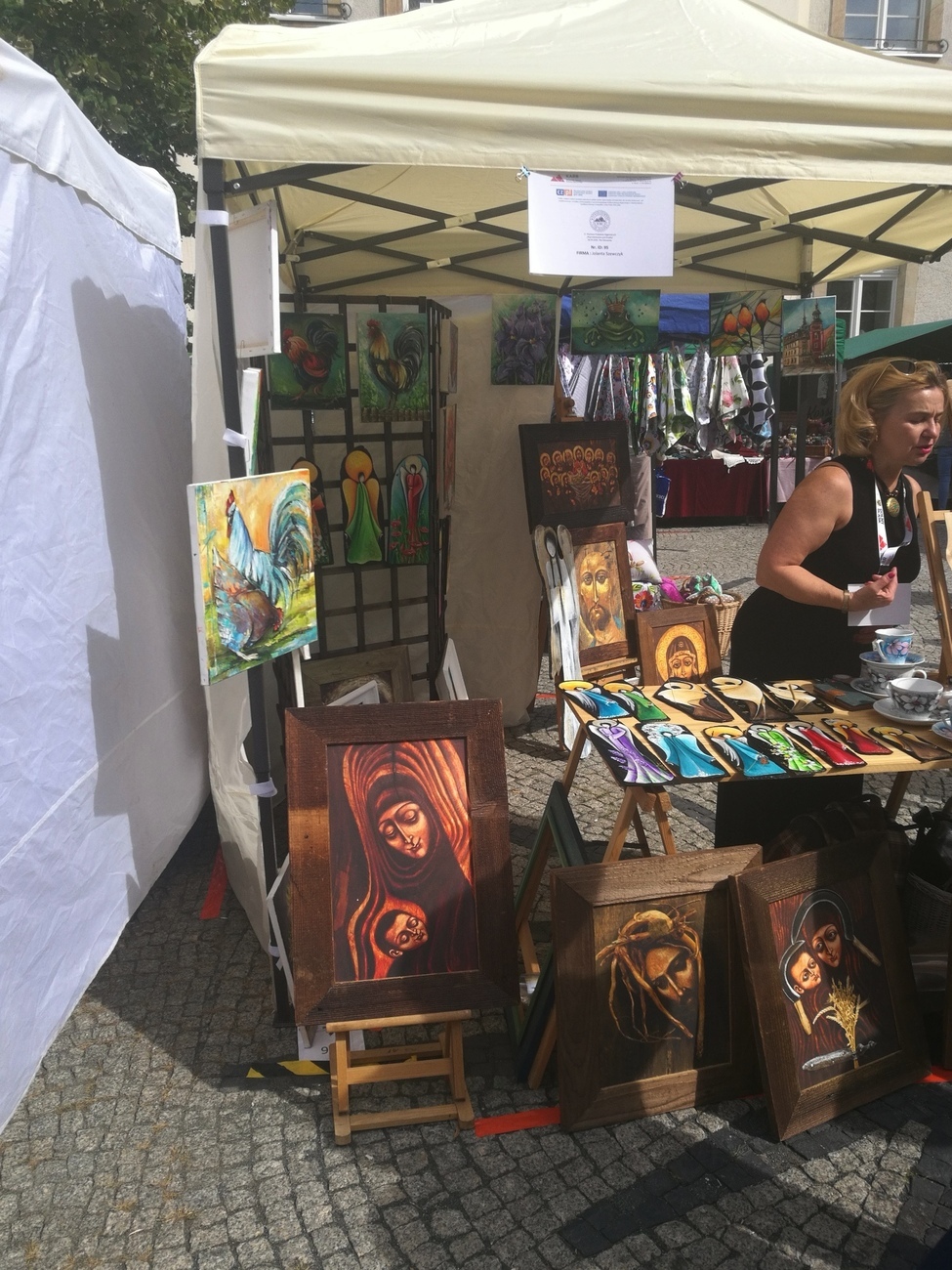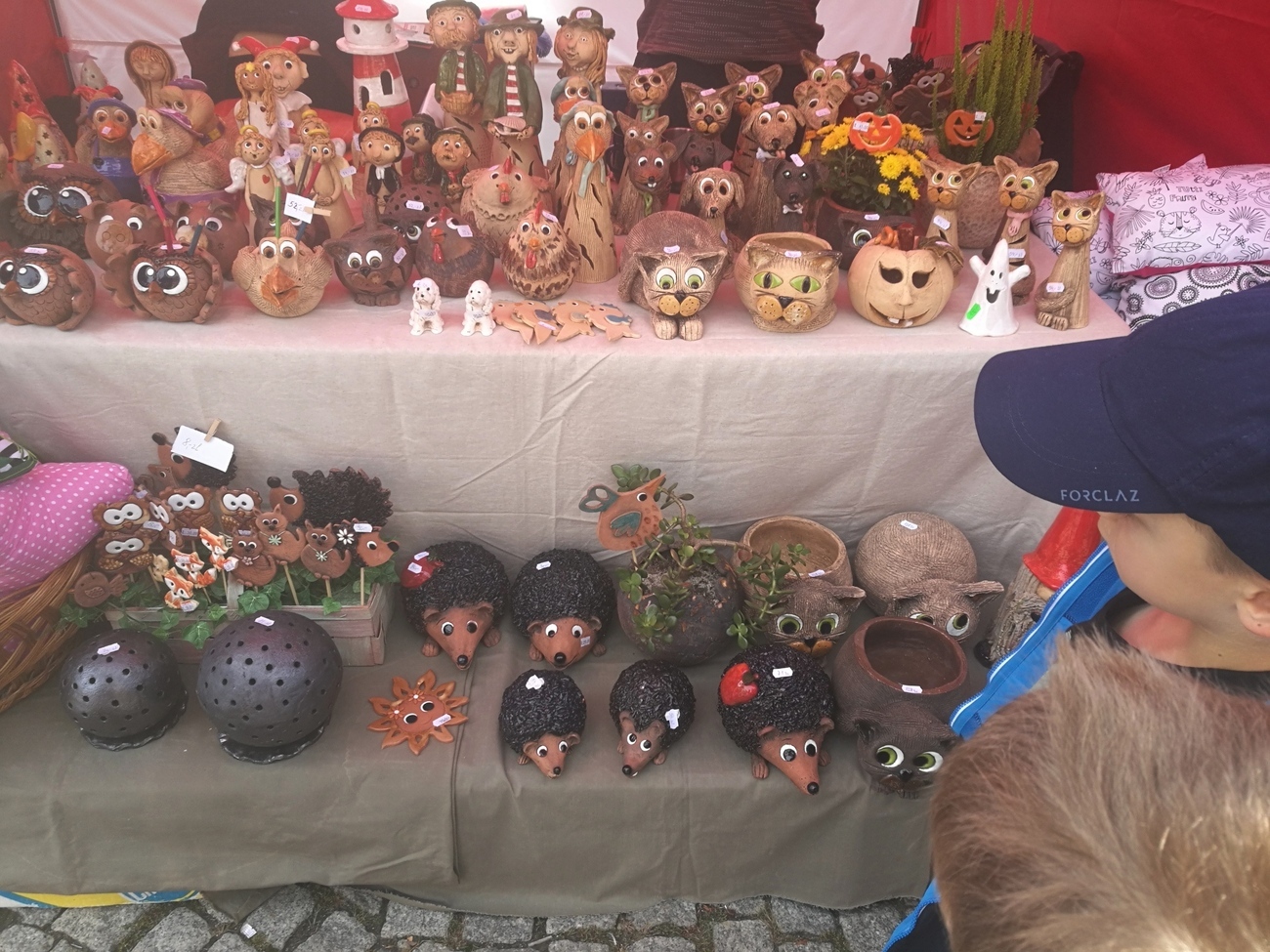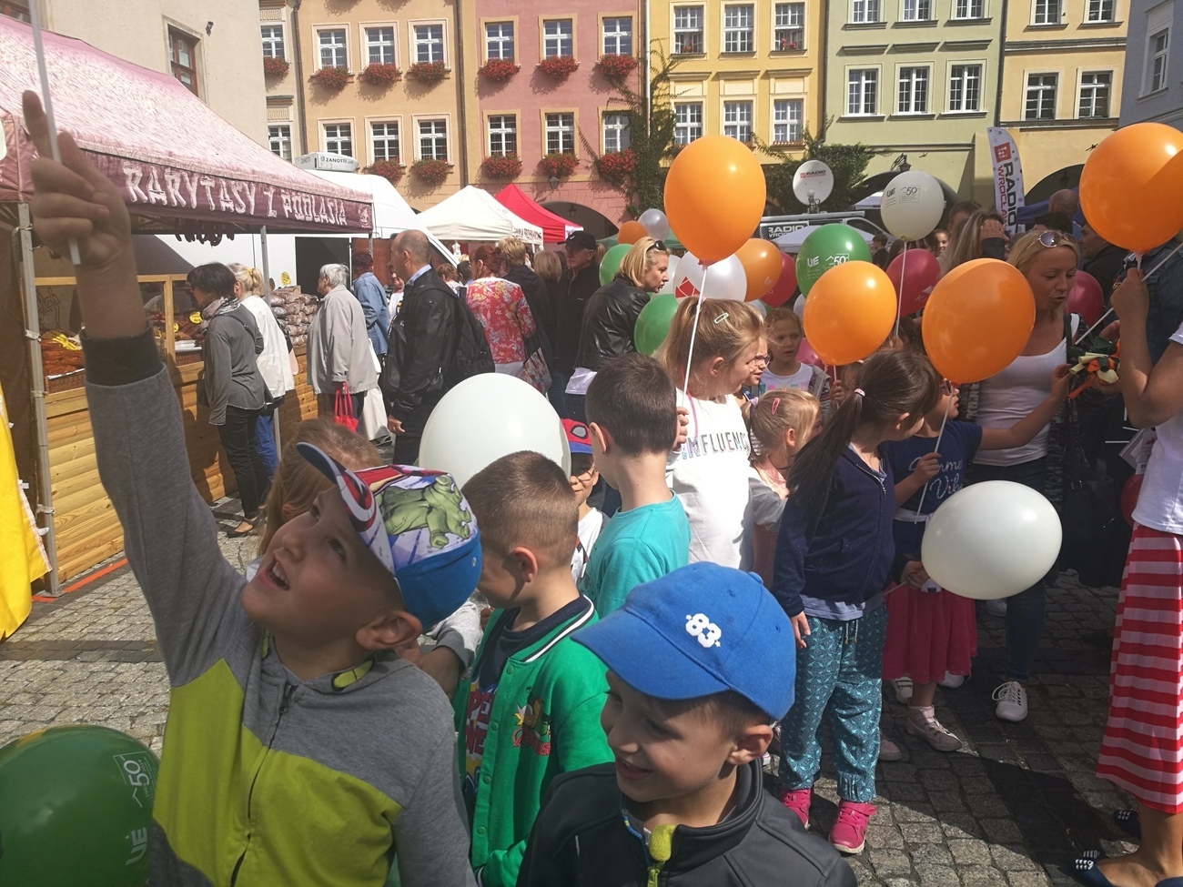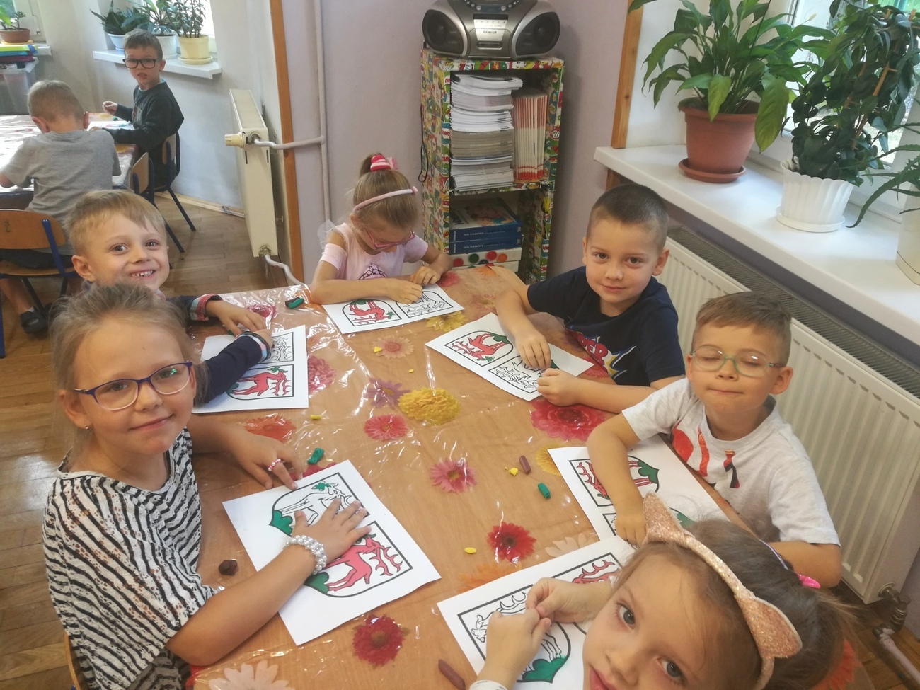 Miesiąc wrzesień dla wszystkich mieszkańców naszego miasta jest czasem szczególnym. W tym właśnie okresie świętujemy Wrzesień Jeleniogórski, czyli jak to dzieci mówią „urodziny miasta”. Z tej okazji odbywa się wiele imprez, wystaw koncertów. Jednym z wydarzeń są tragi „ Wyprodukowane pod Śnieżką”, w których braliśmy jako widzowie udział. Jednak zanim udaliśmy się na Plac Ratuszowy, by podziwiać wszystkie rękodzieła, porozmawialiśmy w przedszkolu o naszym pięknym mieście. Przypomnieliśmy sobie legendę o powstaniu Jeleniej Góry, omówiliśmy symbole naszego miasta (herb i flagę) oraz wysłuchaliśmy hejnału, przy którym zgodnie stwierdziliśmy, że jest znacznie ładniejszy od tego krakowskiego. Wyklejaliśmy również za pomocą plasteliny małe repliki herbu. Po takim wprowadzeniu mogliśmy udać się na targi. Wszystkie wystawiane produkty bardzo nam się podobały, dziewczynkom szczególnie przypadły do gustu ozdoby wykonane ze szkła, zwłaszcza, że mogliśmy obserwować proces ich powstawania. Piękne wyszywane poduszki, ozdobne pudełka, smakowite regionalne produkty i grający skoczną muzykę zespól umilający wszystkim zwiedzającym czas - sprawiły, że z chęcią byśmy pozostali tam na dłużej. Pewnie niektórzy z nas wrócą tu popołudniu z rodzicami a na razie nadszedł dla nas czas powrotu do przedszkola.
