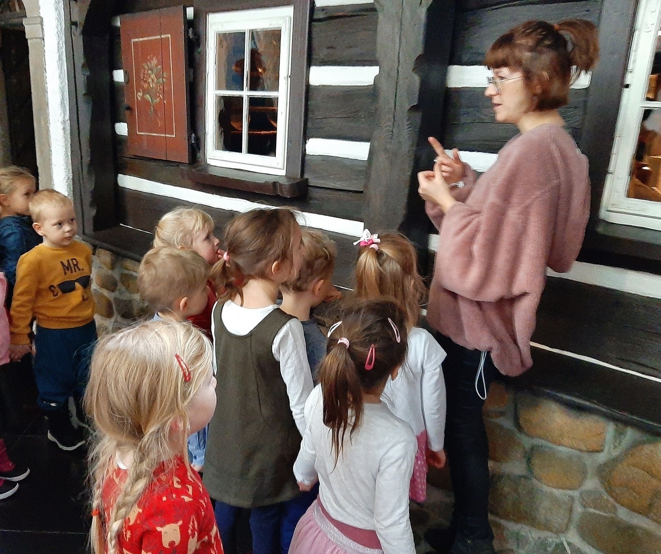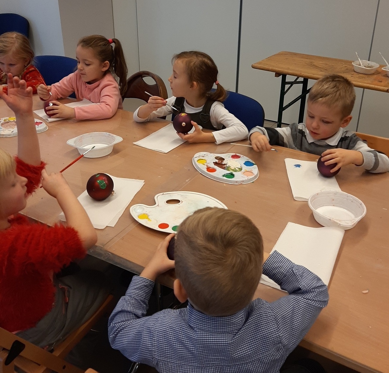 W piątek 13.12.2019 r wybraliśmy się całą grupą na świąteczne warsztaty do Muzeum Karkonoskiego w Jeleniej Górze. Wszyscy zaraz po śniadaniu dziarsko ruszyliśmy na zajęcia. Kiedy już dotarliśmy przywitała nas bardzo miła Pani, która wprowadziła nas w nastrój warsztatów. Pokazała nam chatę karkonoską, w której niegdyś mieszkali ludzie w naszych górach Karkonoszach. Smerfy bardzo zainteresowały się życiem ludzi nie posiadających ani prądu, ani sprzętów dnia dzisiejszego takich jak smartfon czy komputer. Po wspaniałej wycieczce zostaliśmy zaproszeni do pracy. Każdy Smerf otrzymał od Pani kolorową bombeczkę, którą sam mógł przyozdobić w sobie wiadomy sposób, a więc były choinki, serduszka, bałwanki i piękne pejzaże. Pod koniec zajęć każda bombka została przyozdobiona kolorowym brokatem wybranym przez dzieci. Święta coraz bliżej…