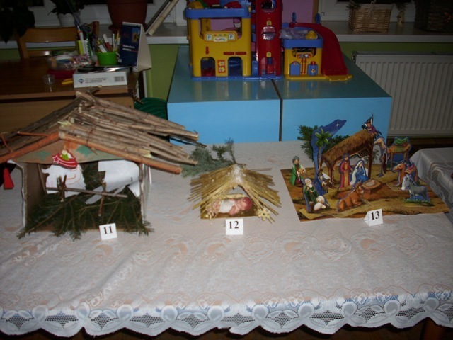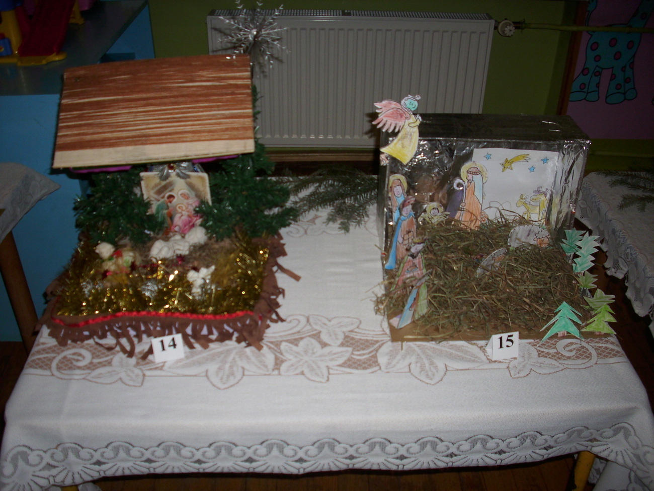 W dniu 27.12.2011 r. rozstrzygnięty został konkurs na najładniejszą bożonarodzeniową szopkę pt. „Ubogo narodzony”, ogłoszony wśród dzieci z grupy „Bzyczki” (5 - latki). Wzięło w nim udział 20 dzieci wraz z całymi rodzinami: rodzicami, babciami, prababciami, dziadkami, pradziadkami, wujkami i ciociami. Do wykonania szopek użyto rozmaitych materiałów m.in.: drewna, papieru, kory, wikliny, słomy, siana, wełny, tektury, waty, modeliny, makaronu, brokatu, kartek świątecznych. Powstały niezwykłe i pomysłowe prace, które zintegrowały rodziny. Prace konkursowe wystawione zostały w przedszkolu i poddane ocenie poprzez głosowanie. Jury stanowili rodzice, oraz pracownicy przedszkola, którzy w czasie plebiscytu wybrali 5 najładniejszych szopek. Oddano 71 głosów. Spośród wszystkich wspaniałych prac wyłoniono pięć zwycięskich. Oto wyniki konkursu: