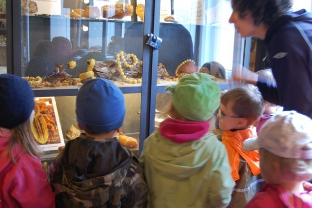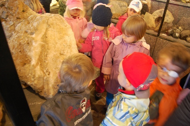 Powędrowaliśmy dalej, do Muzeum Mineralogicznego. Tu przyglądaliśmy się kolekcji minerałów z Karkonoszy i Gór Izerskich, kalcytów i stalaktytów z Wojcieszowa oraz minerałów rudnych z Trepczy i Cavnik. Podziwialiśmy również minerały i skamieniałości z całego świata a nawet jeden eksponat z kosmosu - meteoryt Gibeon. Zachwytom nie było końca.