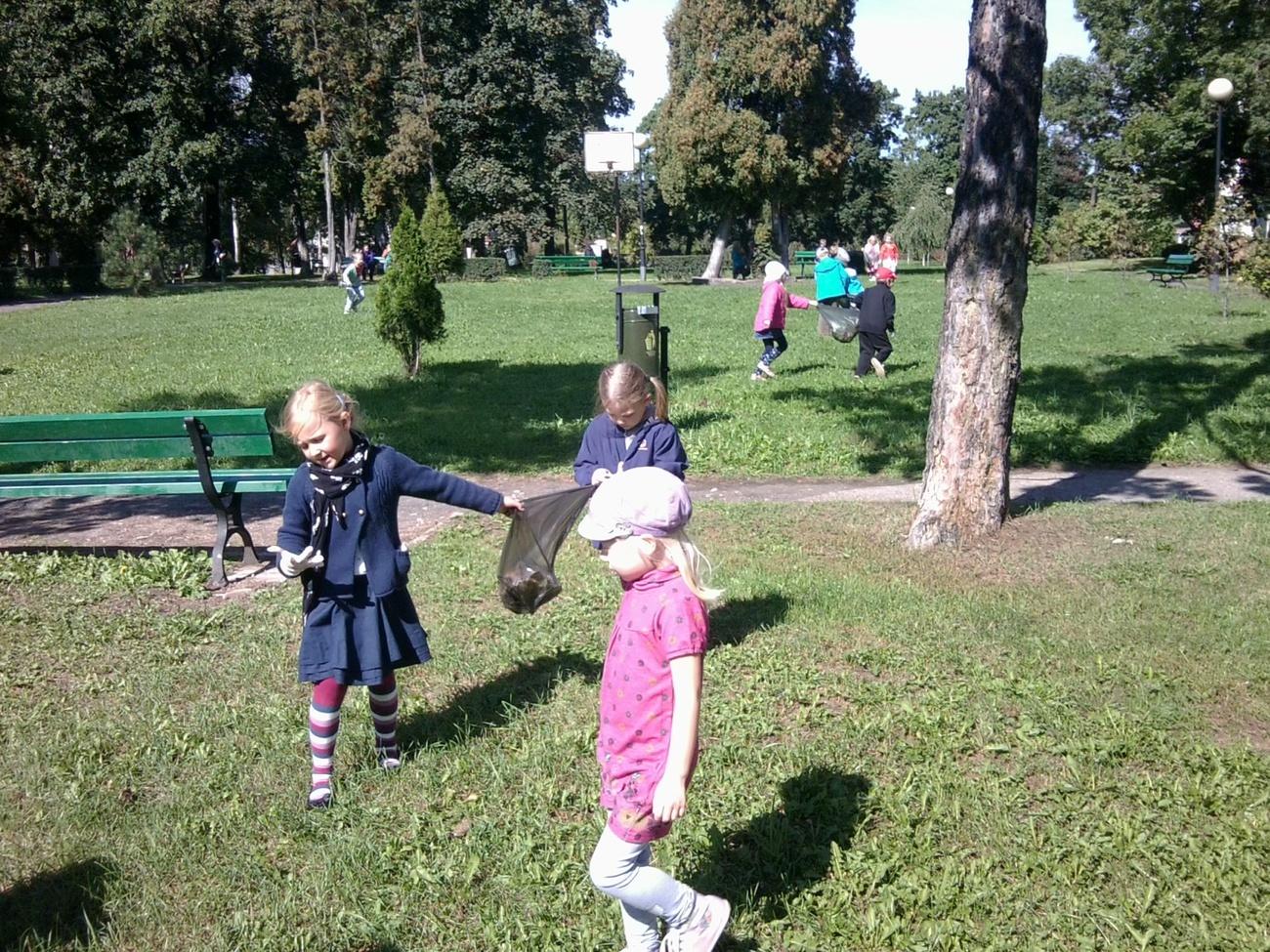 Każdy z nas zaopatrzony został w rękawiczki i worek na śmieci i tak przygotowani ruszyliśmy na sprzątanie pobliskiego parku.