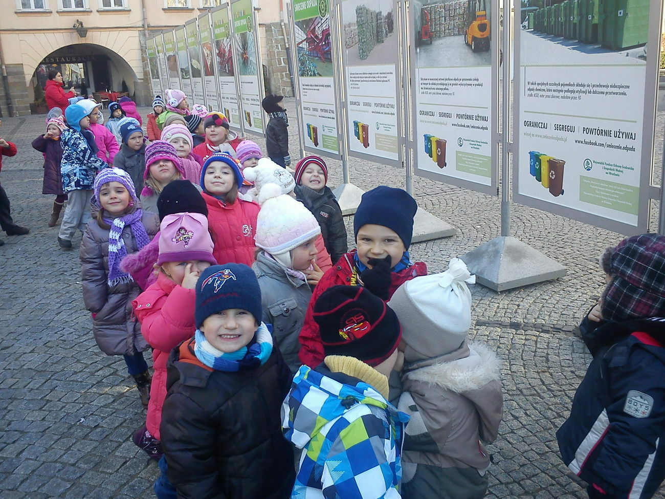 Przedszkolaki mogły zobaczyć zdjęcia miejsc bardzo zaśmieconych, dzikich wysypisk i przypadkowo porozrzucanych worków ze śmieciami. Szybko wyciągnęły wnioski z przedstawionych fotografii, wymieniły znane im sposoby segregowania odpadów i przypomniały o konsekwencjach zaniedbywania środowiska naturalnego.