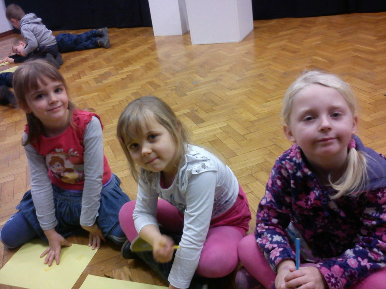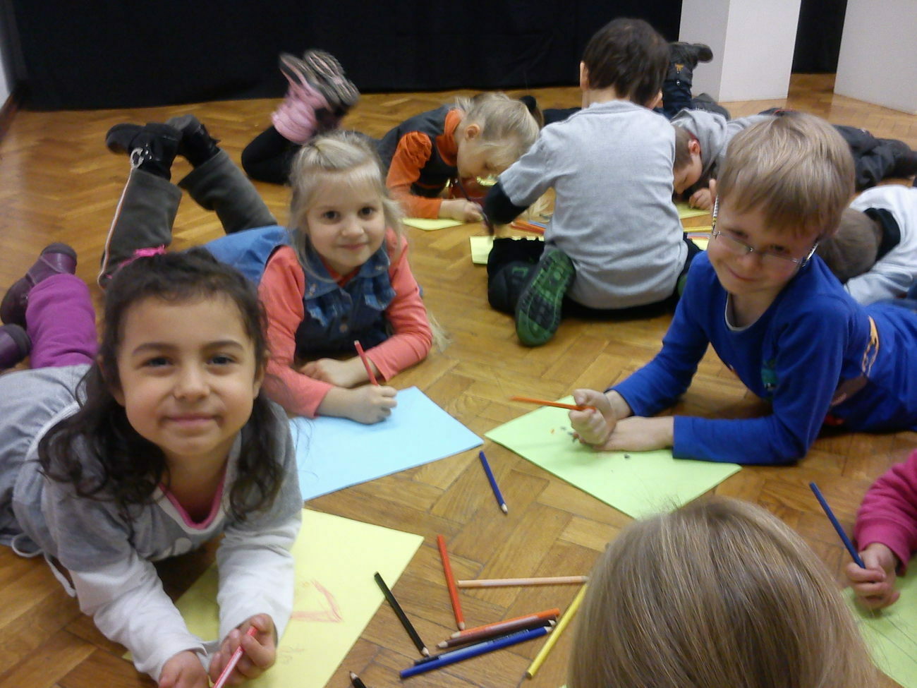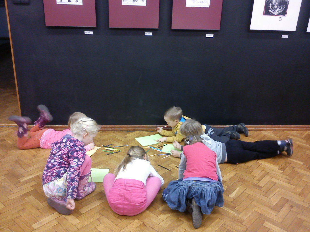 Na miejscu mogliśmy podziwiać dzieła m.in. Agnieszki Ślipko-Strzałkowskiej i Teresy Kępowicz. Podziwialiśmy obrazy, szkice, rzeźby, witraże oraz dzieła włókiennicze. Starsze dzieci mogły obejrzeć również film poświęcony historii BWA. Na zakończenie spotkania każdy z naszych przedszkolaków mógł zamienić się w małego artystę i narysować swoje własne dzieło sztuki.