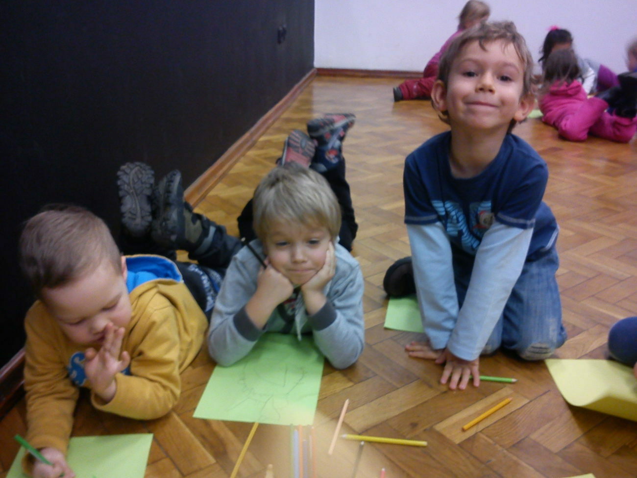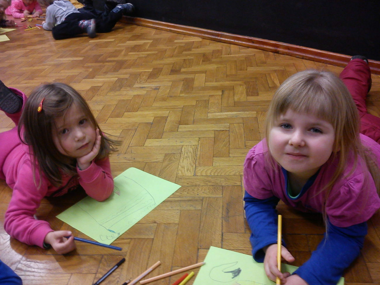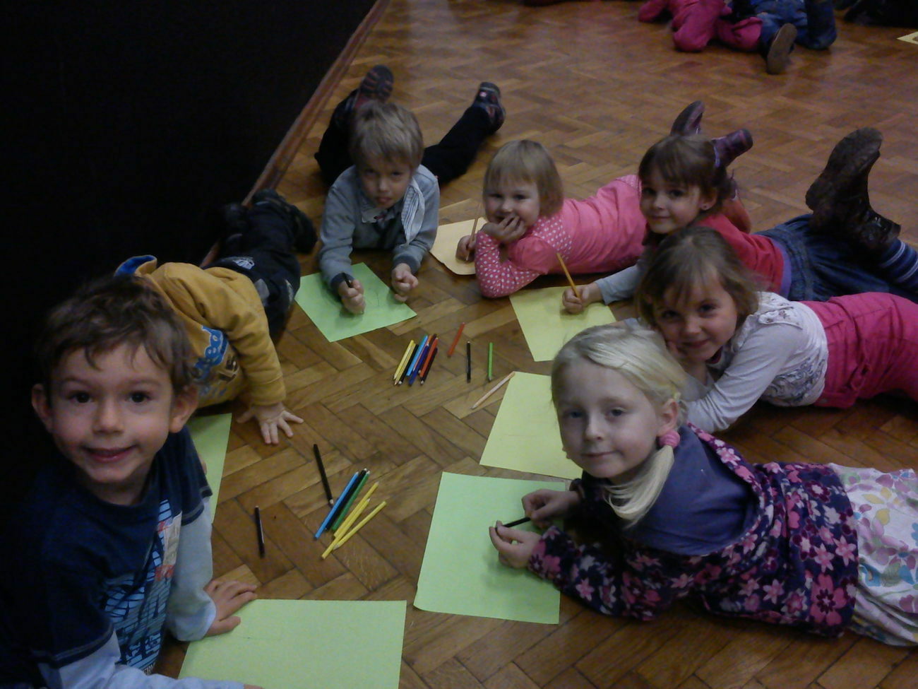 Na miejscu mogliśmy podziwiać dzieła m.in. Agnieszki Ślipko-Strzałkowskiej i Teresy Kępowicz. Podziwialiśmy obrazy, szkice, rzeźby, witraże oraz dzieła włókiennicze. Starsze dzieci mogły obejrzeć również film poświęcony historii BWA. Na zakończenie spotkania każdy z naszych przedszkolaków mógł zamienić się w małego artystę i narysować swoje własne dzieło sztuki.