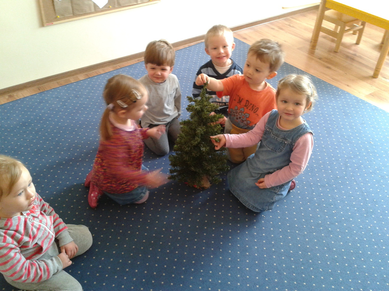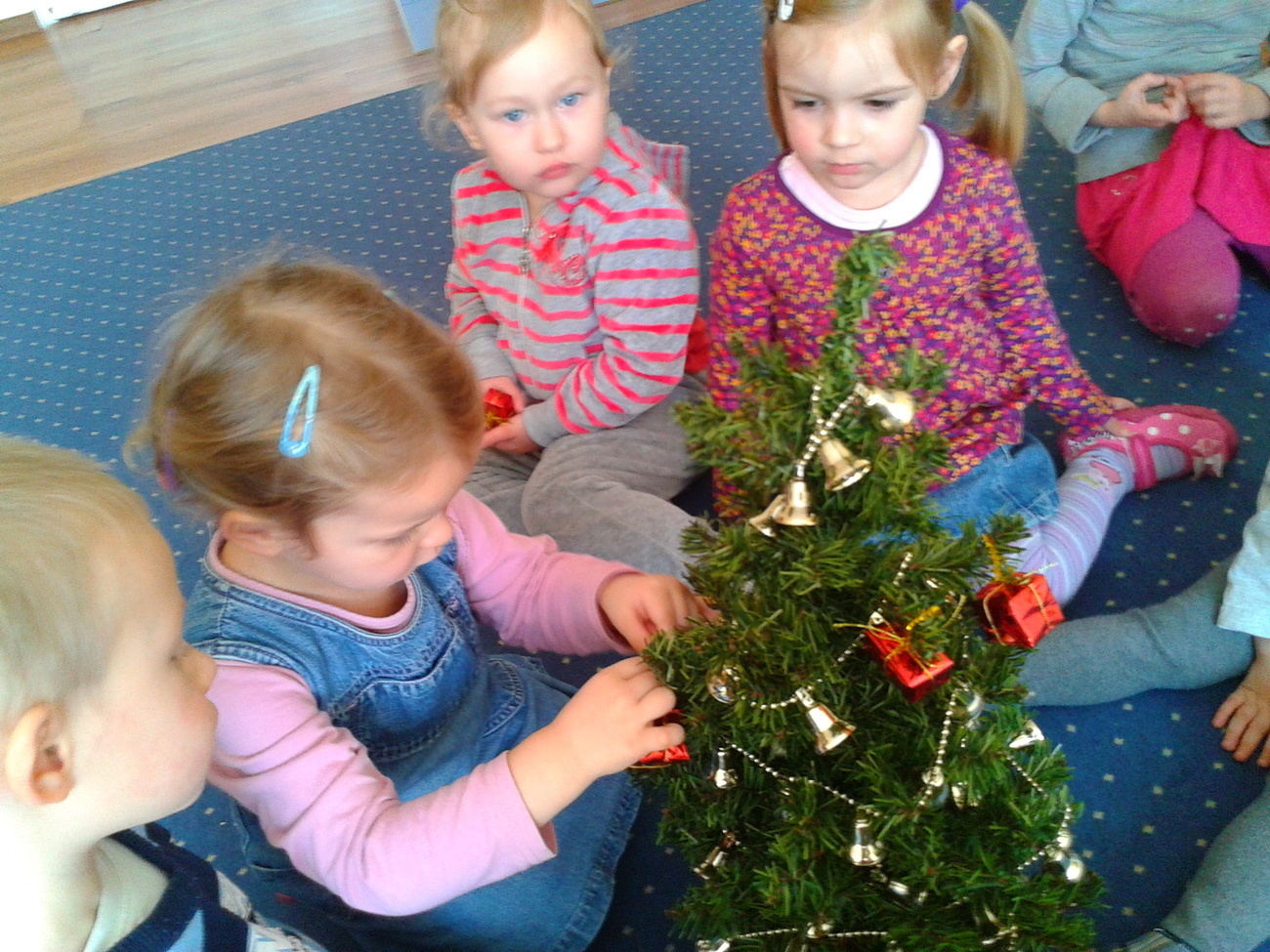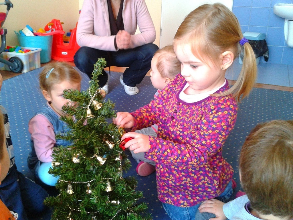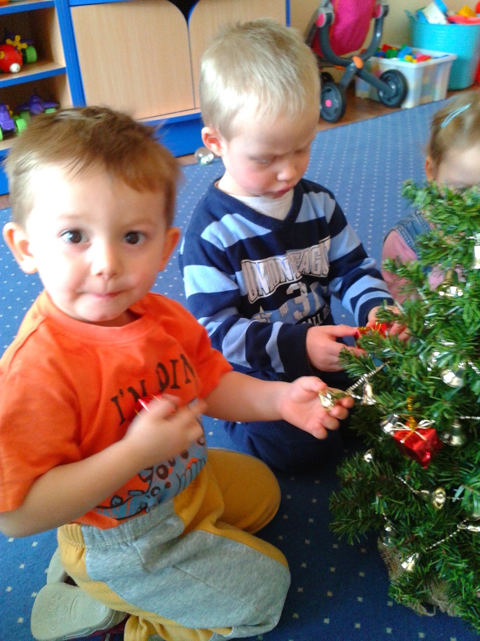Ważne z punktu widzenia przedszkolaków, mianowicie ubieraliśmy naszą wspólną, piękną choinkę.