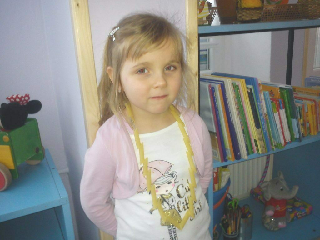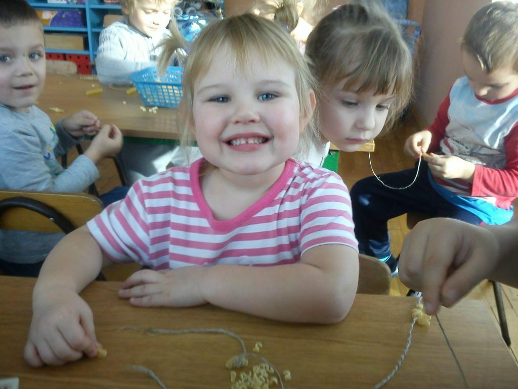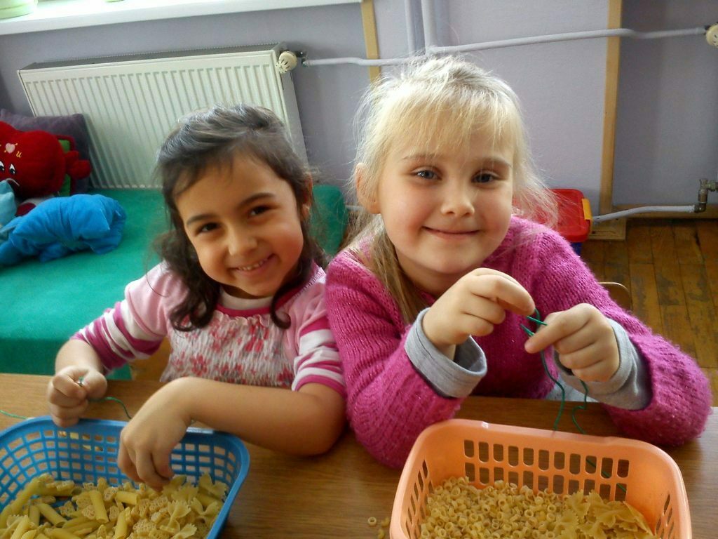 04.12.2012 po raz kolejny mieliśmy możliwość wzięcia udziału w zajęciach prowadzonych przez panią Edukator z Nadleśnictwa w Kowarach. Tym razem Tuptusiowe przedszkolaki mogły wykonać naszyjniki dla swoich mam. Były to jednak naszyjniki wyjątkowe, bo wykonane z różnokształtnego makaronu. Każdy miał inny pomysł - jedni wybierali tylko długie rurki, inni kokardki, kółeczka, a nawet samochody. Wszystkie naszyjniki wyszły przepięknie, tym bardziej, że każdy przedszkolak włożył w ich wykonanie dużo pracy i serca. Mamy nadzieję, że mamom spodobały się prezenty :)