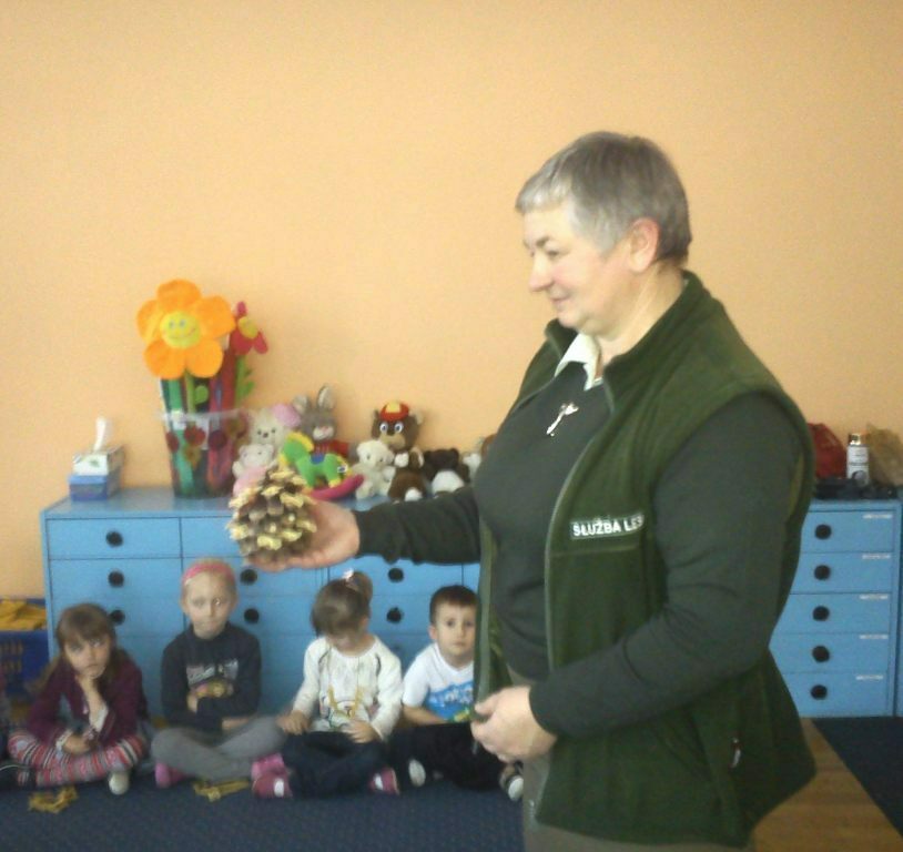 Pani Bogusia również miała dla nas prezent. Dla każdej grupy wykonała śliczną choinkę z wielkiej szyszki i makaronowych ozdób.