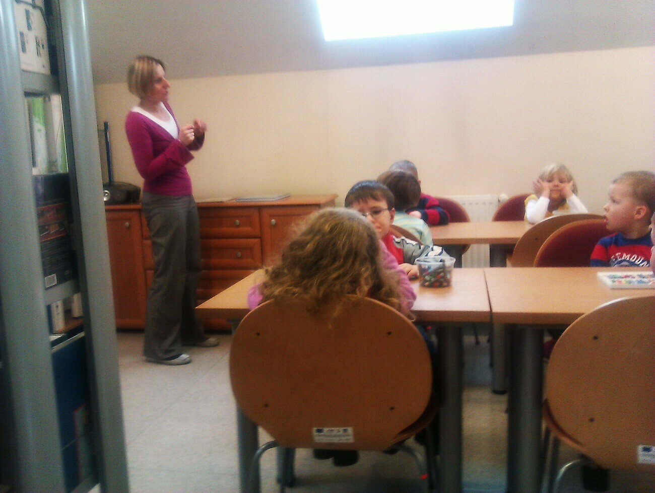 17.12.2012 roku wybraliśmy się do Książnicy Karkonoskiej na kolejną lekcję biblioteczną „Moja książeczka”. Panie z biblioteki przygotowały nam na początek ciekawą pogadankę na temat książek, ich autorów oraz sposobu ich powstawania. Poznaliśmy nowe i trudne słowa takie jak: pisarz, ilustrator, introligator czy wydawnictwo oraz nowych bohaterów bajek: Cypiska, Rumcajsa, Muminki i misia Uszatka.