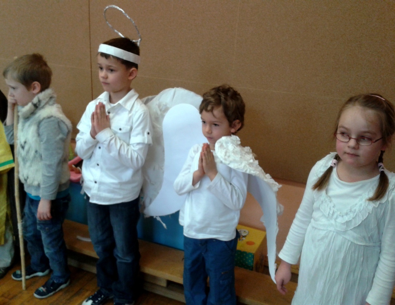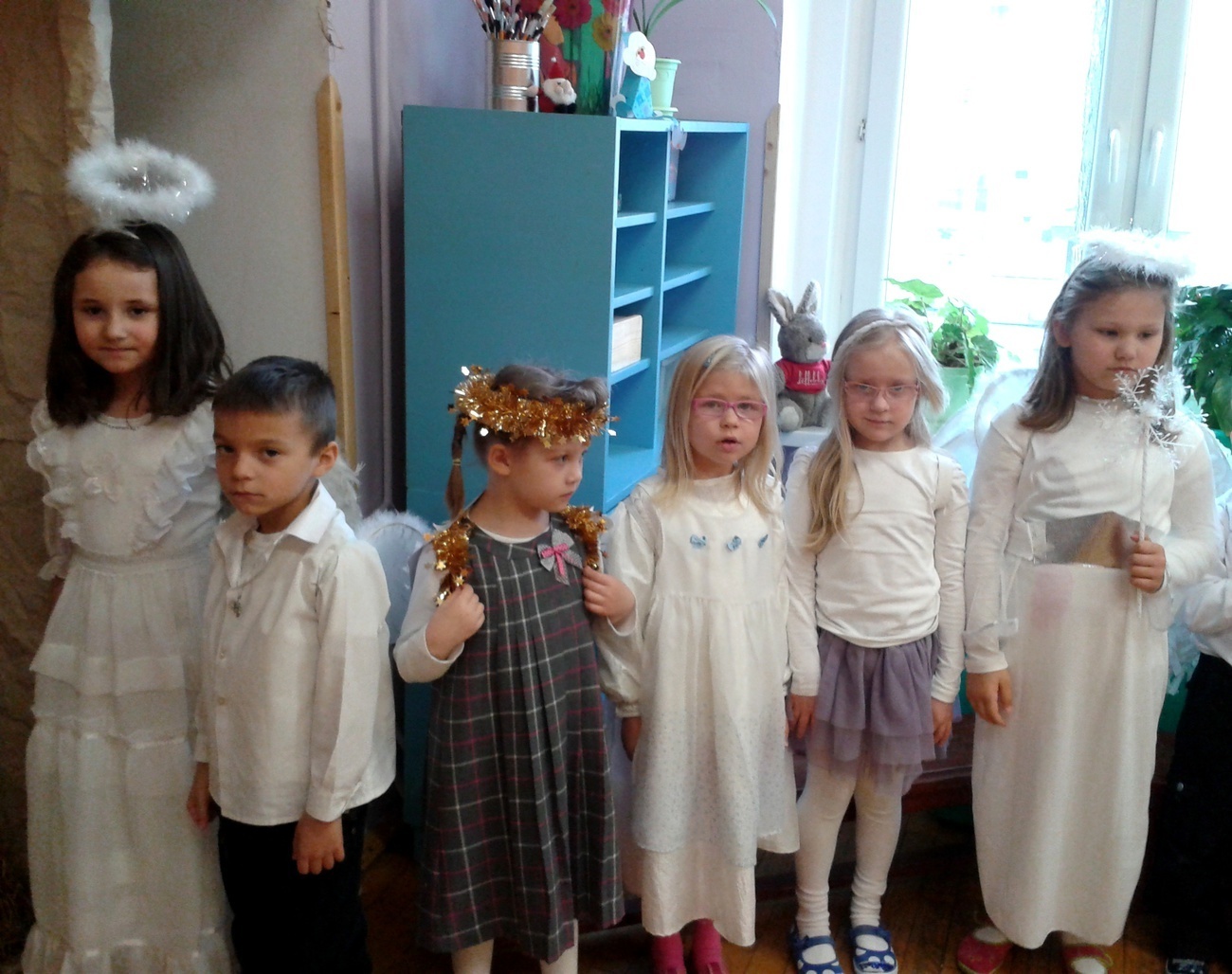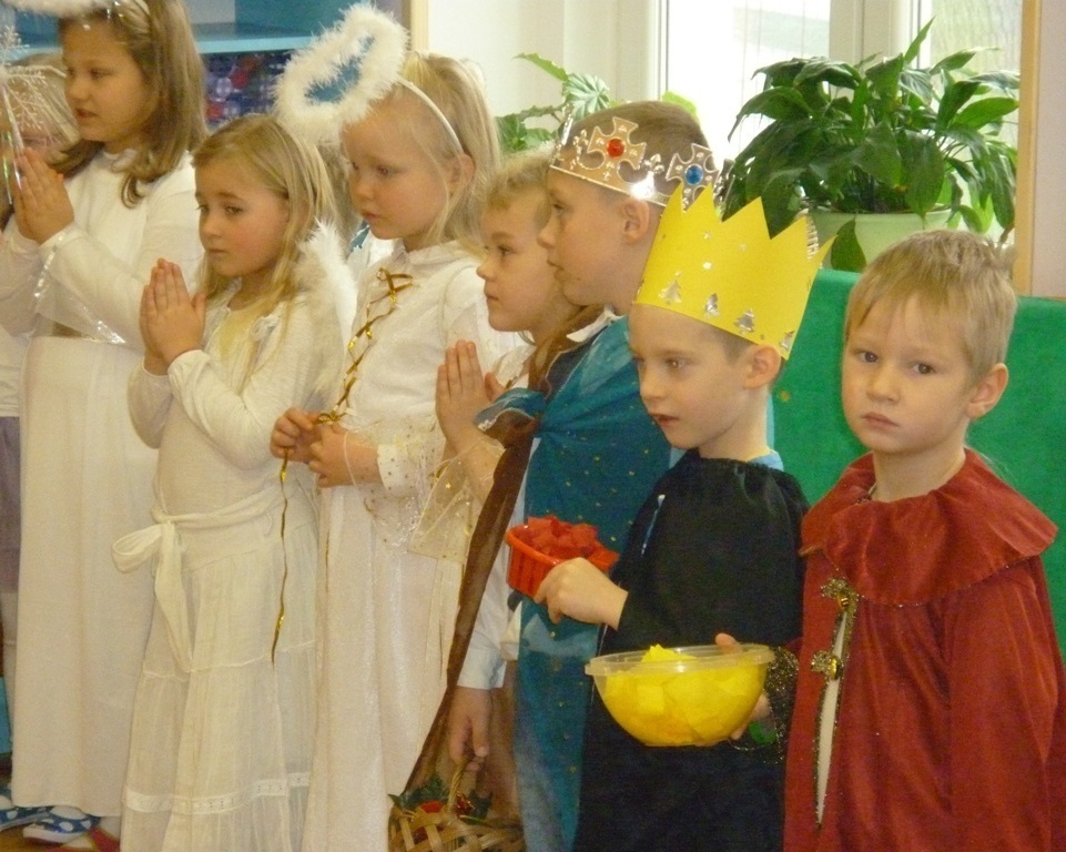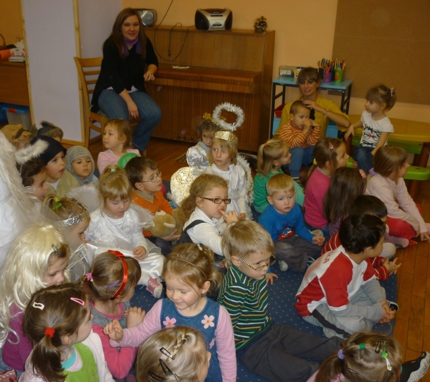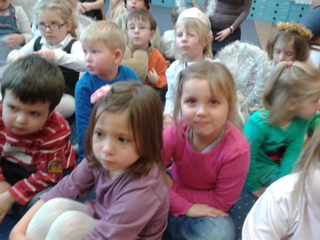 Jako pierwsza zaprezentowała się grupa III Skrzaty, następnie przyszła kolej nagr. V Chochliki /starszaki//. Wspólnie z aktorami mogliśmy śpiewać kolędy. Wszyscy mieli przygotowane wcześniej przez rodziców stroje, co wprowadziło nas w świąteczny klimat. Aktorzy za trud występów zostali nagrodzeni gromkimi brawami. Po zakończonych przedstawieniach powróciliśmy do swoich sal, by się przebrać i przygotować do koncertu w wykonaniu Filharmonii Dolnośląskiej.