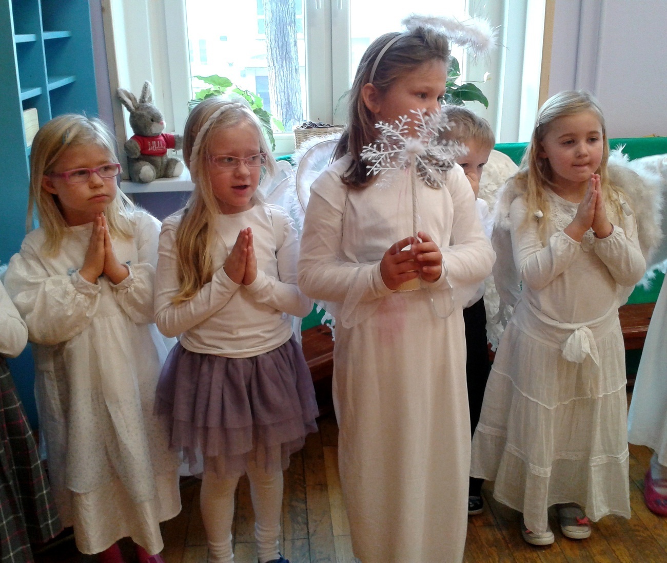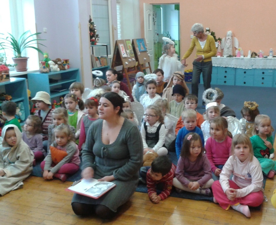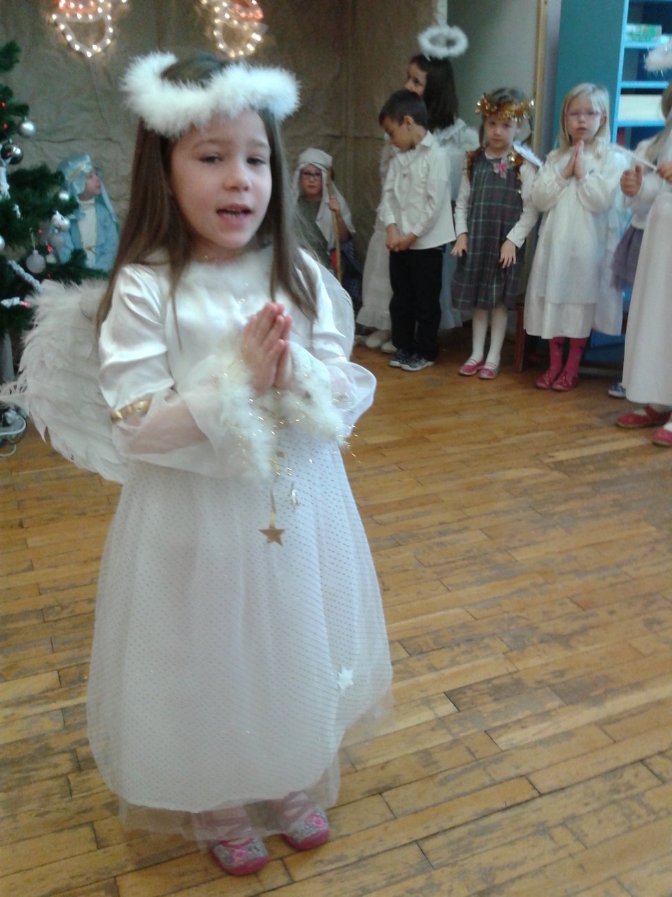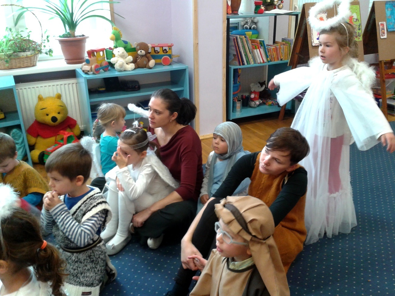 Jako pierwsza zaprezentowała się grupa III Skrzaty, następnie przyszła kolej nagr. V Chochliki /starszaki//. Wspólnie z aktorami mogliśmy śpiewać kolędy. Wszyscy mieli przygotowane wcześniej przez rodziców stroje, co wprowadziło nas w świąteczny klimat. Aktorzy za trud występów zostali nagrodzeni gromkimi brawami. Po zakończonych przedstawieniach powróciliśmy do swoich sal, by się przebrać i przygotować do koncertu w wykonaniu Filharmonii Dolnośląskiej.