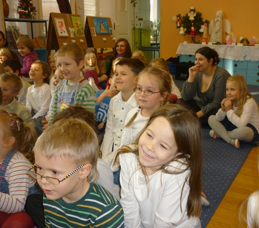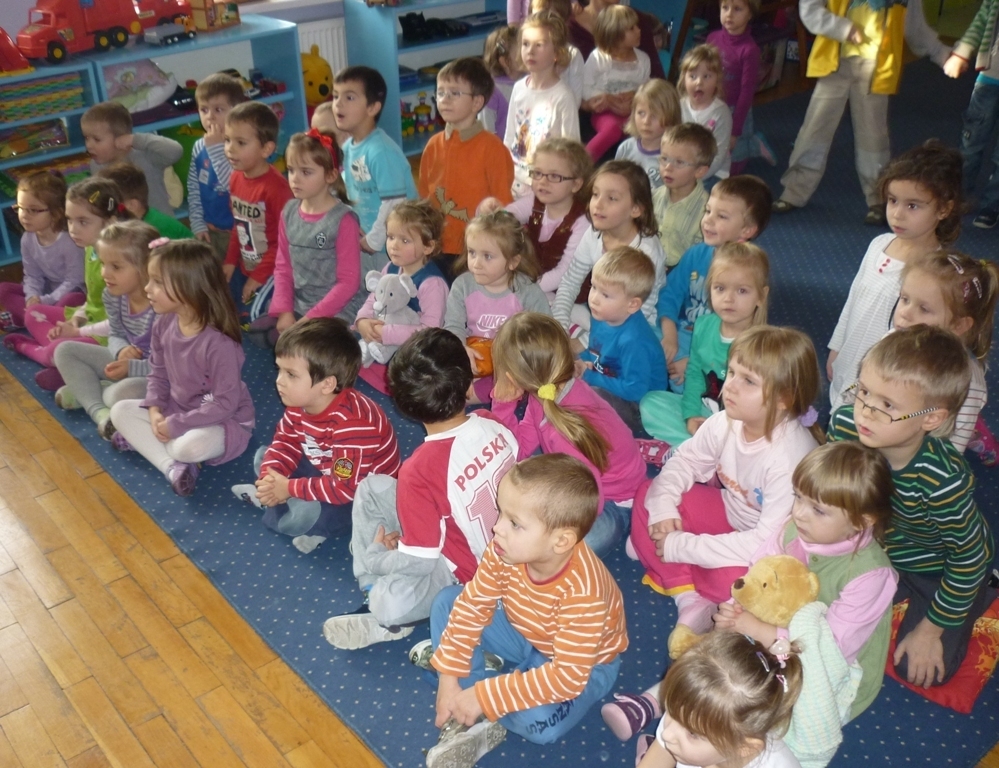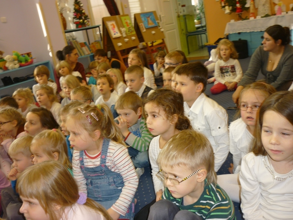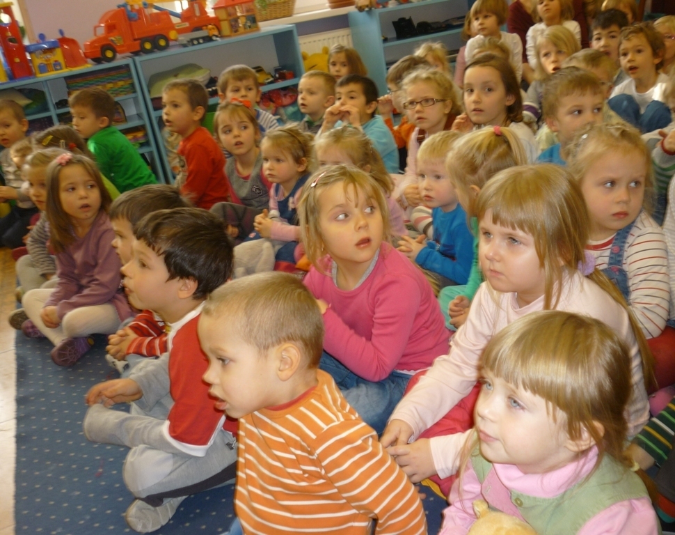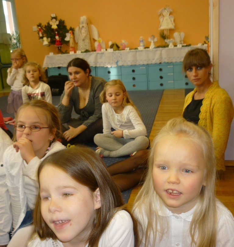 Jako pierwsza zaprezentowała się grupa III Skrzaty, następnie przyszła kolej na gr. V Chochliki /starszaki./ Wspólnie z aktorami mogliśmy śpiewać kolędy. Wszyscy mieli przygotowane wcześniej przez rodziców stroje, co wprowadziło nas w świąteczny klimat. Aktorzy za trud występów zostali nagrodzeni gromkimi brawami. Po zakończonych przedstawieniach powróciliśmy do swoich sal, by się przebrać i przygotować do koncertu w wykonaniu Filharmonii Dolnośląskiej.