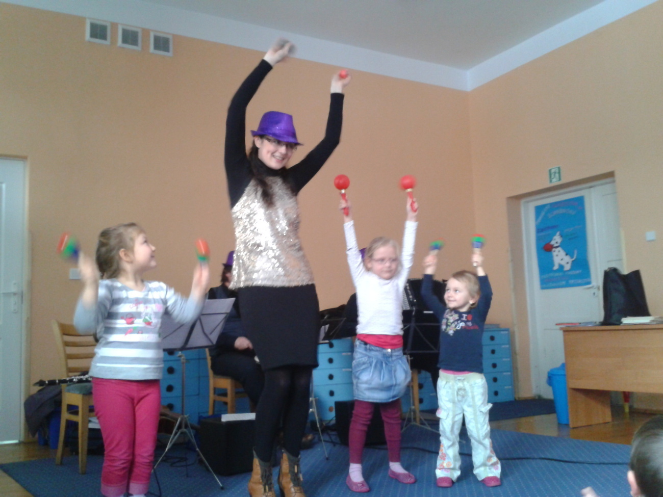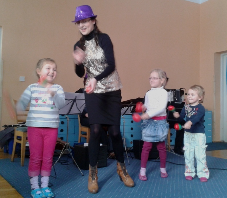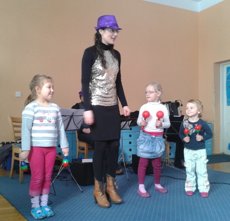 15.01.2013 roku w naszym przedszkolu po raz kolejny gościliśmy muzyków Filharmonii Dolnośląskiej w Jeleniej Górze. Audycja muzyczna nosiła tytuł „Jak karnawał to Brazylia”. Tym razem artyści przybliżyli nam karnawał w Brazylii. Spotkanie poprowadziła Pani Dominika, która wraz z resztą muzyków wprowadziła nas (z pomocą klarnetu, akordeonu oraz gitary) w świat brazylijskich dźwięków i karnawałowych emocji. Mieliśmy okazję usłyszeć piękne mambo „Viva Brasilia” czy bossa novą. Pani Dominika zaśpiewała również piosenkę, wykorzystując znane nam już instrumenty perkusyjne - marakasy.