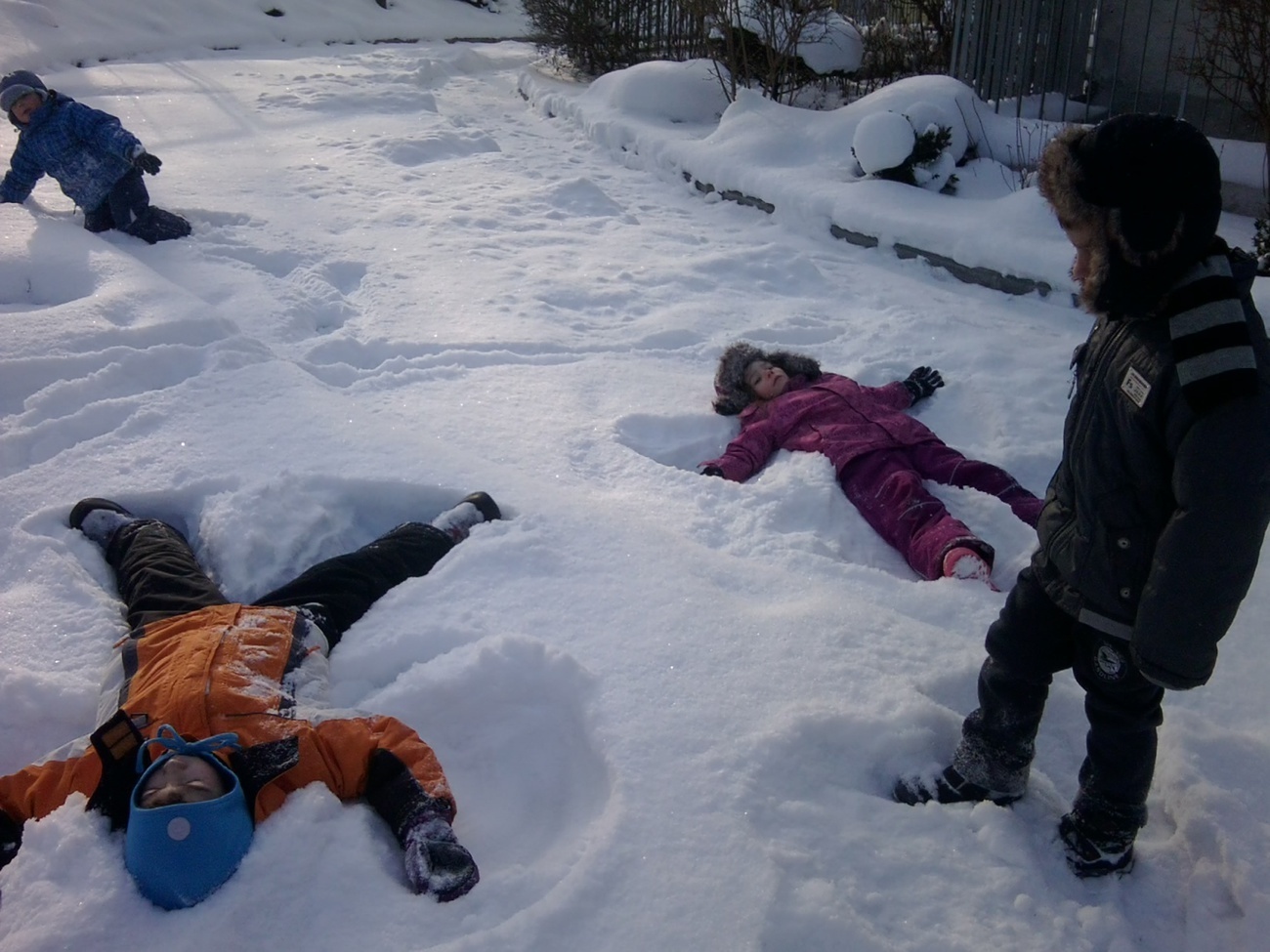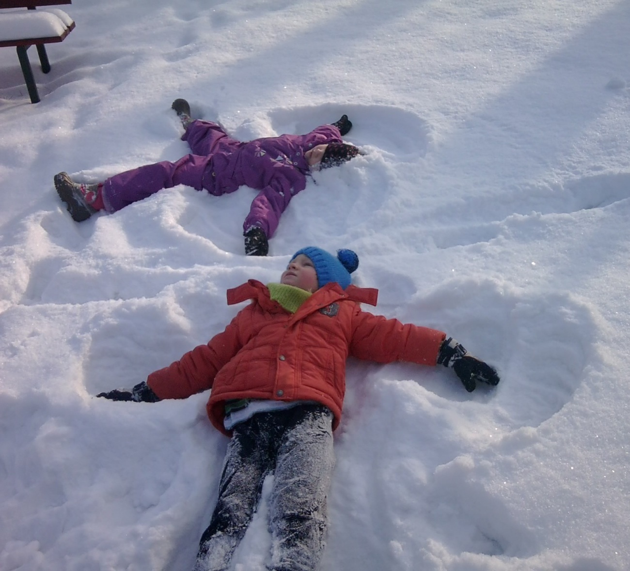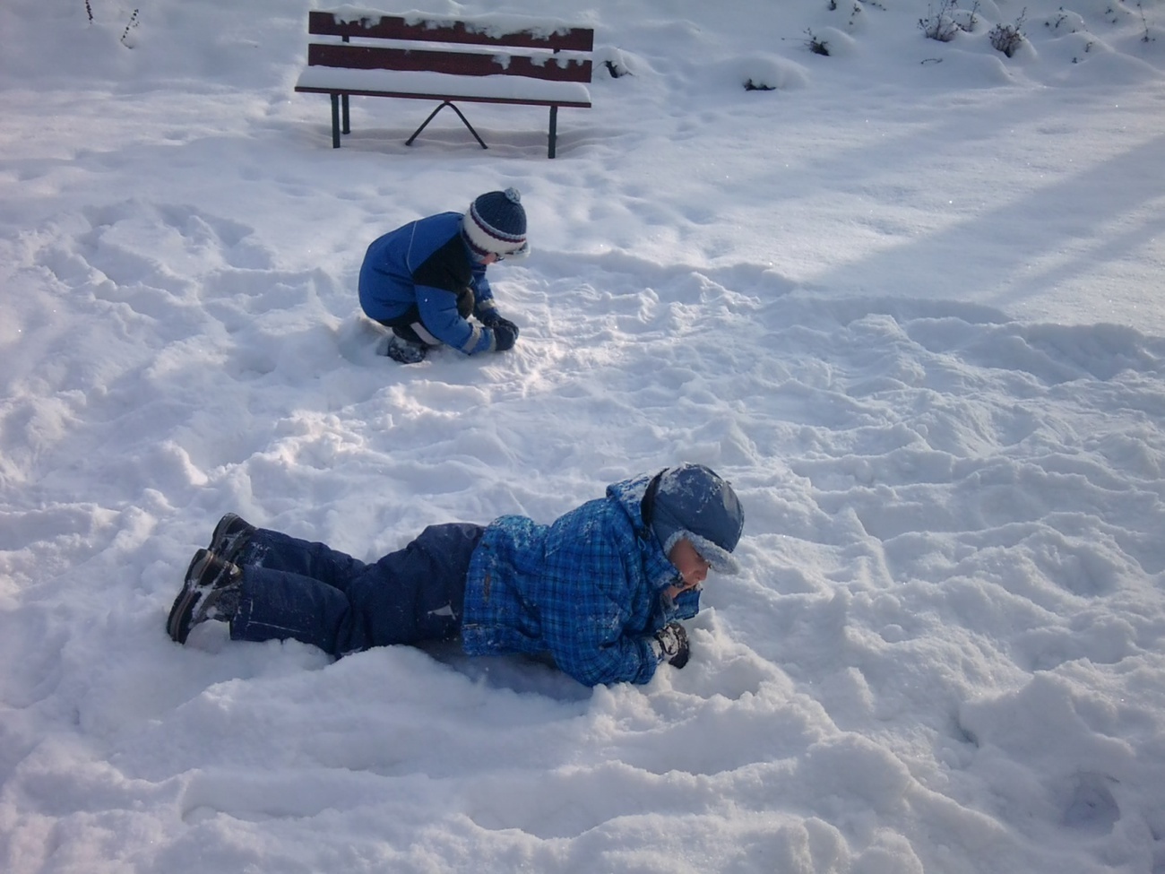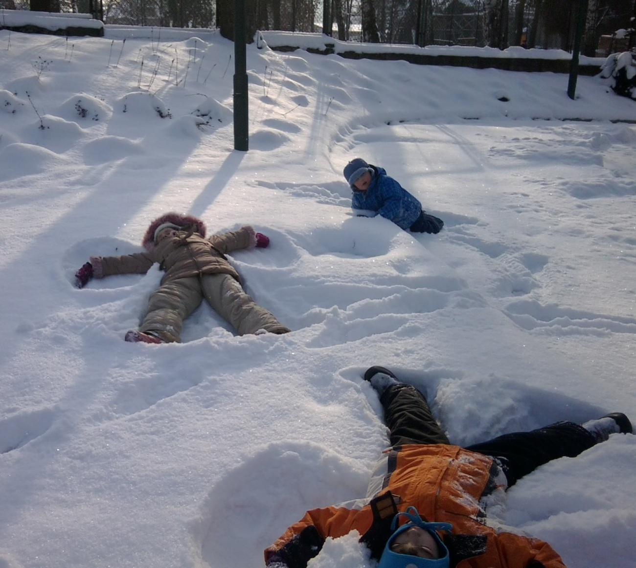 Były rzuty śnieżkami, zjeżdżanie na pupie oczywiście robiliśmy aniołki na śniegu a nawet lepiliśmy płaskorzeźby. Co prawda zabrakło nam czasu na ulepieni bałwana ale postanowiliśmy, że to zrobimy następnym razem. Zmarznięci, ale bardzo szczęśliwi wróciliśmy do przedszkola.