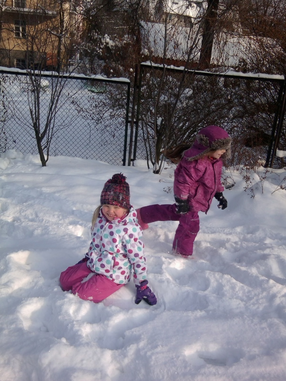 W piątek 25.01.po zakończonej zabawie z pająkami mieliśmy wielką ochotę na zimowe szaleństwo. Ciepło ubrani wybraliśmy się do przedszkolnego ogródka na zabawy w śniegu. Pogoda była idealna, mnóstwo białego puchu wokół nas i świecące Słońce nad nami. Pani dała sygnał i rozpoczęła się zabawa.