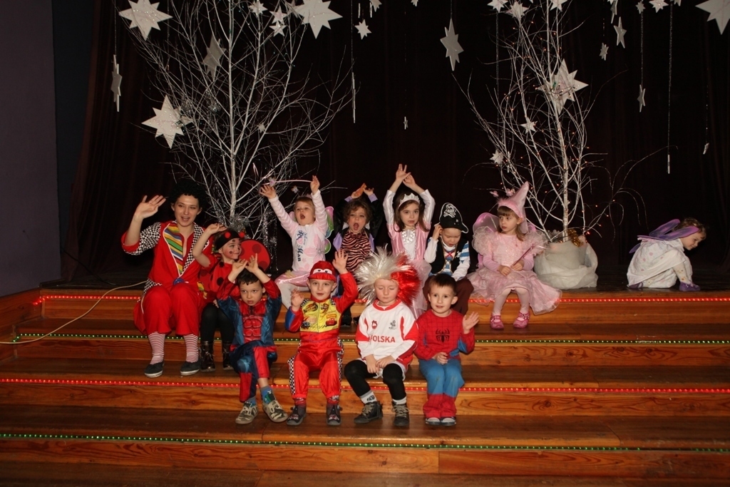 Część rodziców również postanowiła wystroić się karnawałowo: swoją obecnością zaszczycili nas między innymi klown, księżniczki, piratka, siedmiu krasnoludków w jednym, kowboj i czarownica... oj, masa najróżniejszych charakterków:)