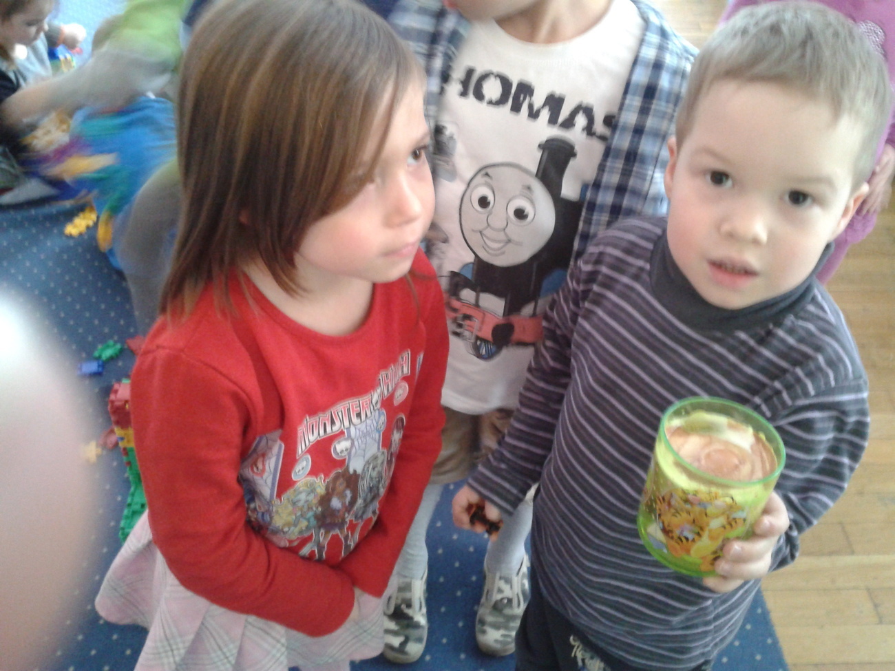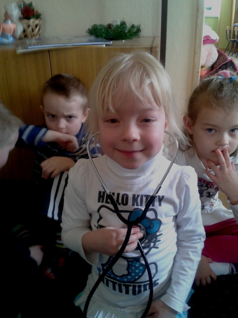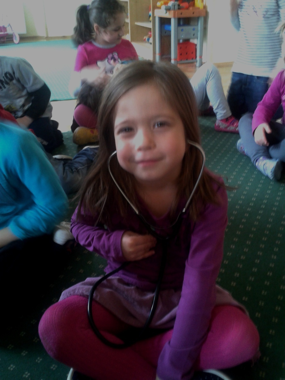 Podczas ferii mieliśmy również okazję posłuchać jak bije nasze serce. Udało nam się to dzięki pomocy stetoskopu. Podczas tego eksperymentu wszyscy musieli być bardzo cicho, żeby każdy mógł wyraźnie usłyszeć rytm własnego serca. Dalsza część ferii upłynęła nam na wspólnej zabawie i integracji z dziećmi z innych grup. Nasze panie obiecały, że to koniec doświadczeń z jajkiem i że następnym razem dowiem się jak bez użycia rąk można wcisnąć jajko do butelki - ale to już chyba jakieś czary.