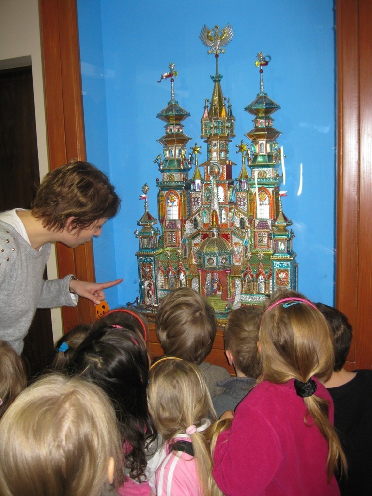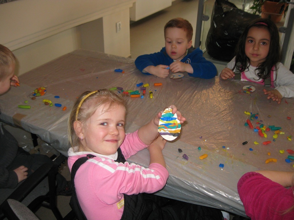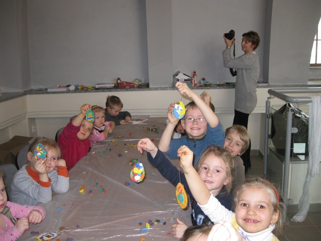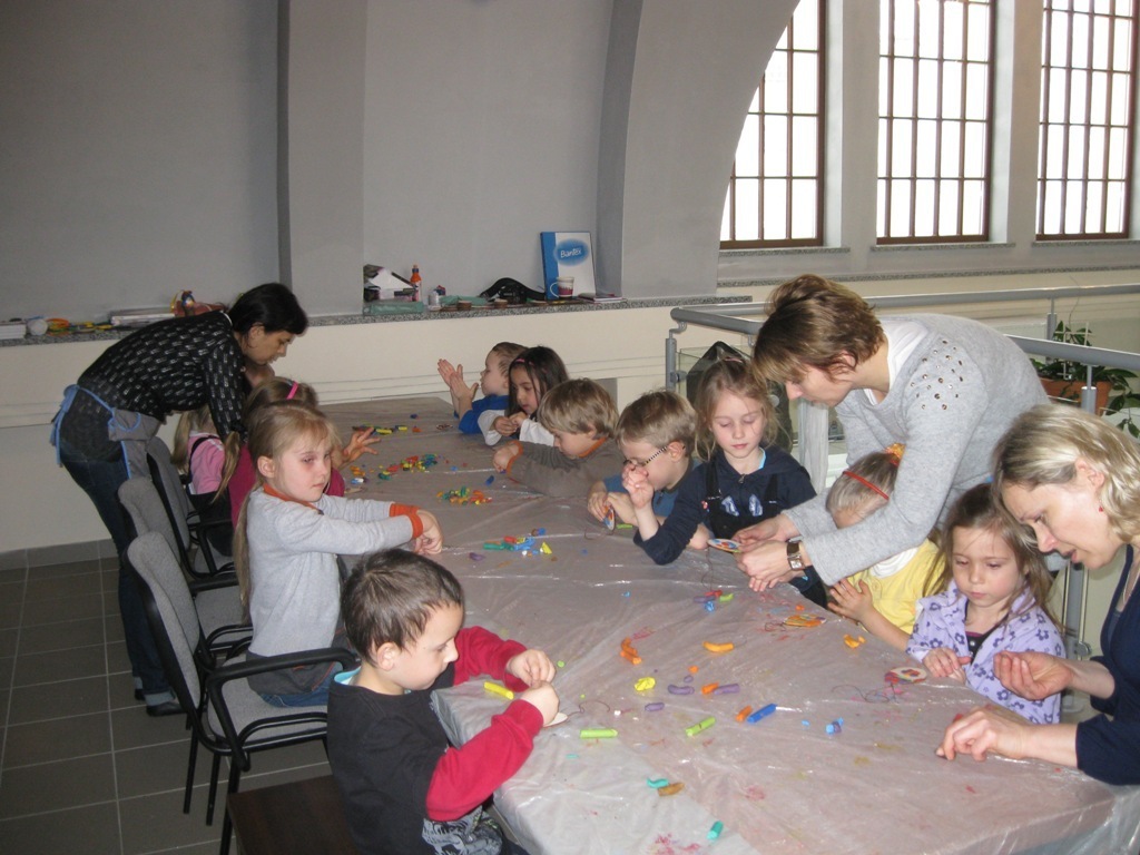 W Muzeum Zabawek dzieci uczestniczyły w warsztacie plastycznym: „Pisanki – wyklejanki”. Po zakończonych pracach odbyło się zwiedzanie wystawy. Można było zobaczyć lalki wykonane z wosku czy cały pokoik dla lalek. Wśród chłopców największy entuzjazm wzbudziła kolekcja ciężarówek i koparek, z kolei dziewczynki najwięcej czasu spędziły przy wystawie domków dla lalek.