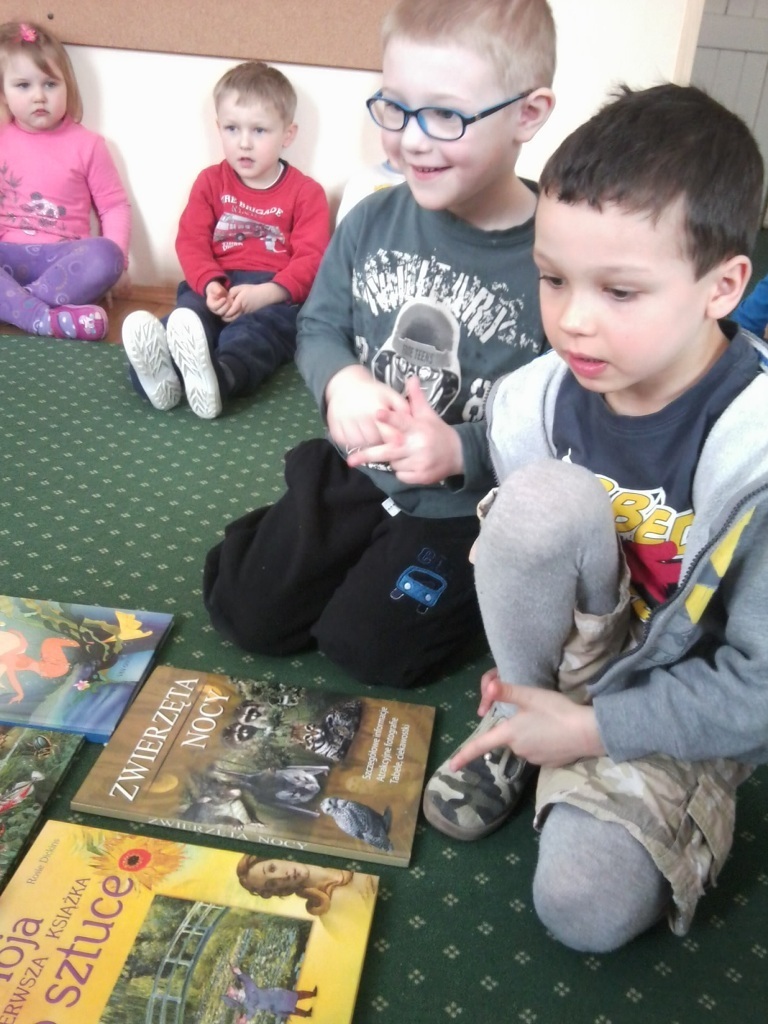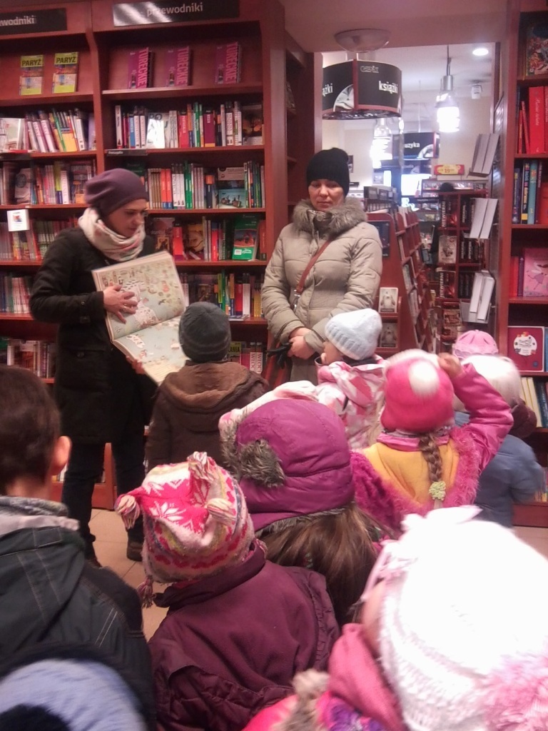 Następnie klasyfikowaliśmy książki pod względem ich treści i przeznaczenia i tak wiemy już jakie informacje możemy znaleźć w atlasie a jakie w encyklopedii. Wiemy także, że gotując pyszny obiad przyda nam się książka kucharska. Rozmawialiśmy również o tym, jak należy dbać o książki i je szanować. Teraz każdy z nas czytając książkę, nie będzie zaginał rogów, by zaznaczyć miejsce w którym skończył, tylko użyje jednej z zakładek, które wykonywaliśmy w przedszkolu. By dowiedzieć się więcej o książkach a przede wszystkim o ulubionych bajkach, wybraliśmy się do księgarni „ Empik” w Jeleniej Górze. Wszystkie starszaki już wiedzą, że w księgarni można kupić nowe książki o bardzo różnej tematyce. Są one poukładane według kilkunastu kategorii. Osobno na półkach leżą książki dla dzieci, osobno dla młodzieży. Swój dział mają komiksy i książki przygodowe. Wiemy już, gdzie możemy znaleźć przewodniki, które przydadzą się podczas podróży, a także gdzie znaleźć książki o tematyce fantastycznej. Dzięki takim zajęciom będzie można o nas powiedzieć, że jesteśmy ekspertami z dziedziny bajek i książek.