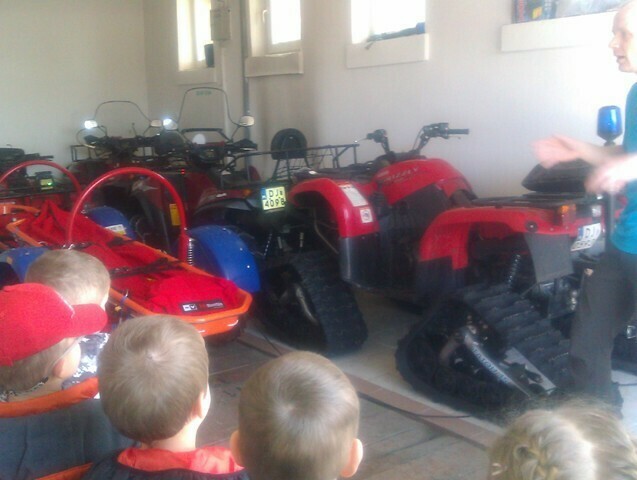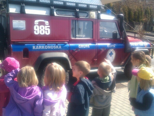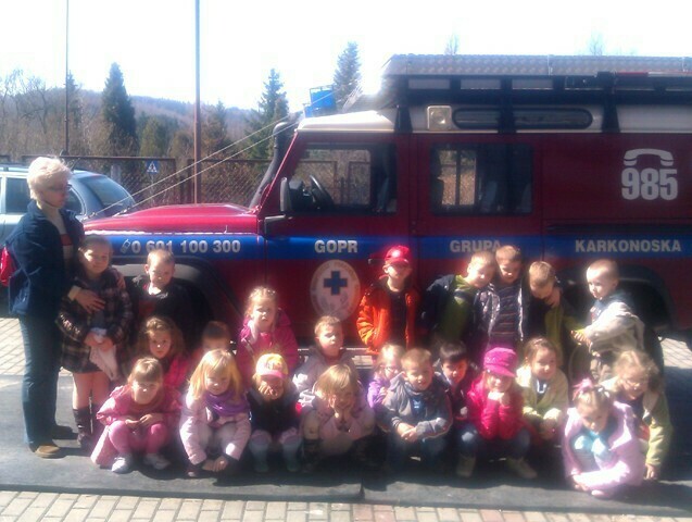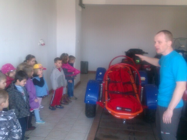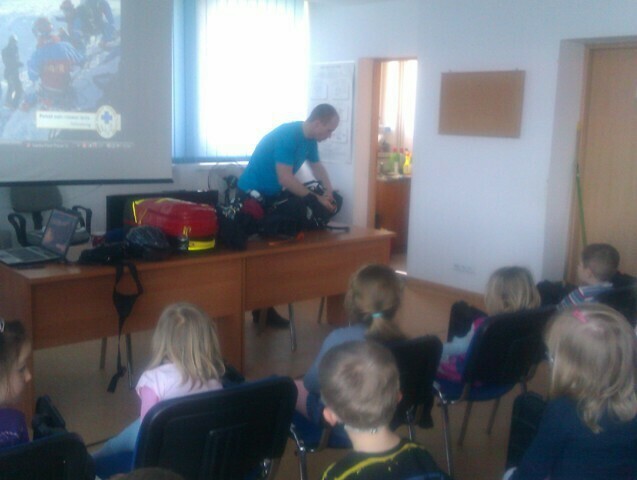 Następnie Pan ratownik opowiedział o swojej pracy; udzielaniu pierwszej pomocy i prostych zasadach bezpieczeństwa obowiązujących w górach. Mieliśmy okazję zobaczyć jak wygląda ubiór oraz nowoczesny sprzęt ratowniczy. Całość prelekcji zakończył pokaz slajdów i film ze szkoleń oraz akcji ratowniczych. Ostatnią atrakcją - niespodzianką było zwiedzanie dyspozytorni czyli centrum dowodzenia GOPR oraz wizyta w parku maszynowym pełnym specjalistycznych pojazdów ratunkowych: samochody z napędem na cztery koła, quady, skutery śnieżne i tobogany stanowiły nie lada atrakcję.