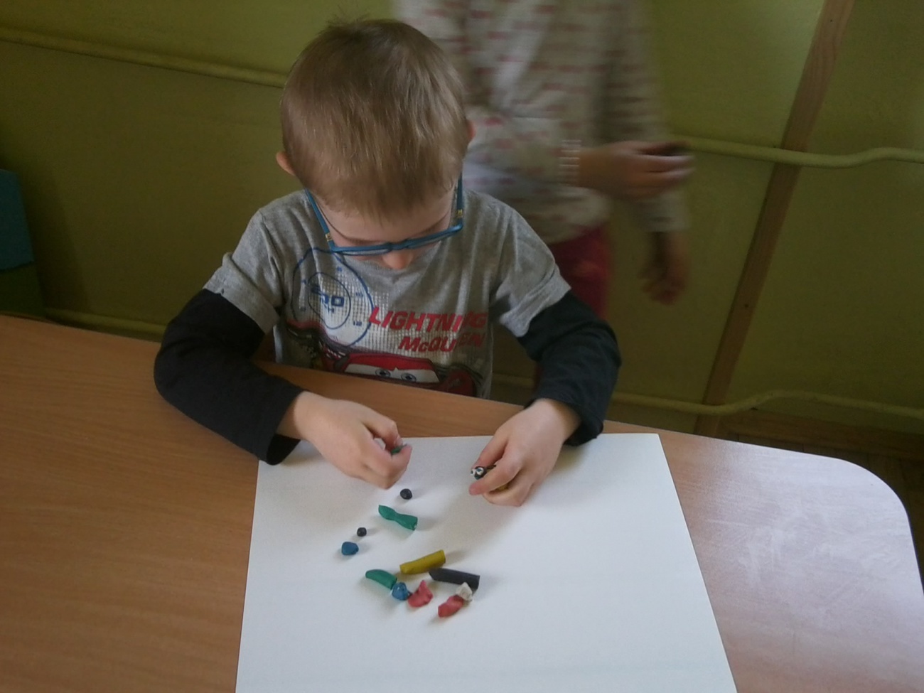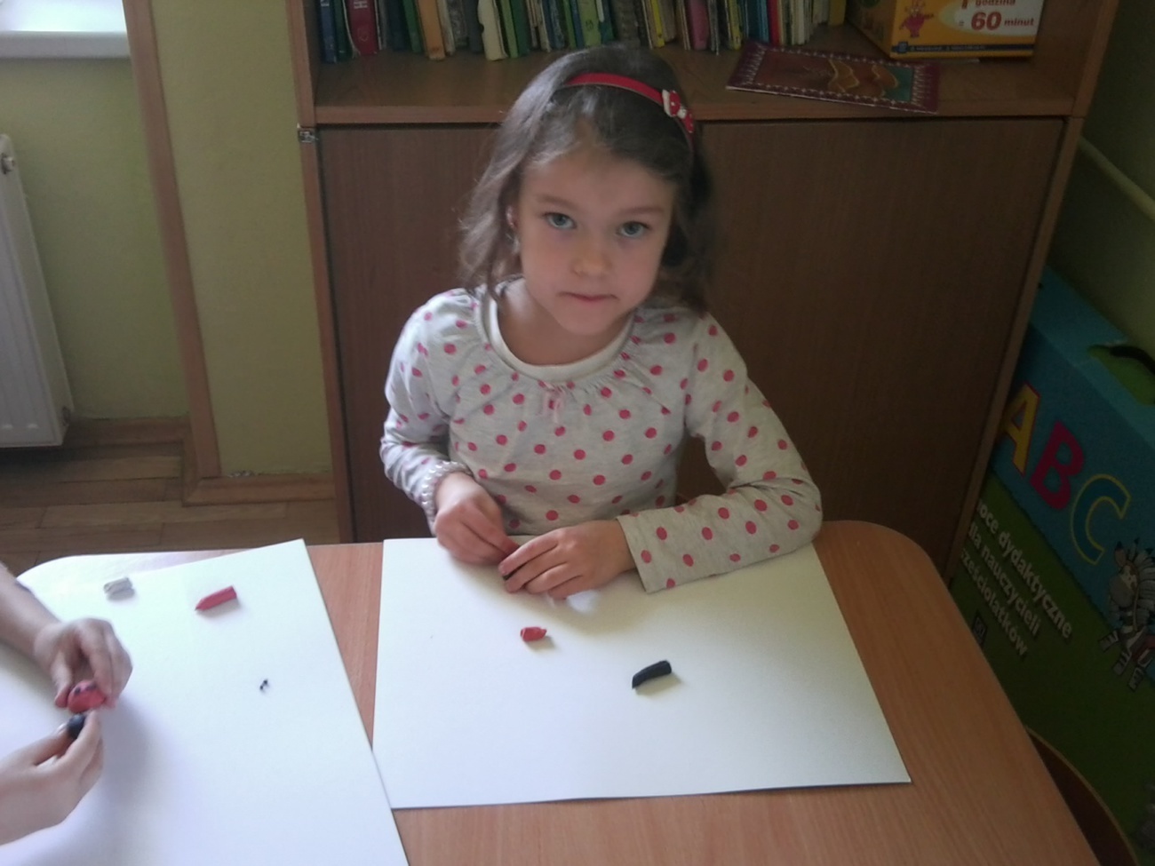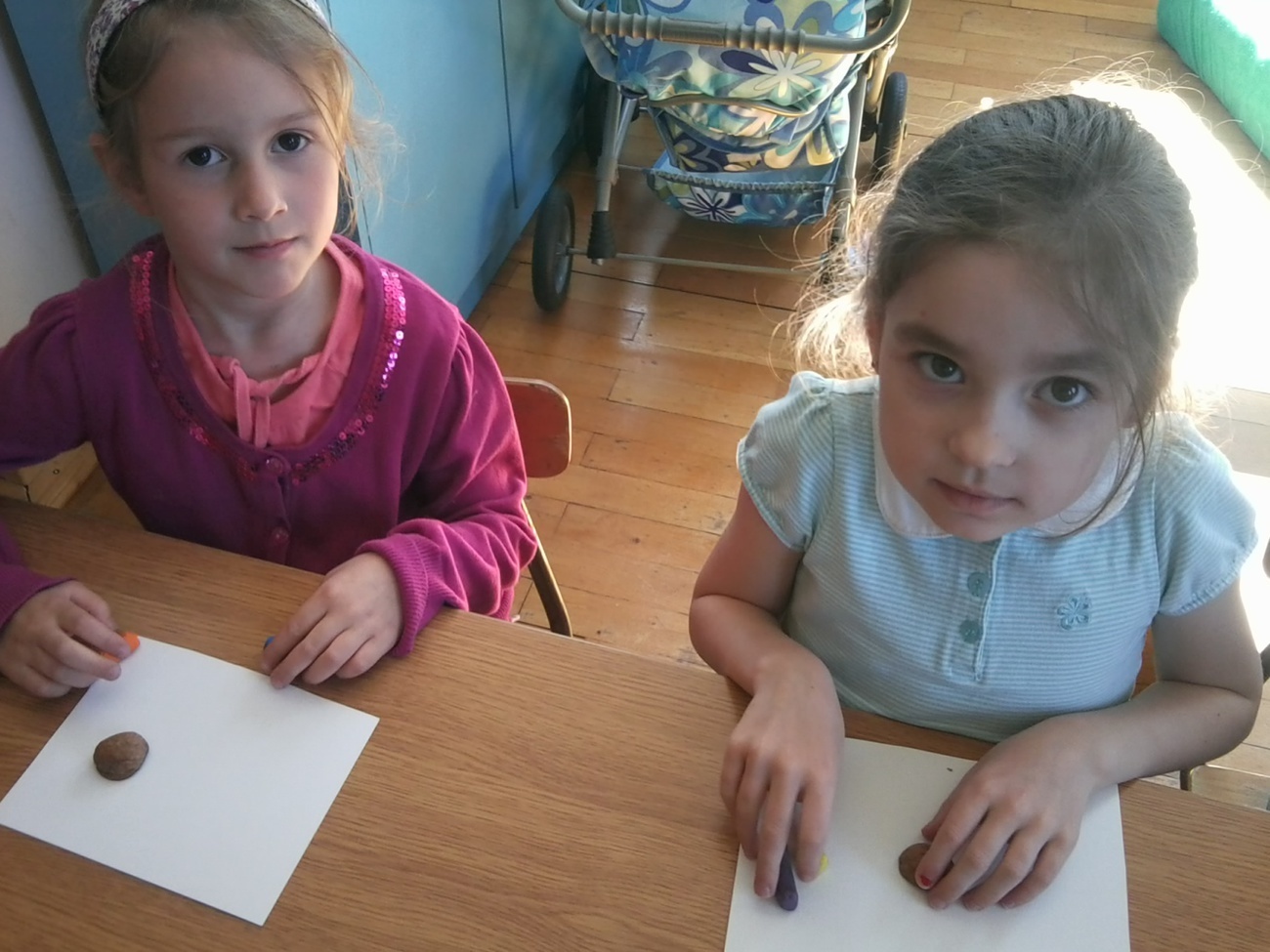 Każdy z nas otrzymał pół łupinki orzecha włoskiego i kolorową plastelinę i mógł zabrać się do pracy. Łupinkę orzecha oblepialiśmy plasteliną, przyklejaliśmy naszym biedronkom czarne kropki, lepiliśmy główki i oczka. Kolory biedronek wybieraliśmy według własnych pomysłów stąd też ich fantazyjne barwy. Prace wyglądają kolorowo i wiosennie, teraz z niecierpliwością czekamy na kolejne warsztaty z panią Wiktorią.