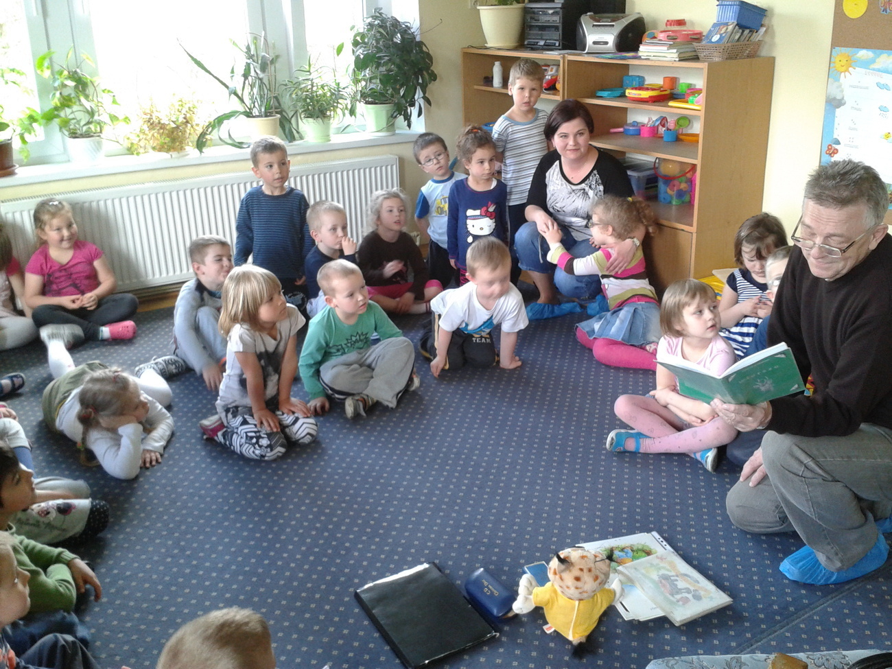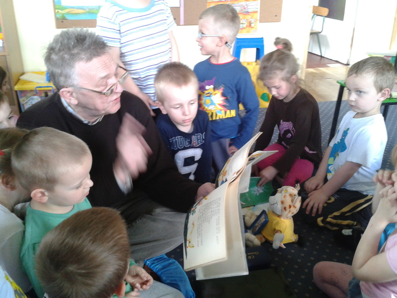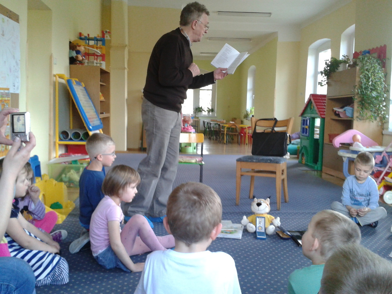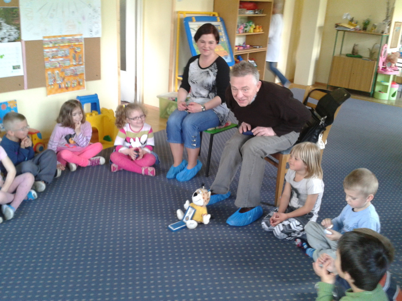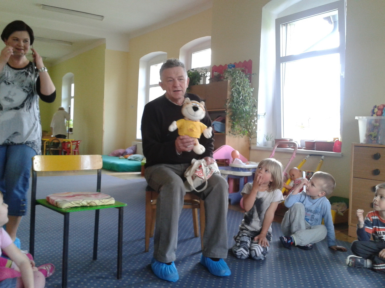 Nasz gość jest Kawalerem Orderu Uśmiechu, czyli przyjacielem wszystkich dzieci. Odwiedził nas wraz z panią Julią (mamą Basi) Rysiem - zabawną pacynką w ramach akcji Cała Polska czyta dzieciom. Z niecierpliwością czekamy na kolejną wizytę.