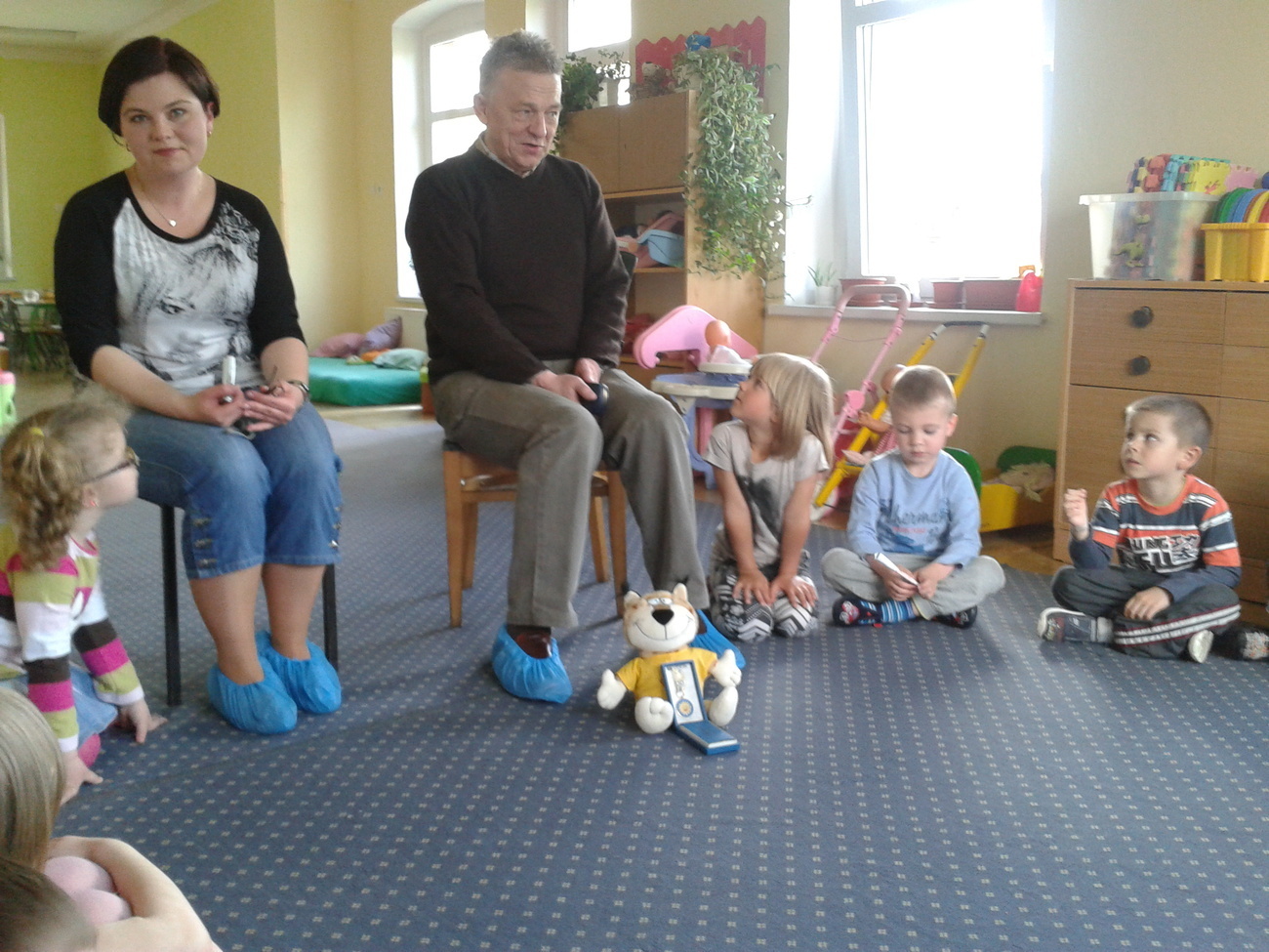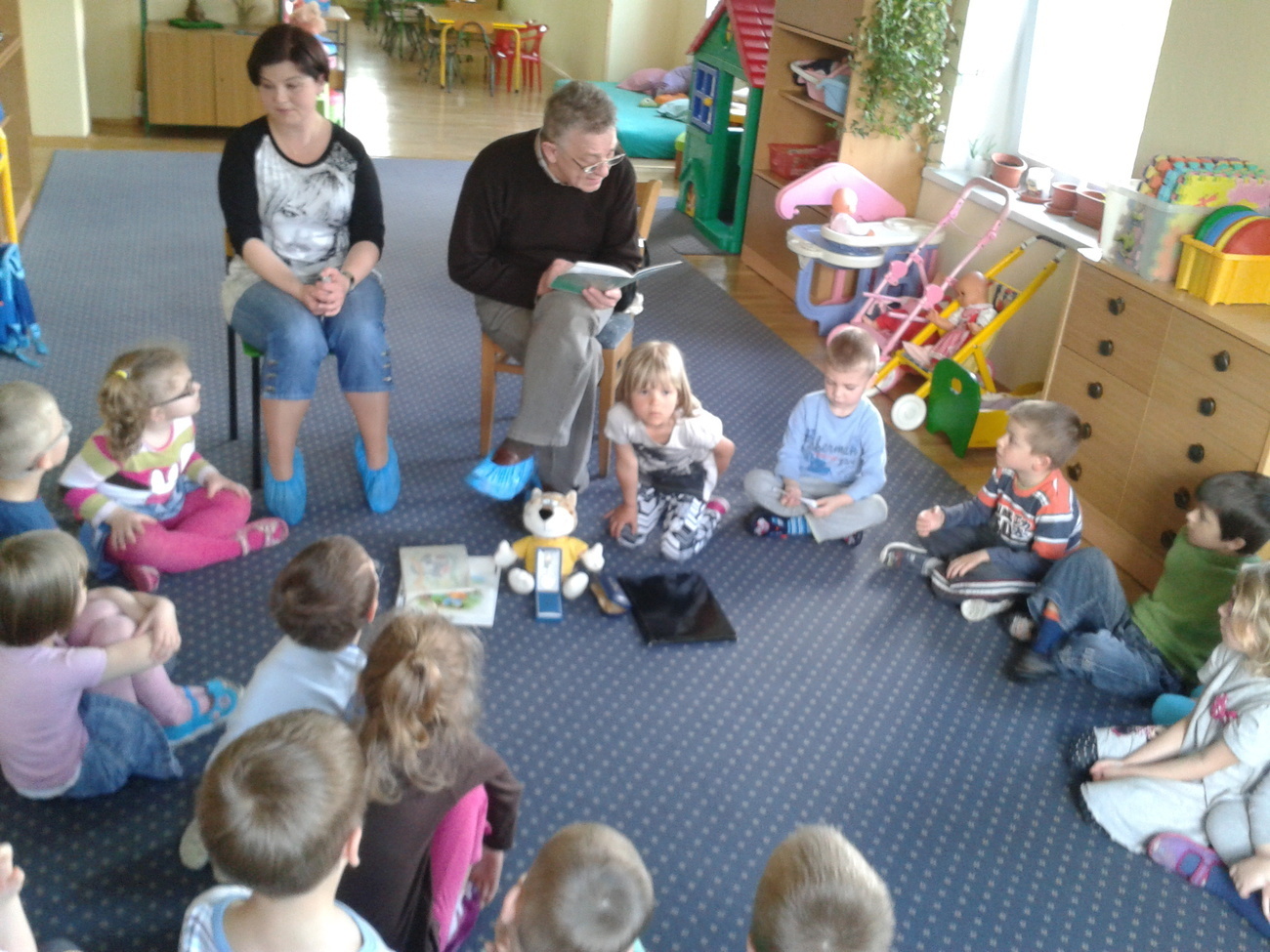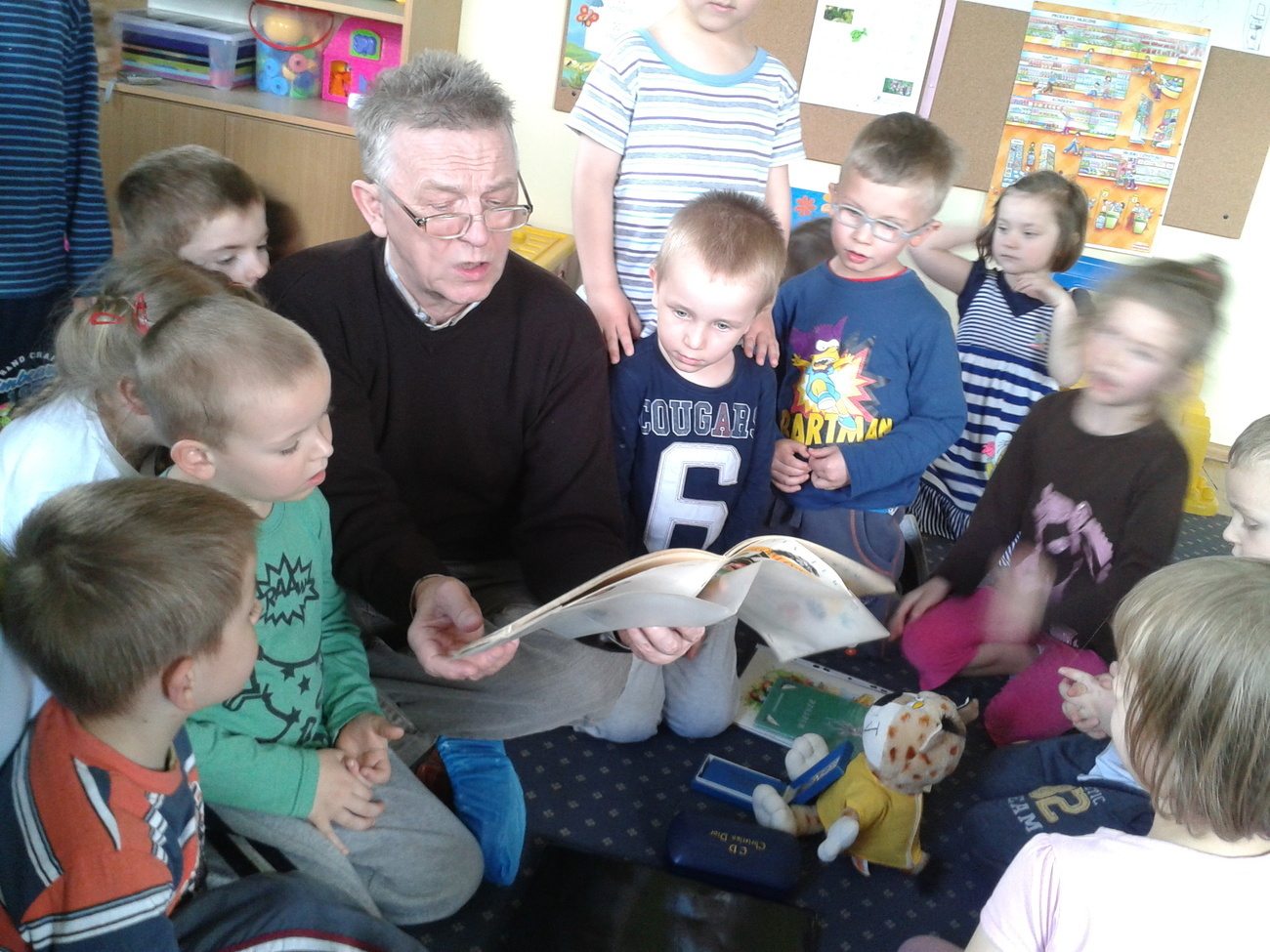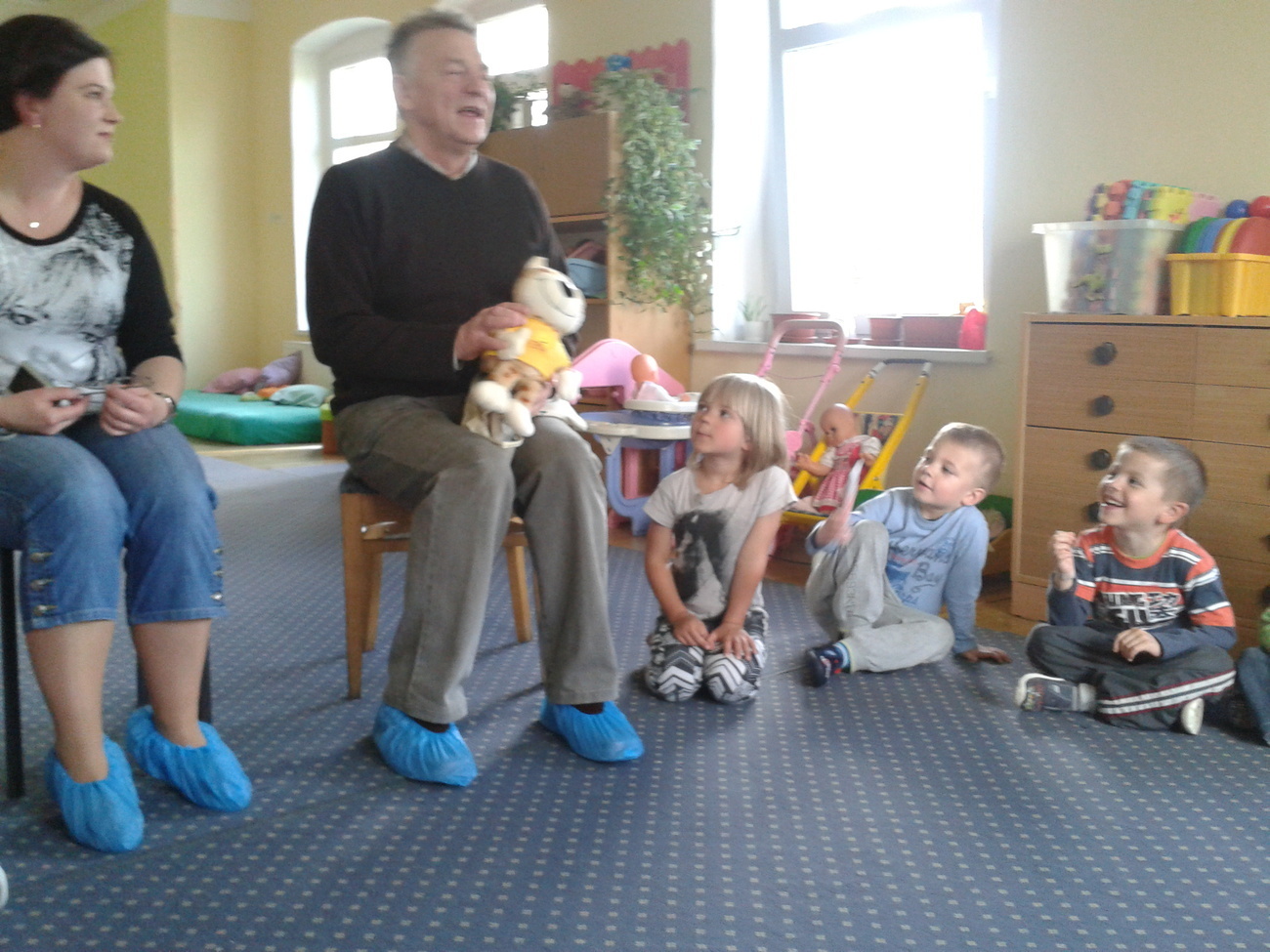 Nasz gość jest Kawalerem Orderu Uśmiechu, czyli przyjacielem wszystkich dzieci. Odwiedził nas wraz z panią Julią (mamą Basi) Rysiem - zabawną pacynką w ramach akcji Cała Polska czyta dzieciom. Z niecierpliwością czekamy na kolejną wizytę.