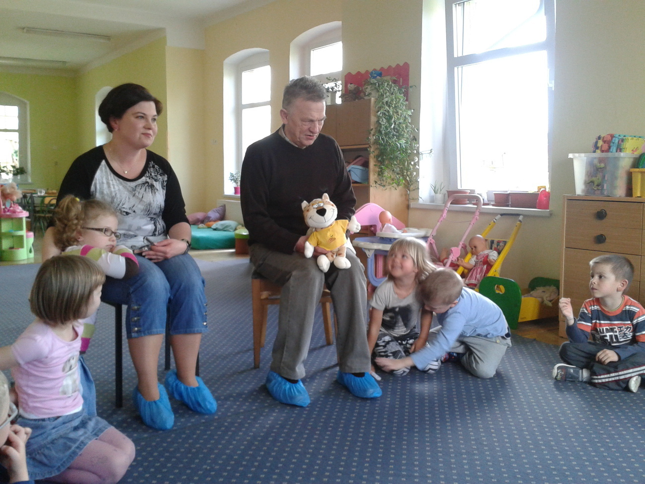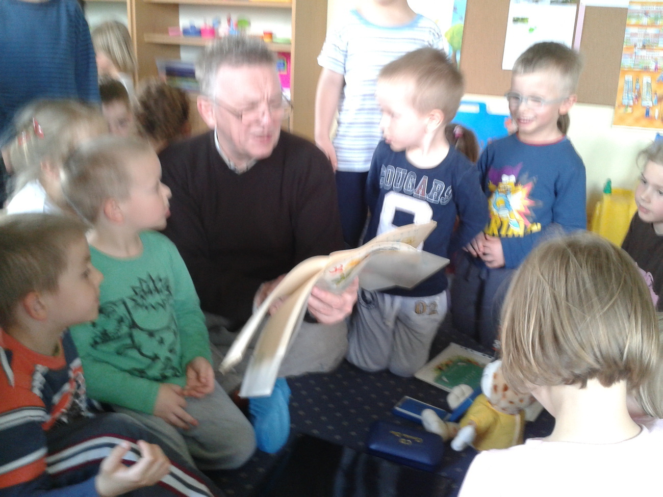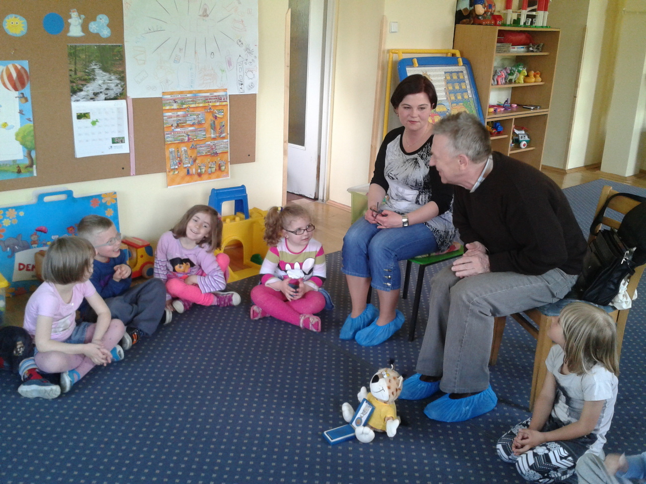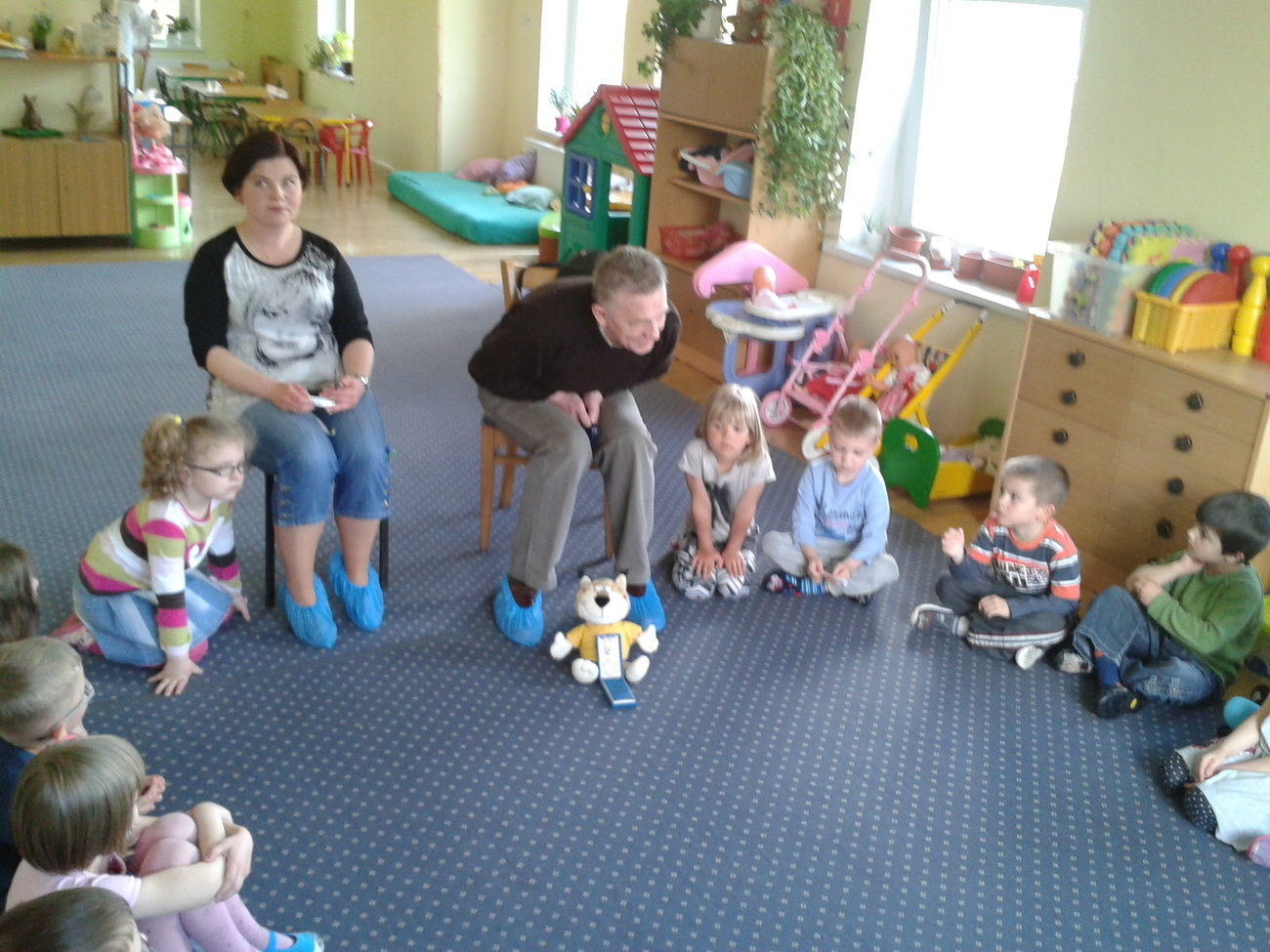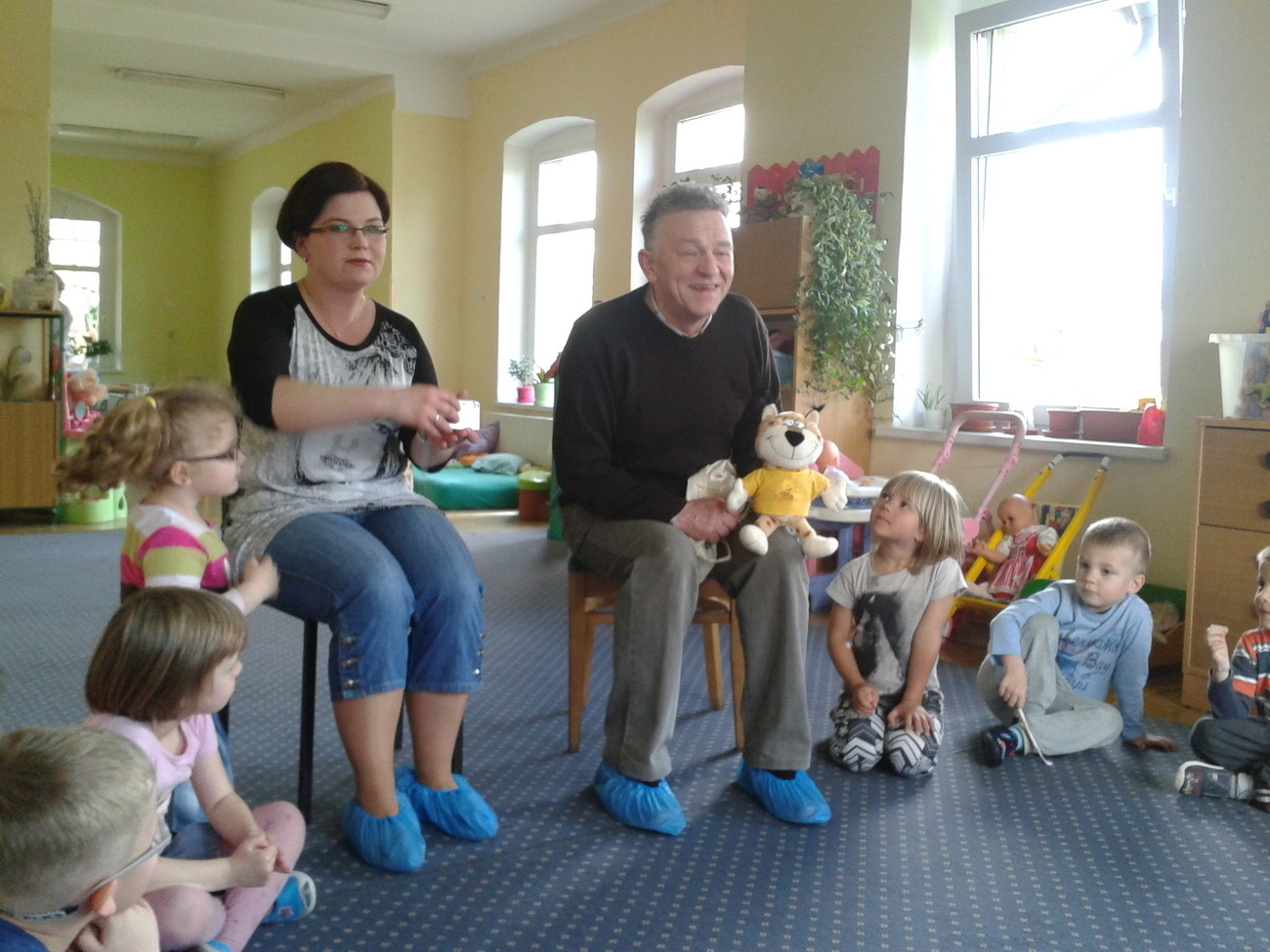 Nasz gość jest Kawalerem Orderu Uśmiechu, czyli przyjacielem wszystkich dzieci. Odwiedził nas wraz z panią Julią (mamą Basi) Rysiem - zabawną pacynką w ramach akcji Cała Polska czyta dzieciom. Z niecierpliwością czekamy na kolejną wizytę.