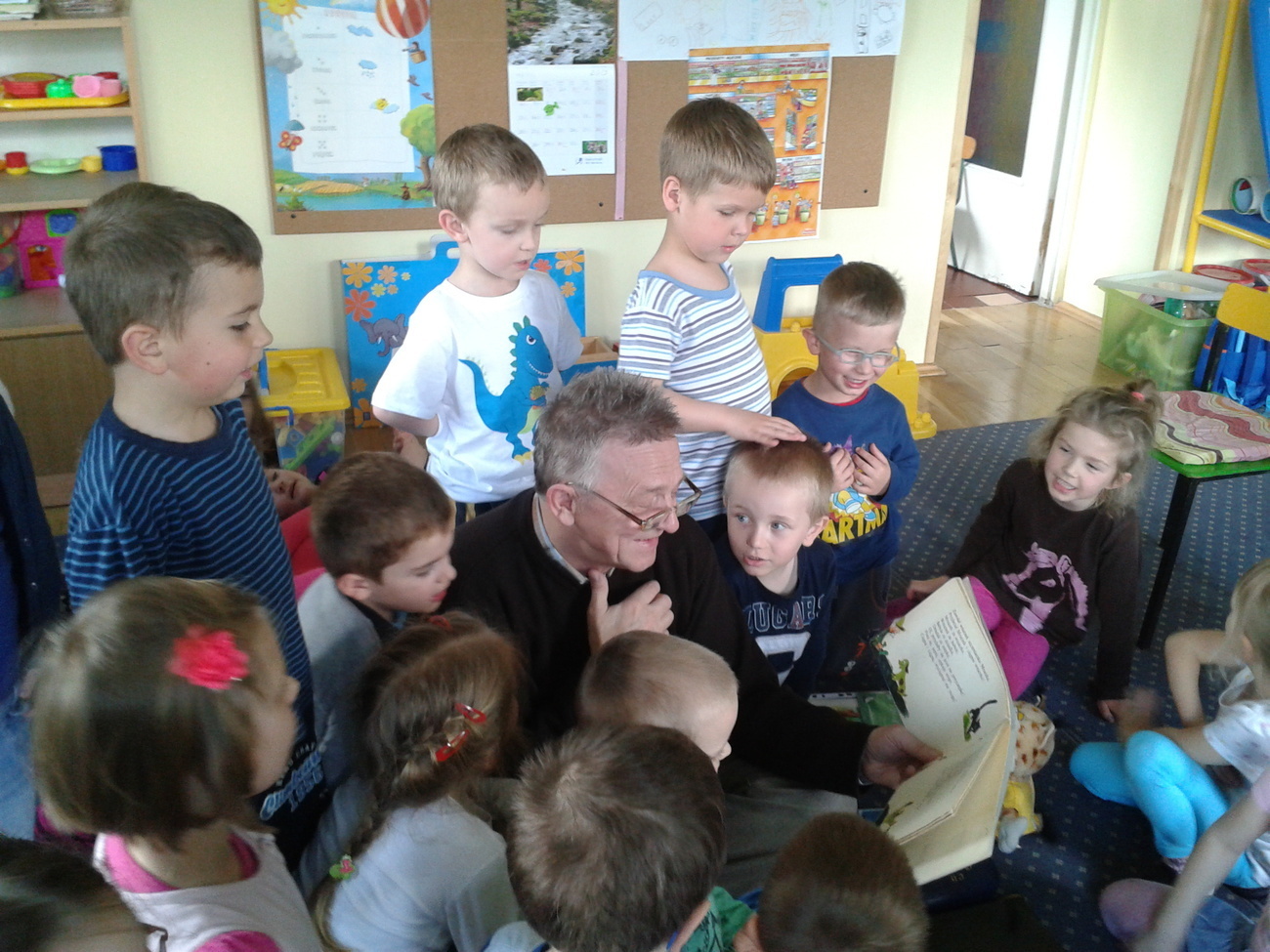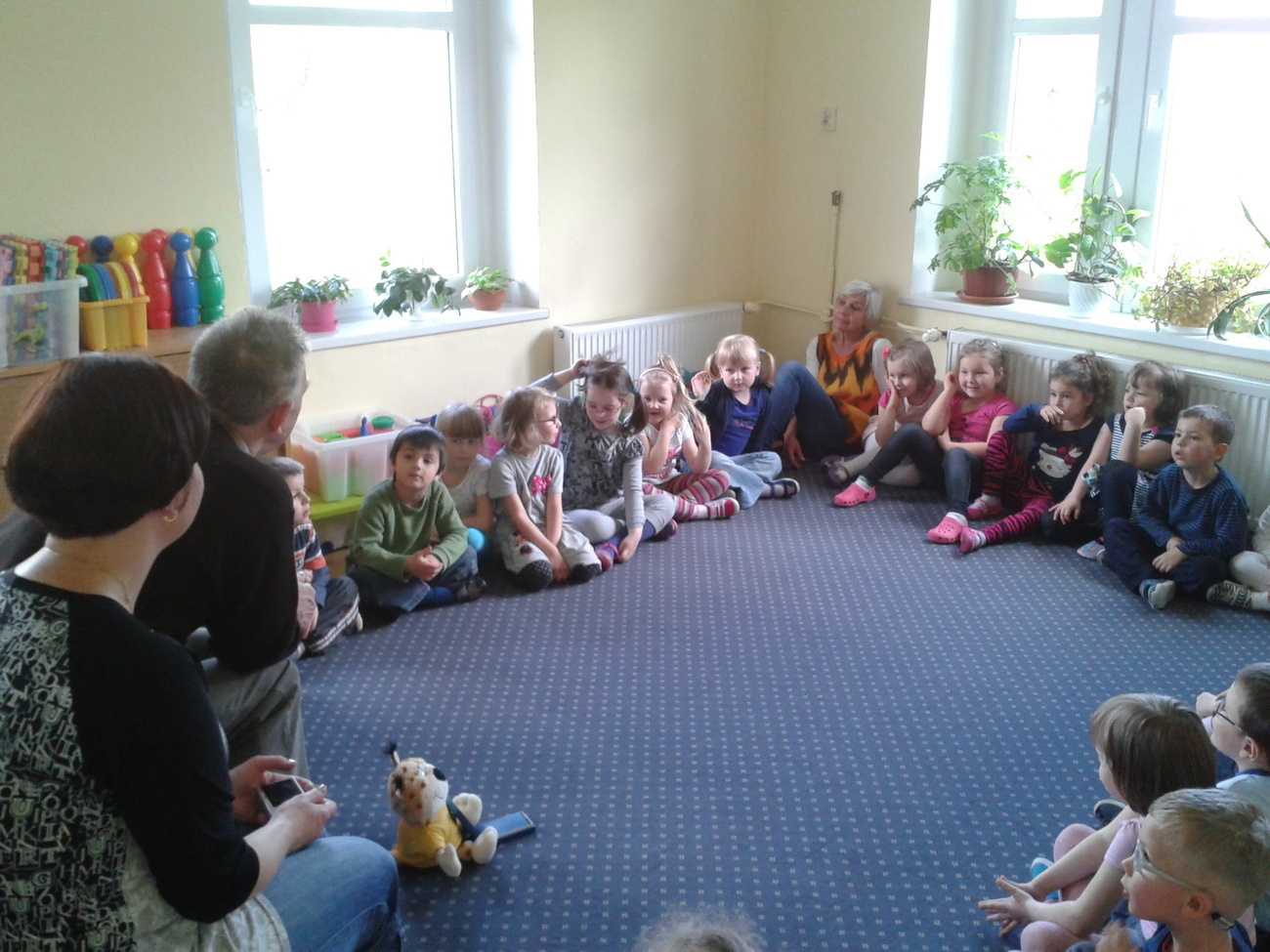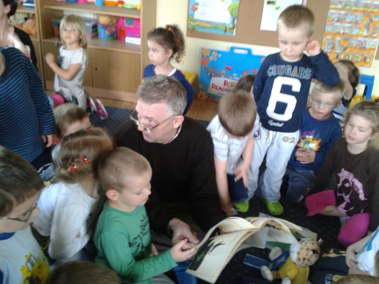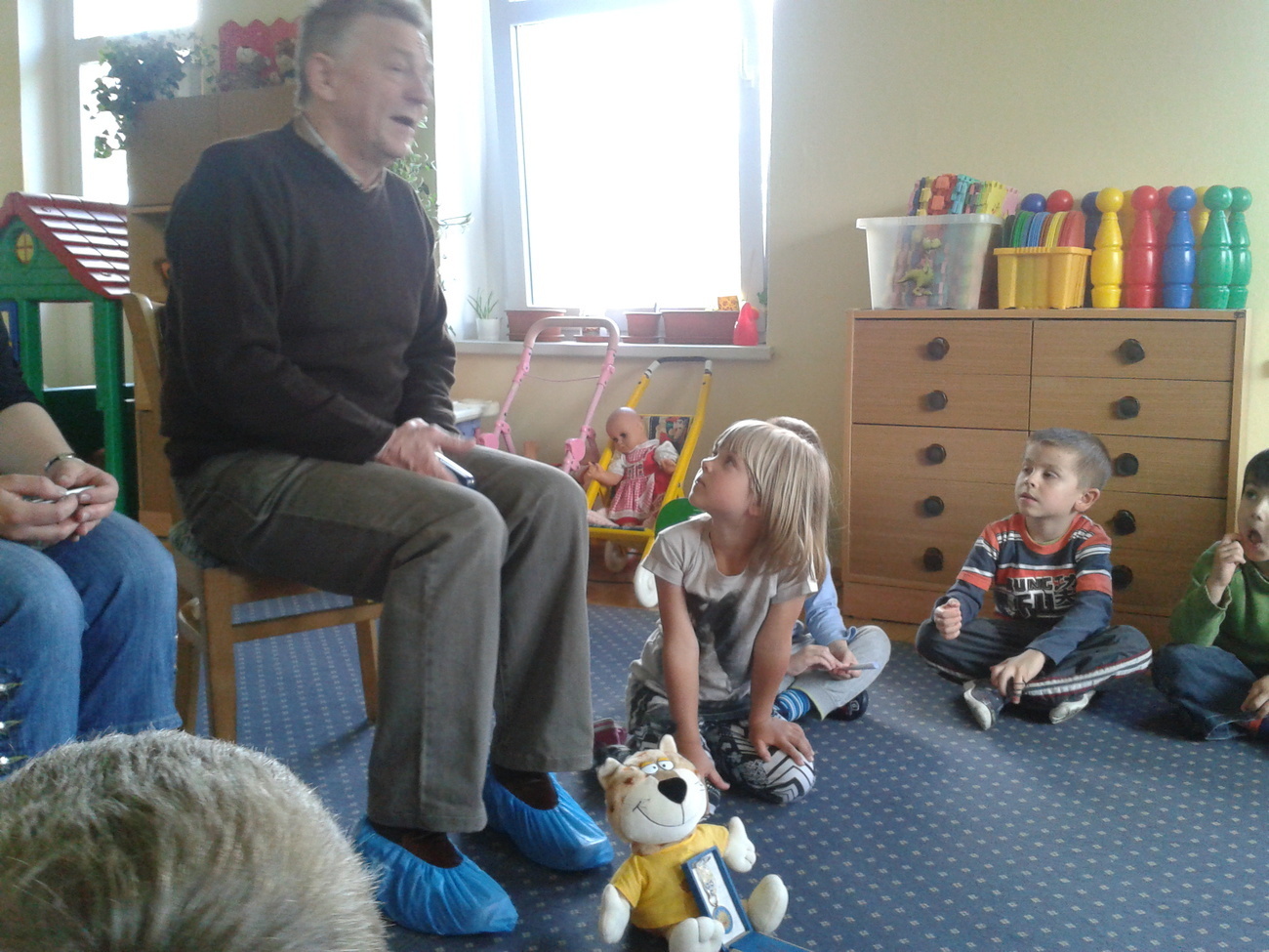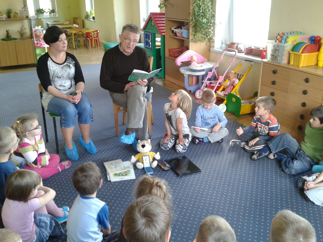 Nasz gość jest Kawalerem Orderu Uśmiechu, czyli przyjacielem wszystkich dzieci. Odwiedził nas wraz z panią Julią (mamą Basi) Rysiem - zabawną pacynką w ramach akcji Cała Polska czyta dzieciom. Z niecierpliwością czekamy na kolejną wizytę.
