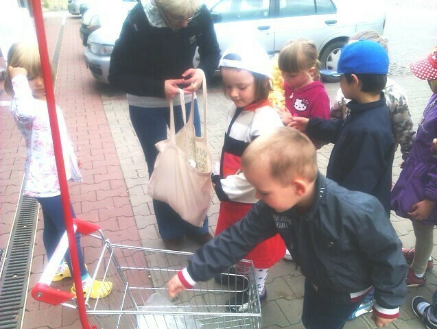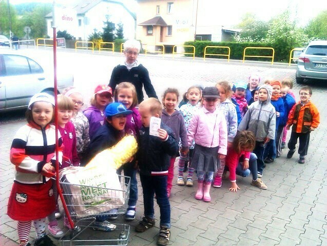 To nie taka prosta sprawa bo jest on znacznie większy od znanego nam osiedlowego sklepu. Jest tak duży, że można w nim zabłądzić. Dowiedzieliśmy się m.in. jak korzystać z listy zakupów i odszukać potrzebne nam produkty, kogo prosić o pomoc w razie kłopotów. Z udziałem naszych pań oraz życzliwej obsługi supermarketu udało nam się wykonać zaplanowane wcześniej zakupy. Spisaliśmy się na medal i opanowaliśmy kolejną przydatną w życiu umiejętność.