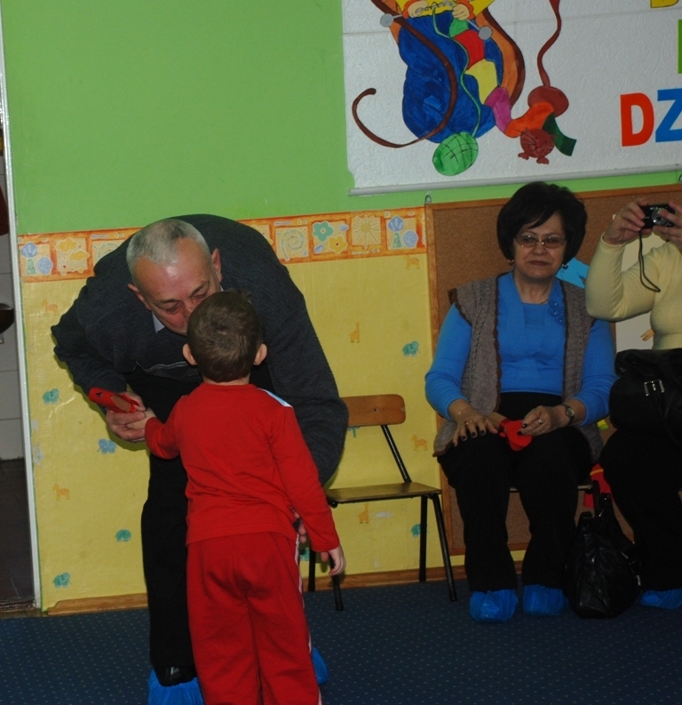 Występy dobiegły końca, ale przed nami ciąg dalszy imprezy: Słoneczka rozdają drobne upominki, a później zapraszają seniorów do wspólnej zabawy. Wszyscy wesoło bawimy się w ulubione zabawy maluchów: Balonika, Starego Niedźwiedzia, Stonogę i Pingwina. Na zakończenie wysypujemy klocki i zapraszamy do tworzenia wspólnych budowli. Ta część maluszkom z pewnością podobała się najbardziej – Babcie i Dziadkowie bawiący się razem z nimi w przedszkolu – to dopiero wydarzenie!