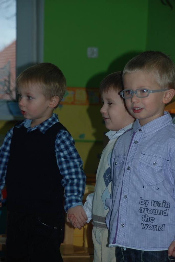 Godzina 9.30 – seniorzy zbierają się w sali młodszych starszaków – tam obejrzą jasełka pt. "Ubogo narodzony", w wykonaniu dwóch najstarszych grup: Bzyczków i Odkrywców, pod przewodnictwem swoich pań: Asi, Basi i Moniki . Już po raz kolejny występują przed większą publicznością. Trema więc z całą pewnością nikogo nie dopadnie.