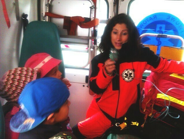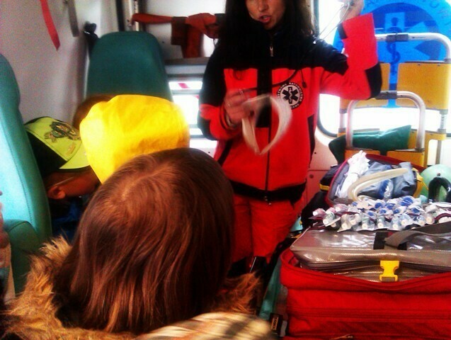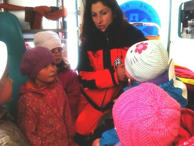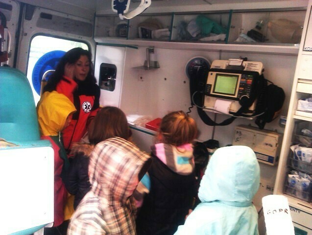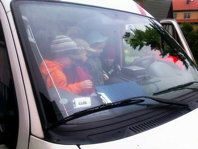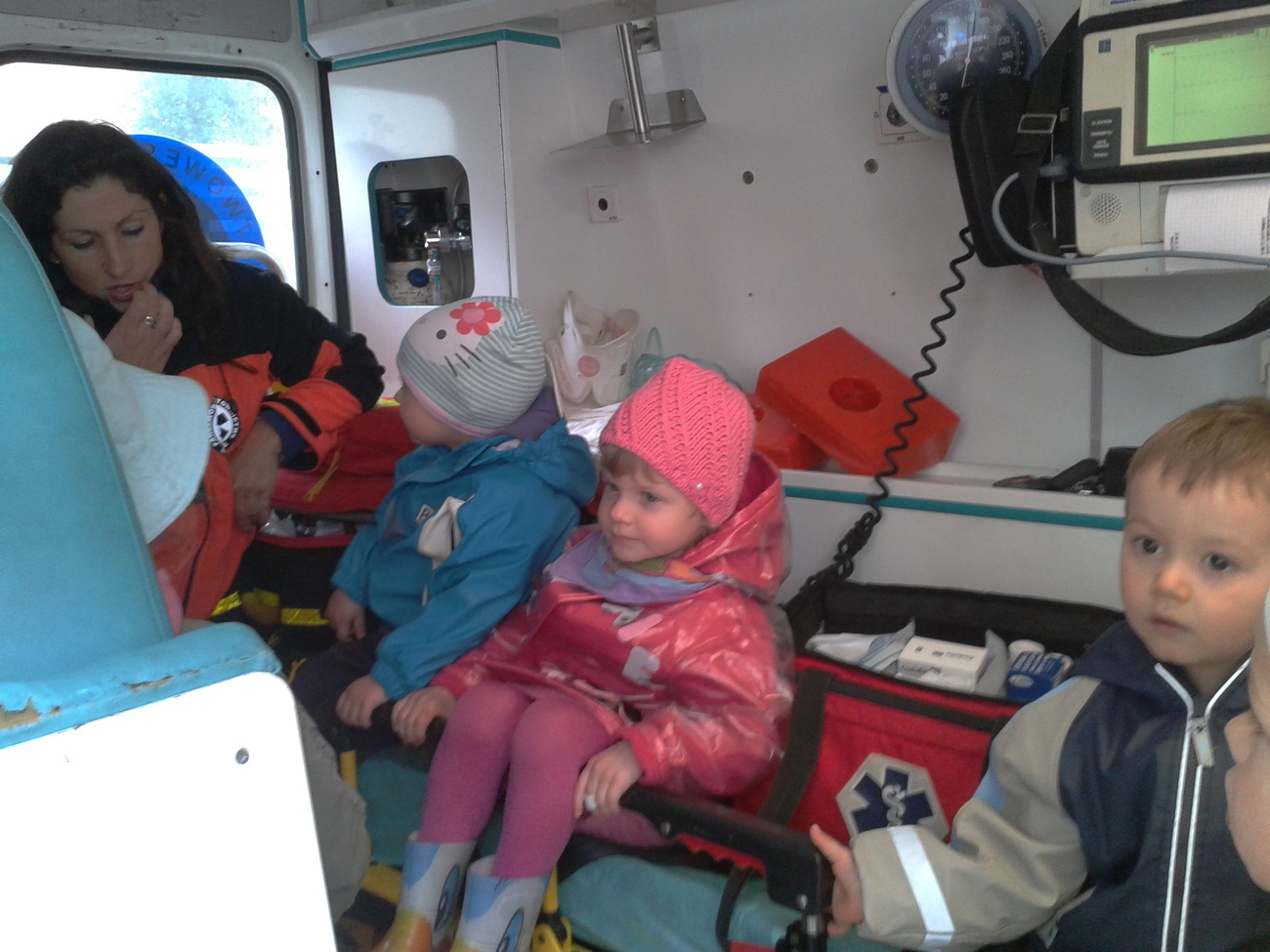 Byliśmy nawet w środku, gdzie jest mnóstwo tajemniczego sprzętu i wyposażenia. Sporo ciekawości wzbudził defibrylator, jedna z maszyn do ratowania ludzkiego życia. Jednak najwięcej radości sprawiło nam własnoręczne włączenie sygnału alarmowego karetki.