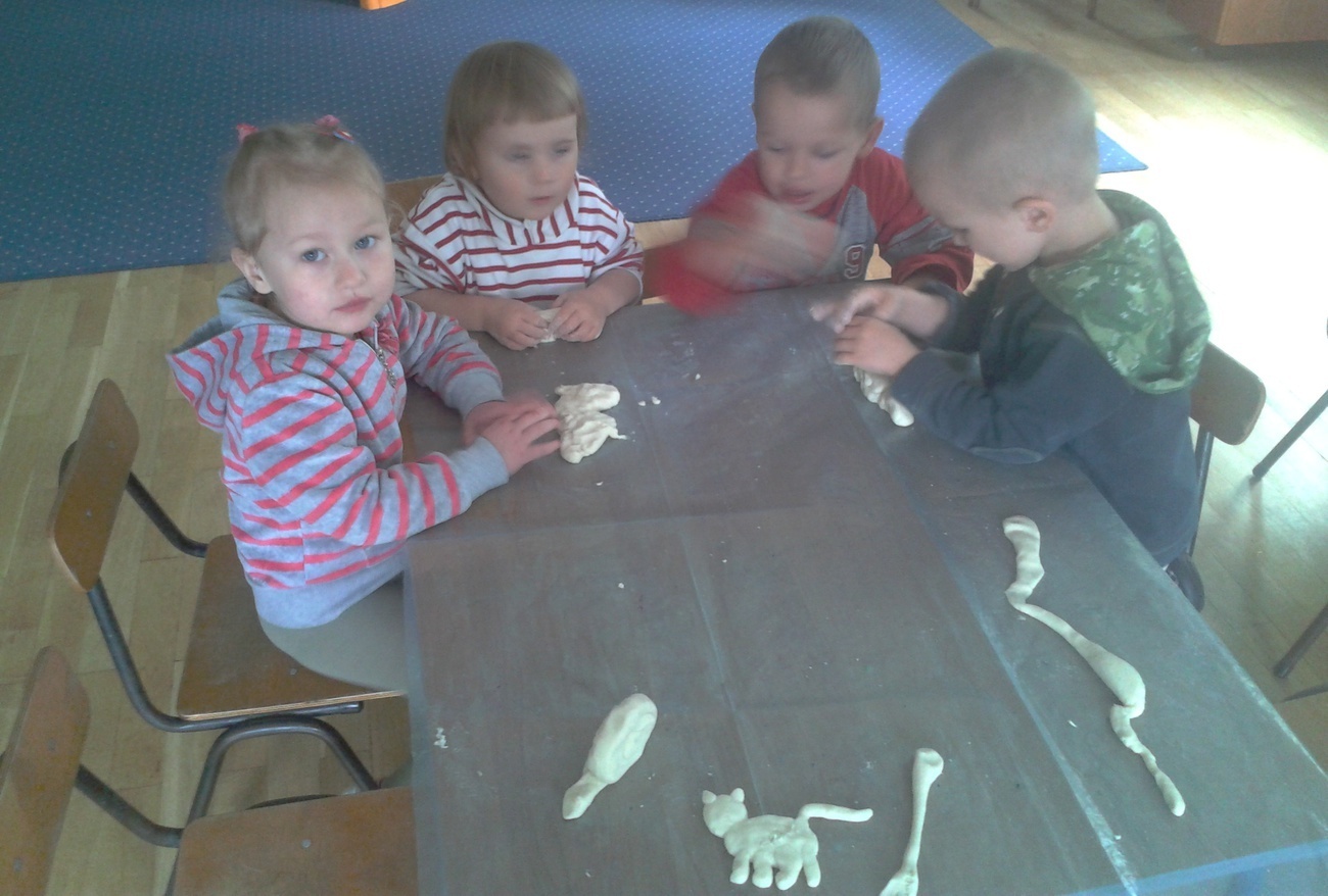 Nasi Milusińscy w ferworze pracy formowali różnorodne figurki. W czasie pracy dawali upust swoim emocjom i fantazji, przy tym dobrze się bawili. Z masy solnej powstały między innymi: różne gady, płazy, zwierzęta i „skamieliny”. Wszystkie prace zostały oddane do wypieczenia w piecu. Natomiast efekt: lepienia, formowania, wałkowania i ugniatania „małych paluszków” prezentujemy w galerii zdjęć.