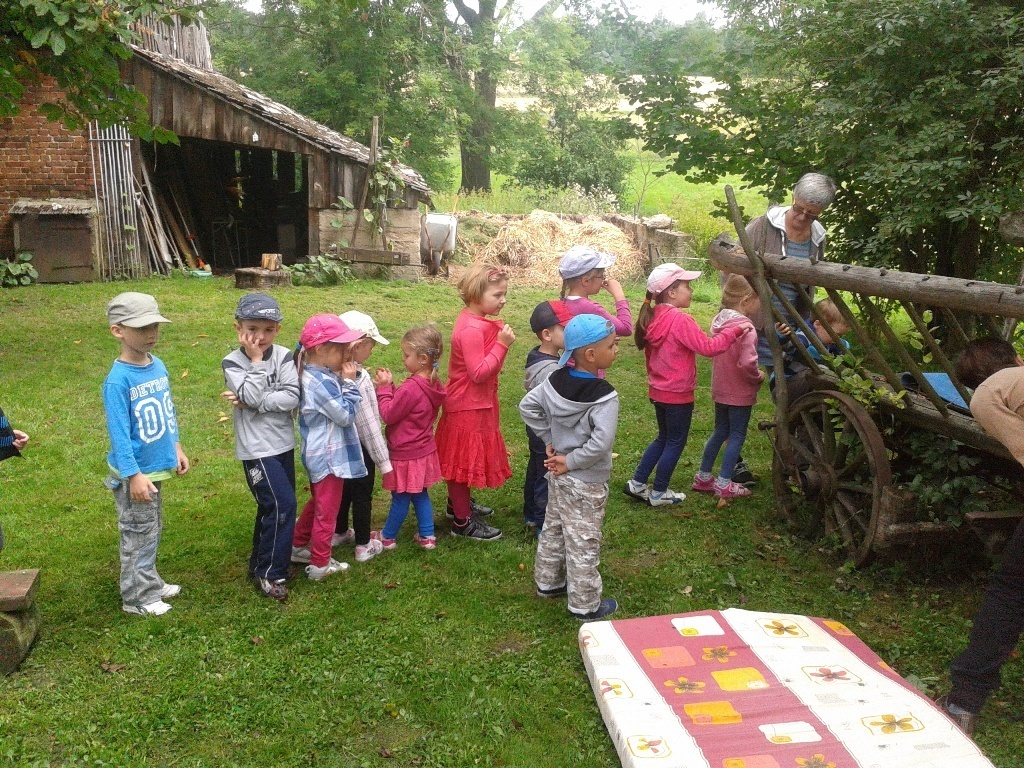 Podziwialiśmy piękne widoki pól i lasów. To tutaj drugie śniadanie smakowało najpyszniej na świecie. Największą atrakcją był niesamowity tor przeszkód utworzony z dwóch wozó , oraz huśtawka dająca wiele uśmiechów. Mieliśmy okazję obejrzeć pracownię pani Heni, w której wypieka się przepyszne chleby.