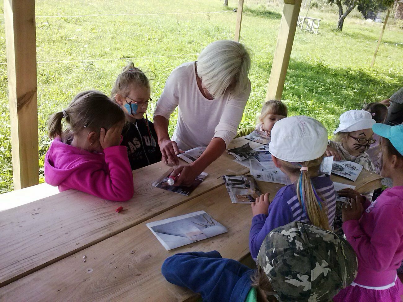 W Radoniowie zwiedzaliśmy każdy zakątek gospodarstwa ekologicznego, gdzie przewodnikiem była pani Henia. Podzieleni na dwie grupy przywitaliśmy się z kozami, które uwielbiają rozmawiać z ludźmi. Innymi zwierzątkami tam mieszkającymi były milutkie kotki, które bardzo szybko zaprzyjaźniły się z dziećmi.