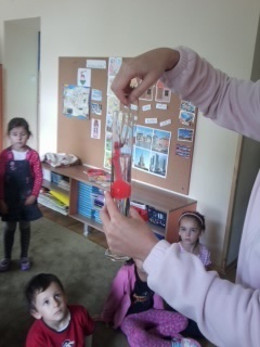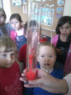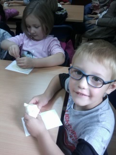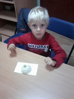 Dowiedzieliśmy się czym są wulkany, jak powstają i co się z nich wydobywa. Następnie obejrzeliśmy filmy pokazujące różne erupcje wulkanów, zarówno tych znajdujących się na powierzchni Ziemi jak i tych podwodnych. Każda z tych erupcji była niesamowita, jednej towarzyszyły wybuchy pyłu i kłęby dymu innej podwodne bąble i fale. Mieliśmy okazję wysłuchać opowieści o mieszkańcach Pompei, których życie zakończył wybuch Wezuwiusza a także o ludziach, którzy świadomie zamieszkują tereny pod wulkanem ze względu na występującą tam żyzną glebę. Poznaliśmy budową wulkanu począwszy od tunelu poprzez stożek i krater. Wiemy na czym polega różnica między lawą a magmą, oglądaliśmy skały wulkaniczne. Czekała nas również mała niespodzianka. Po przerwie na drugie śniadanie mieliśmy okazję ulepić swój własny mały wulkan z masy solnej. Każdy chciał by jego wulkan był najbardziej okazały. Na zakończenie naszego spotkania pani Alicja zabrała nas na podwórko i pokazała mały wulkan zrobiony z gipsu, w którym mogliśmy zaobserwować mini erupcję wulkanu znajdującego się na powierzchni Ziemi. Po tylu wrażeniach, pożegnaliśmy się i wróciliśmy do przedszkola, gdzie pani Karolina zademonstrowała nam jeszcze erupcję wulkanu wodnego.