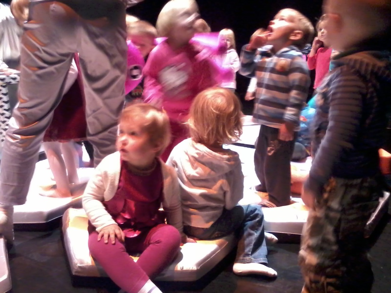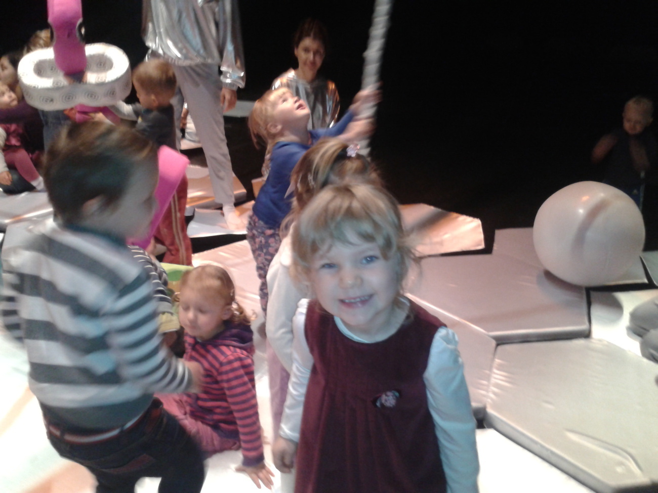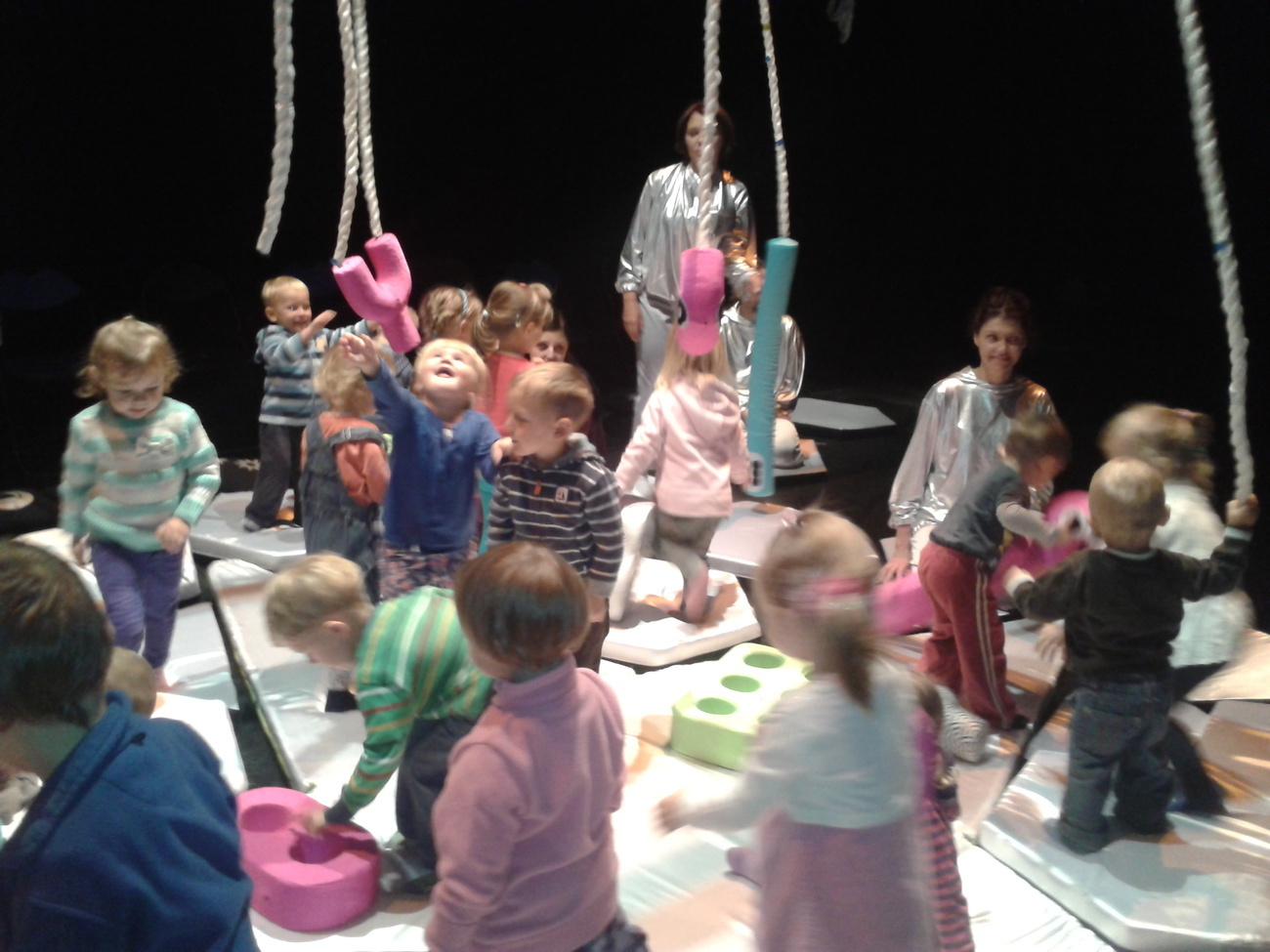 Jednak największą atrakcja tego spektaklu była interakcja aktorów z dziećmi. Przedszkolaki mogły dotknąć zabawek, poskakać na poduszkach, poczuć, że oni także są częścią przedstawienia.