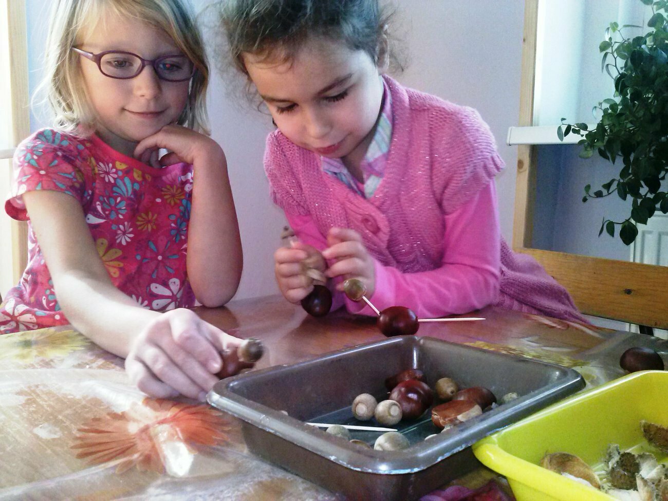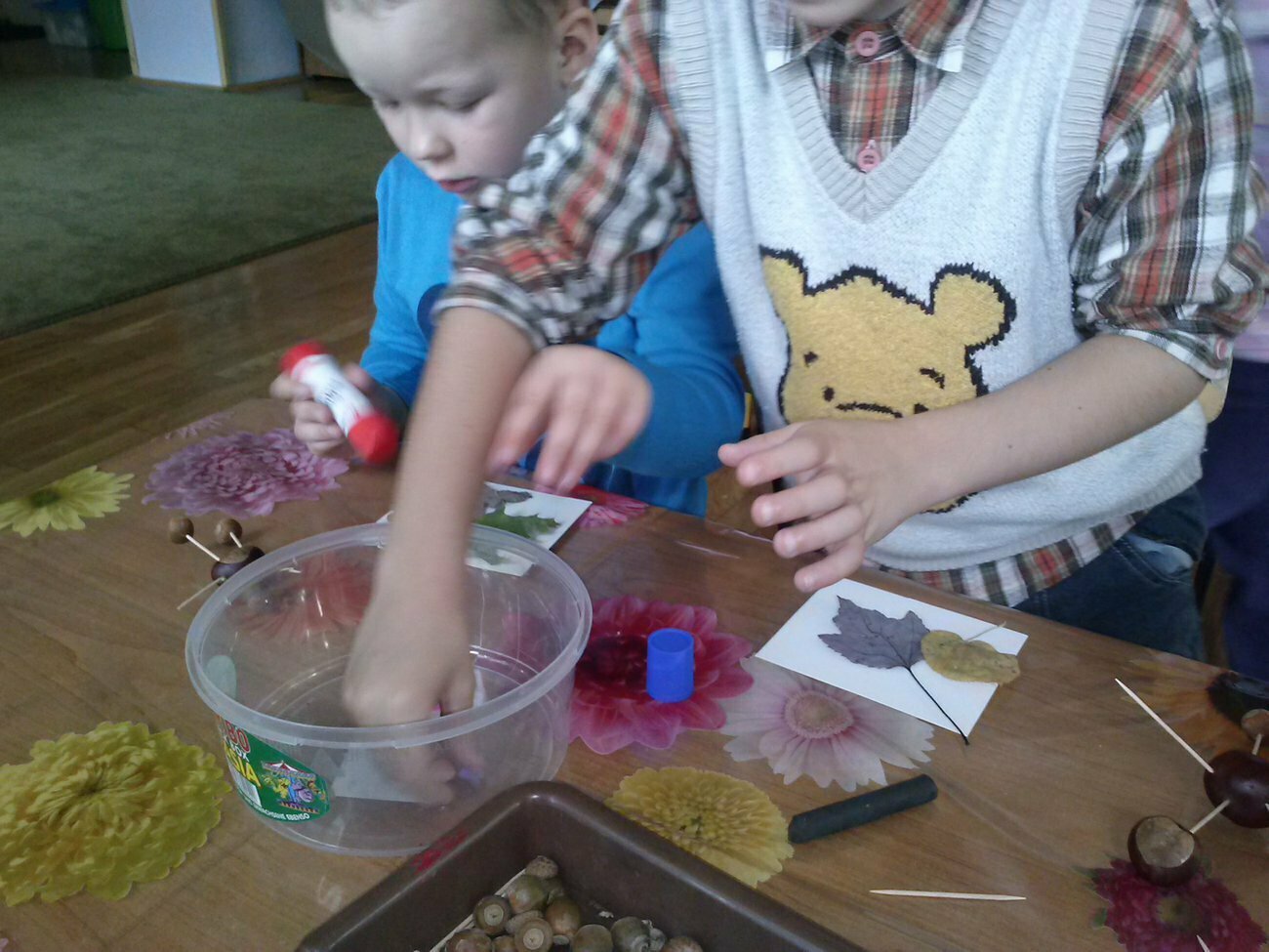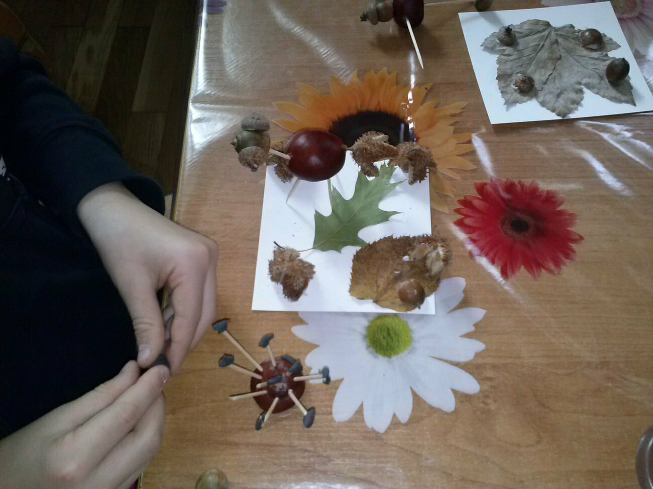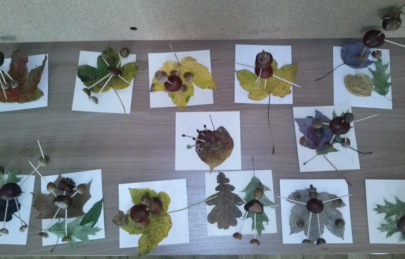 Jak co roku wraz z nadejściem jesieni grupa Skrzatów wyruszyła na poszukiwania kasztanów, żołędzi i pięknych kolorowych liści. Znalezione okazy posłużyły nam potem do zbudowania leśno - jesiennych stworków - Kasztaniaków. Do ich wykonania potrzebne były wykałaczki, plastelina oraz ostre szydło do zrobienia otworów w twardych skorupkach. Oczywiście szydła nie wolno było używać, tutaj pomogła nam nasza pani.