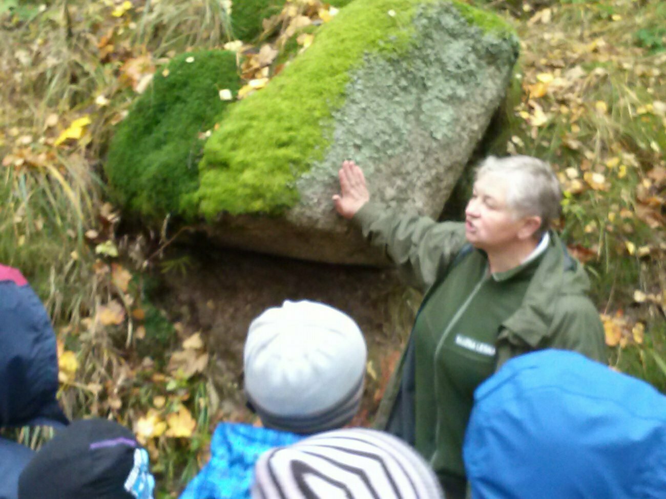 Pani Bogusią opowiedziała nam również o tym co należy z robić gdy zobaczymy ogień w lesie. Podpatrywaliśmy budki i dziuple dla ptaków, obserwowaliśmy różne gatunki mchu rosnące w jednym miejscu i utrwalaliśmy wiadomości na temat rożnych spotkanych drzew. Cała wycieczka była bardzo udana i już umawiamy się na kolejne leśne spotkanie.