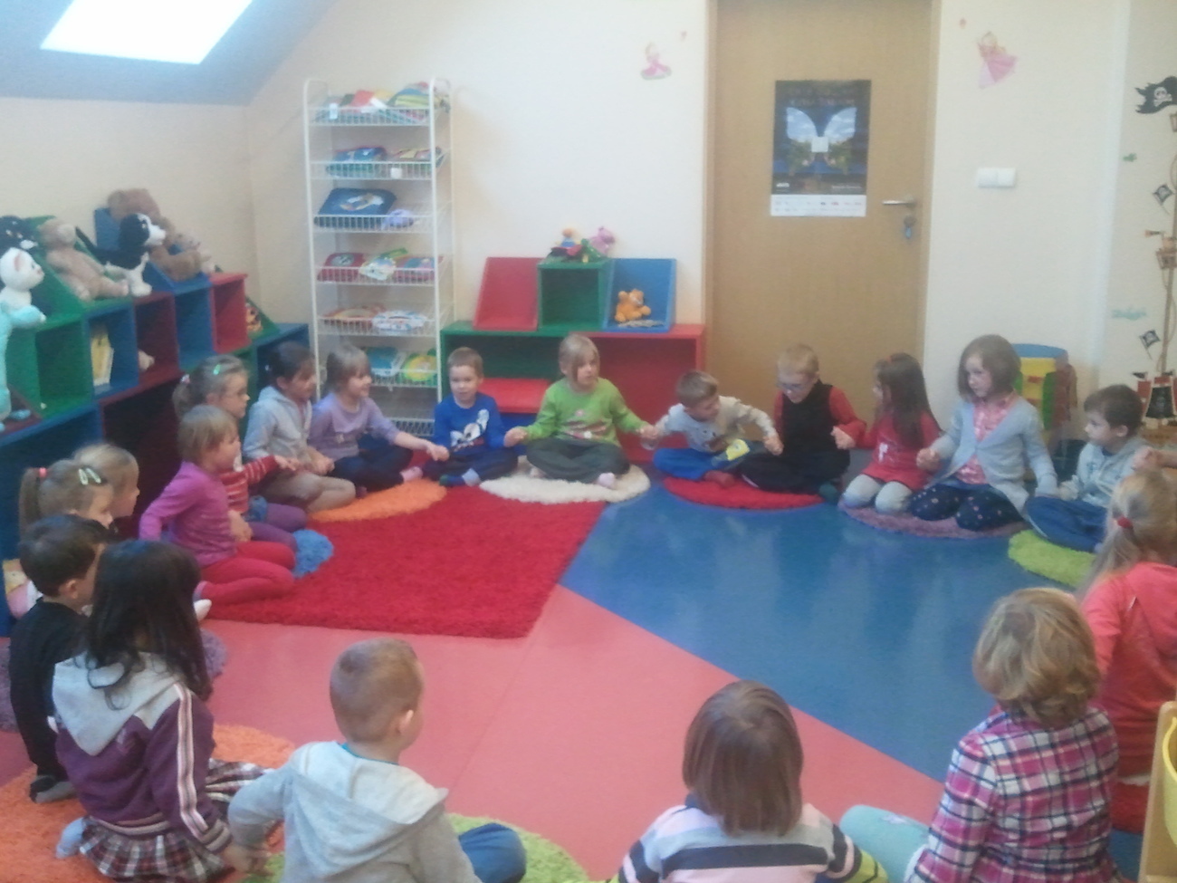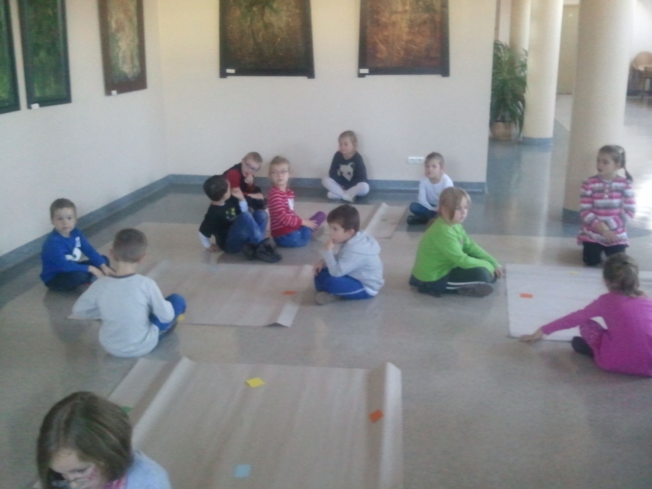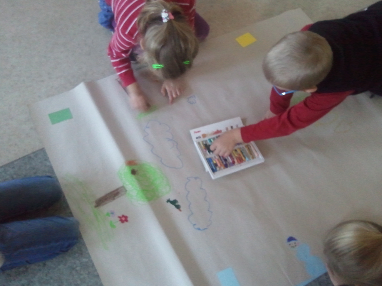Dziś uczestniczyliśmy w kolejnej lekcji bibliotecznej organizowanej przez Książnicę Karkonoską. Spotkanie poświęcone było emocjom i uczuciom oraz porom roku. Zajęcie rozpoczęliśmy od rozmów na temat tego czym są uczucia i w jaki sposób je okazujemy. Pani prowadząca spotkanie czytała nam rożne sytuacje opisujące zachowania i emocje ludzi a naszym zadaniem było odgadnąć i nazwać dane uczucie. Niektóre z nich znaliśmy już wcześniej, każdy wie czym jest smutek, radość, gniew czy też żal ale w trakcie zajęć dowiedzieliśmy się o empatii, nadziei, zazdrości i wielu innych emocjach. Po rozmowie, udaliśmy się na małą wycieczkę naszym zaczarowanym pociągiem, który zatrzymywał się na stacji „radość”, „smutek” i „gniew”, w zależności od miejsca, gdzie zatrzymywał się pociąg taki nastrój dzieci miały za zadanie przedstawić. Na koniec spotkania rozmawialiśmy jeszcze o różnych porach roku. Wszystkie dzieci wymieniły atrybuty wiosny, lata, jesieni i zimy. Następnie pani prowadząca spotkanie zaprowadziła nas do pomieszczenia, w którym przygotowane były duże arkusze papieru i pastele. Każdy z przedszkolaków miał narysować ilustrację przedstawiająca wybraną porę roku. Cała praca przebiegała w bardzo przyjemnej atmosferze, którą umilała muzyka Mozarta. Po skończonej pracy, dzieci pożegnały się i obiecały, że ponownie odwiedzą Książnicę Karkonoską i bibliotekę dla dzieci.