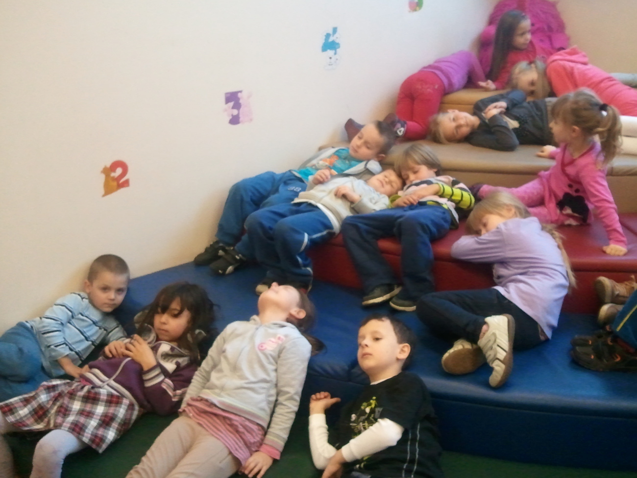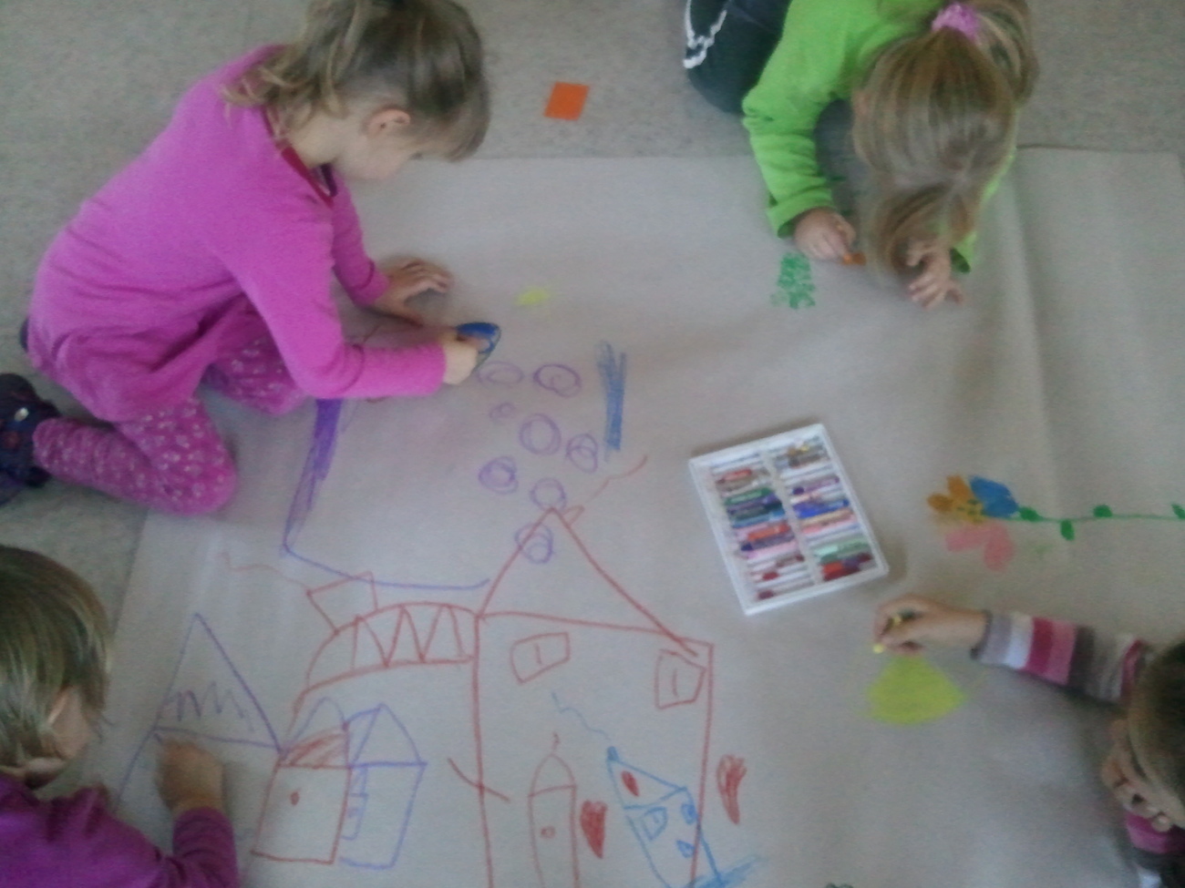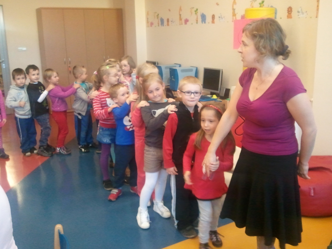 Dziś uczestniczyliśmy w kolejnej lekcji bibliotecznej organizowanej przez Książnicę Karkonoską. Spotkanie poświęcone było emocjom i uczuciom oraz porom roku. Zajęcie rozpoczęliśmy od rozmów na temat tego czym są uczucia i w jaki sposób je okazujemy. Pani prowadząca spotkanie czytała nam rożne sytuacje opisujące zachowania i emocje ludzi a naszym zadaniem było odgadnąć i nazwać dane uczucie. Niektóre z nich znaliśmy już wcześniej, każdy wie czym jest smutek, radość, gniew czy też żal ale w trakcie zajęć dowiedzieliśmy się o empatii, nadziei, zazdrości i wielu innych emocjach. Po rozmowie, udaliśmy się na małą wycieczkę naszym zaczarowanym pociągiem, który zatrzymywał się na stacji „radość”, „smutek” i „gniew”, w zależności od miejsca, gdzie zatrzymywał się pociąg taki nastrój dzieci miały za zadanie przedstawić. Na koniec spotkania rozmawialiśmy jeszcze o różnych porach roku. Wszystkie dzieci wymieniły atrybuty wiosny, lata, jesieni i zimy. Następnie pani prowadząca spotkanie zaprowadziła nas do pomieszczenia, w którym przygotowane były duże arkusze papieru i pastele. Każdy z przedszkolaków miał narysować ilustrację przedstawiająca wybraną porę roku. Cała praca przebiegała w bardzo przyjemnej atmosferze, którą umilała muzyka Mozarta. Po skończonej pracy, dzieci pożegnały się i obiecały, że ponownie odwiedzą Książnicę Karkonoską i bibliotekę dla dzieci.