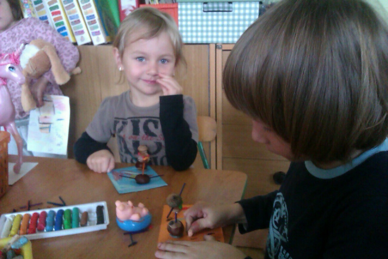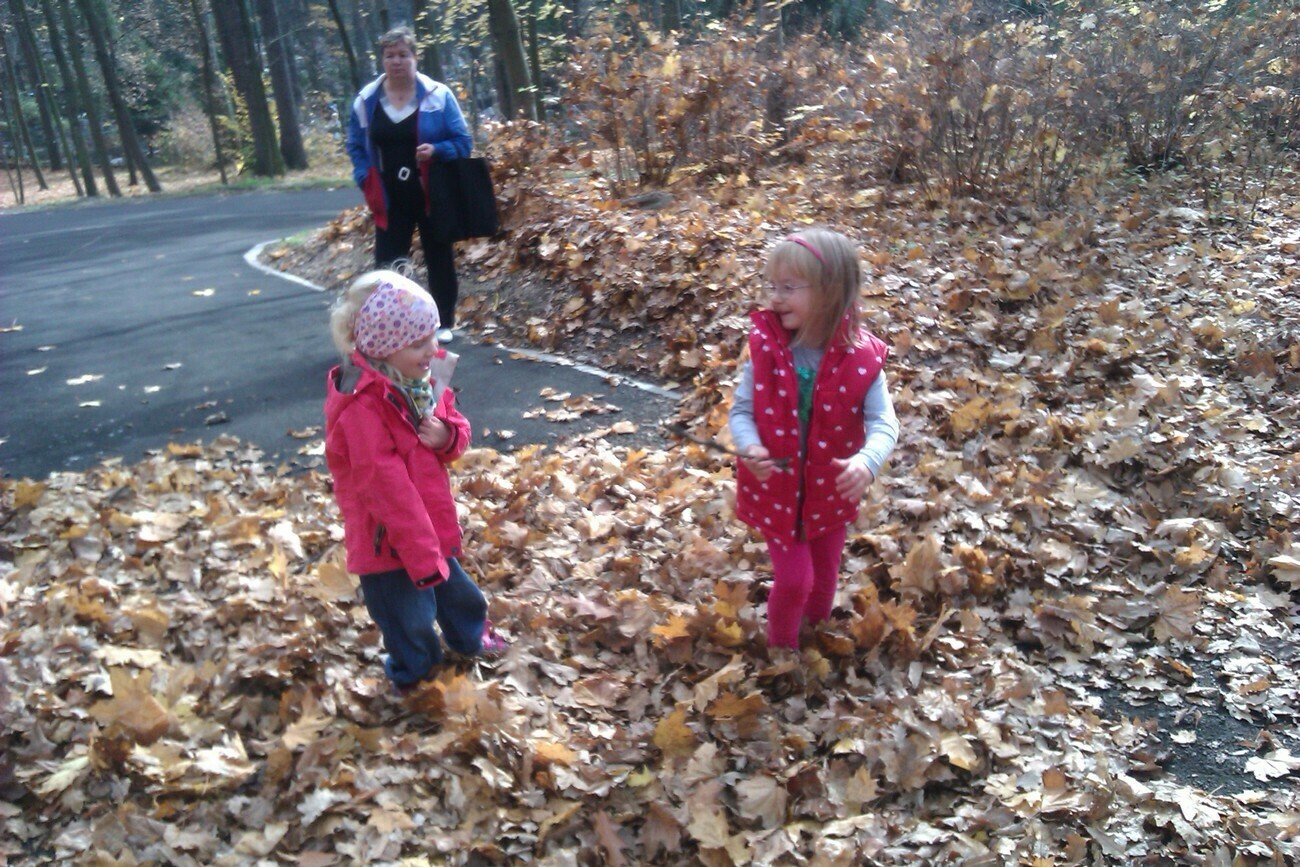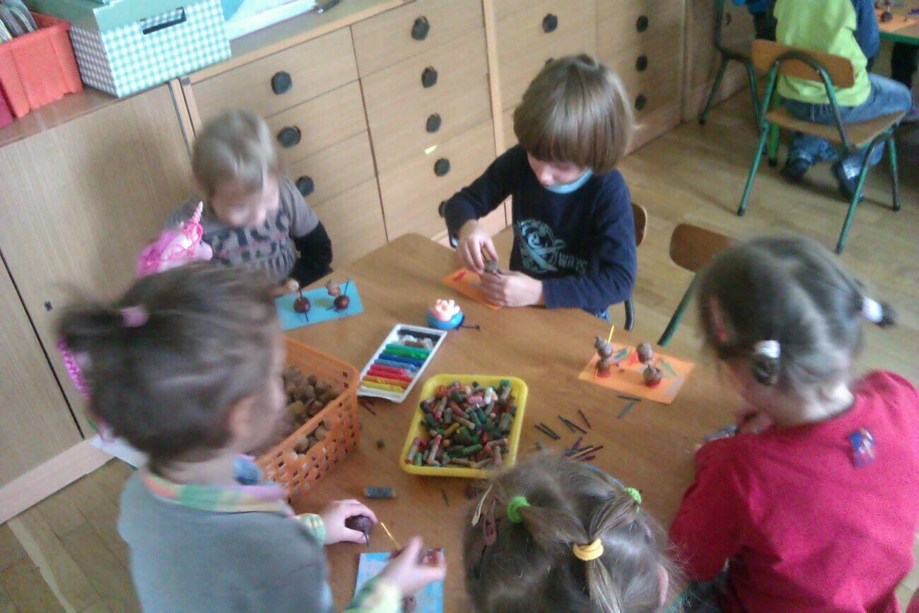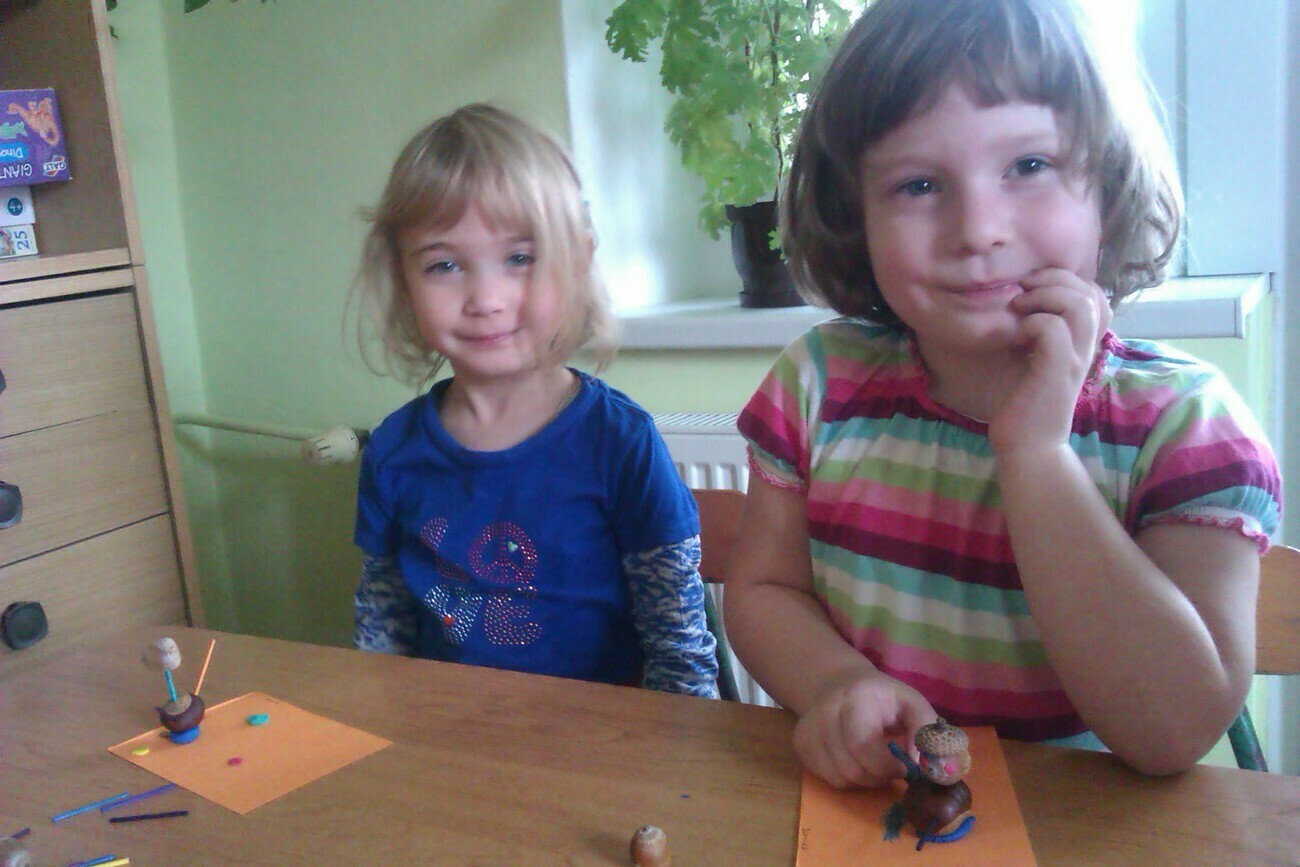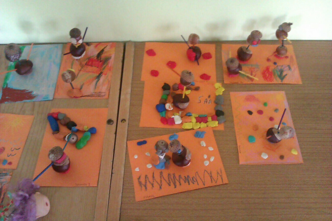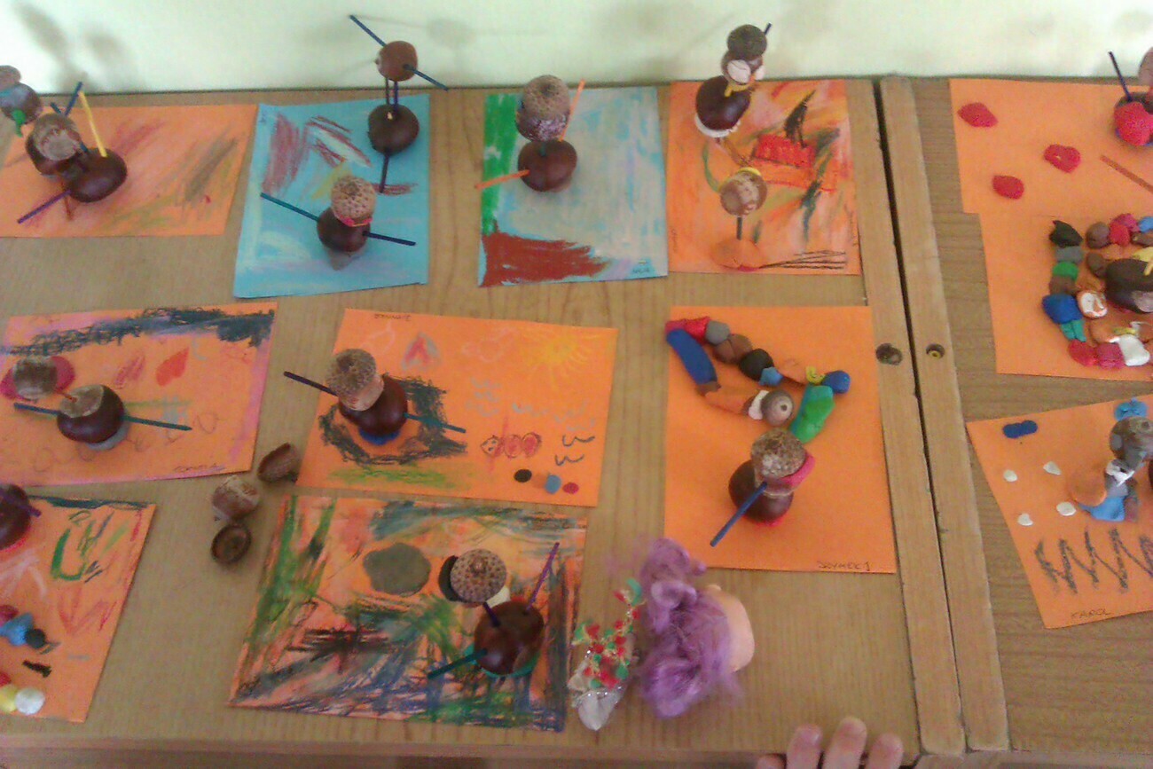 Nasze kosze pełne były skarbów jesieni, które zebraliśmy na wcześniejszych spacerach i wyprawach do lasu. Od rana zabraliśmy się za ludziki z kasztanów. Pani pomagała zrobić dziurki z kasztanach i żołędziach, a my wkładaliśmy do nich kolorowe zapałki. Prace można było wzbogacić o rysunki pastelami, a także wyklejanie plasteliną. Obrazy, które stworzyliśmy, były bardzo ciekawe i kolorowe. Zaraz po wykonaniu prac plastycznych czym prędzej wyruszyliśmy na jesienny spacer do pobliskiego parku na Wzgórzu Kościuszki. Pogoda dopisywała, a park jesienią wyglądał pięknie. Przedszkolaki bawiły się w berka, rzucały kolorowymi liśćmi i tarzały w kopcach, które wcześniej usypały. Radości i śmiechu było bez liku. Wszyscy zadowoleni i bardzo głodni wróciliśmy do przedszkola. Dzień minął nam szybciutko :)