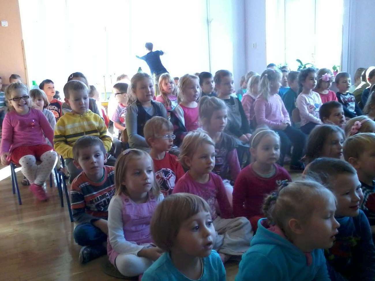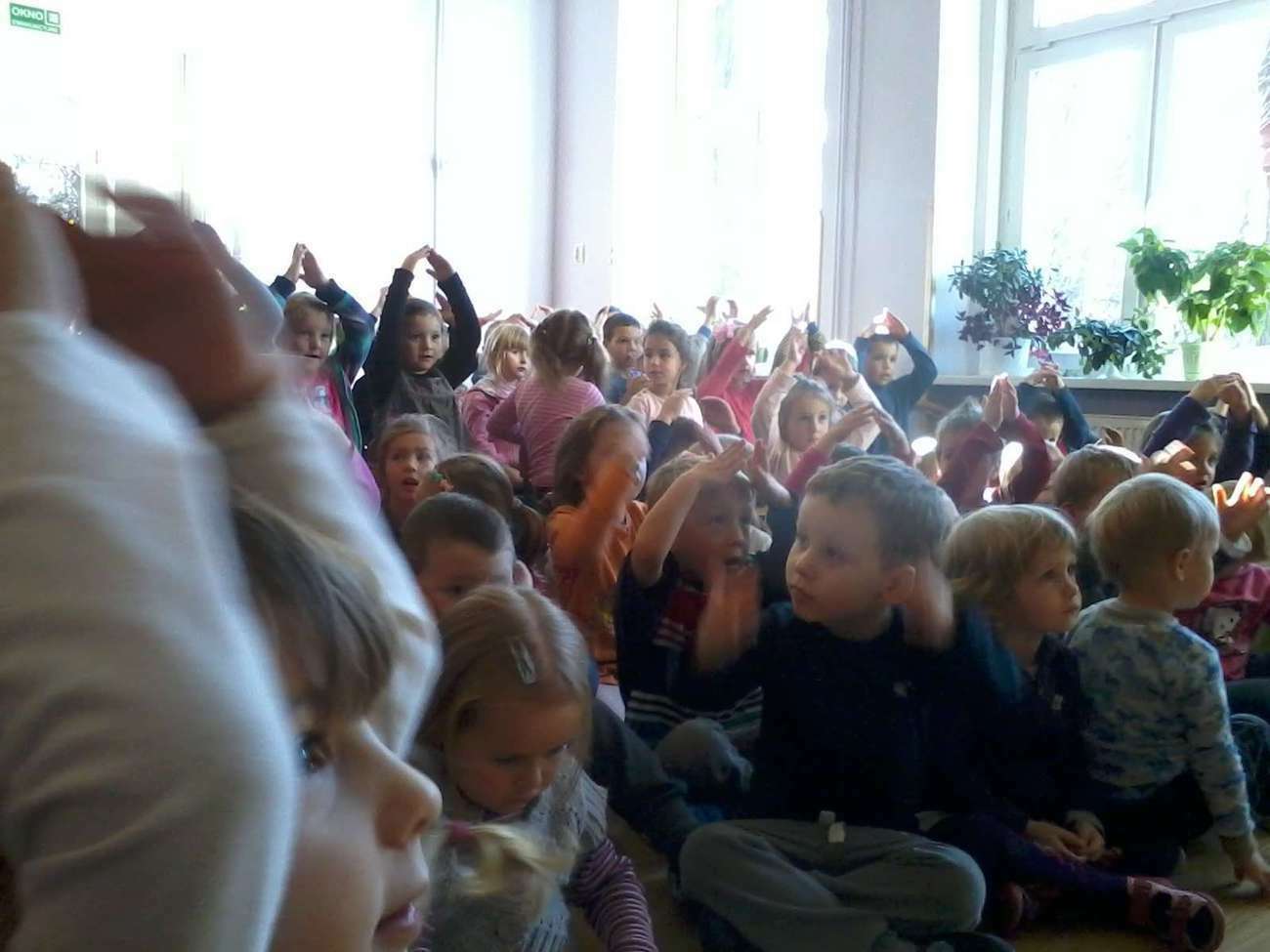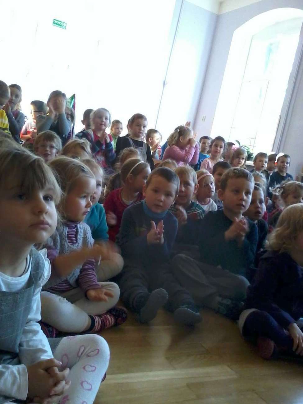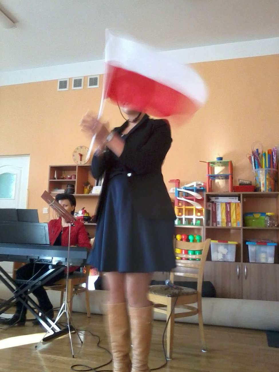 Tuptusiowe przedszkolaki musiały, także pokazać gościom z Filharmonii jak poprawnie trzymać flagę Polski , bo niestety zapomnieli.