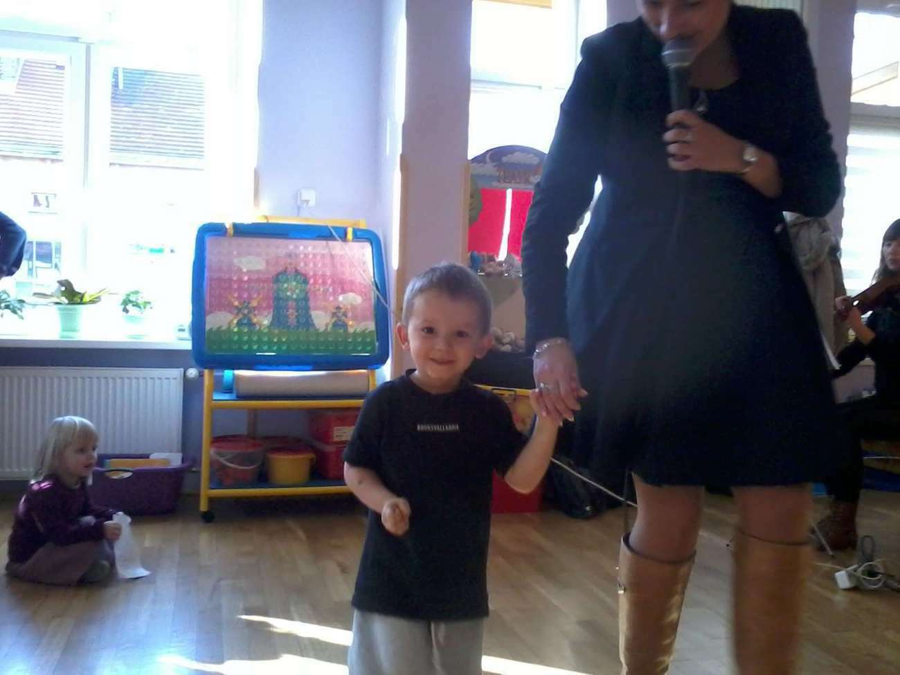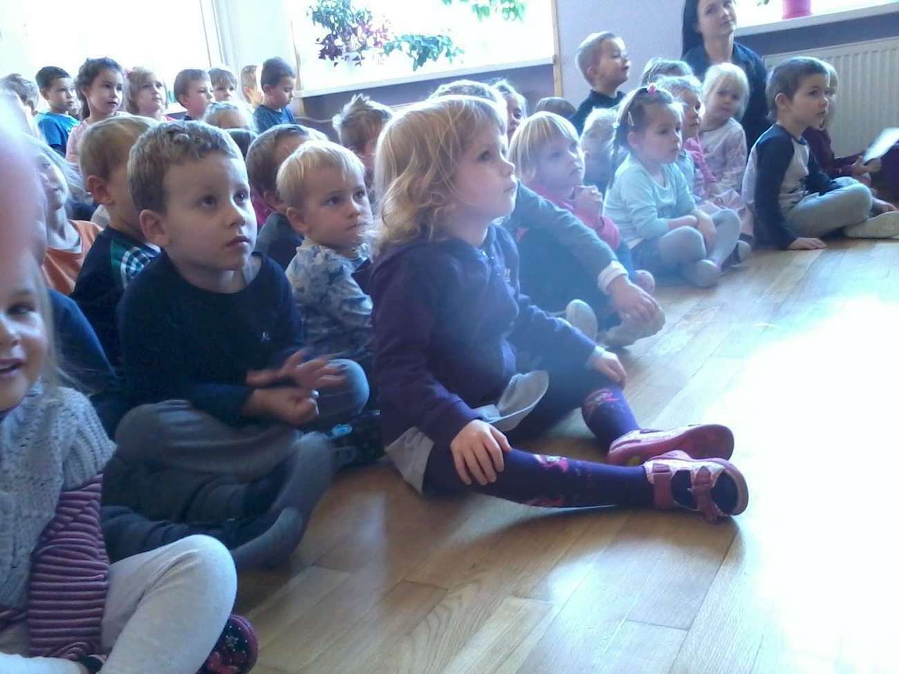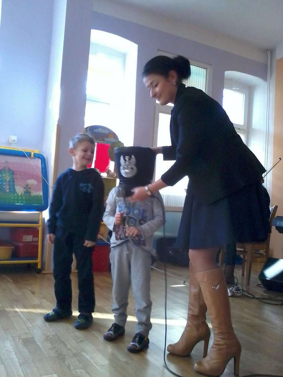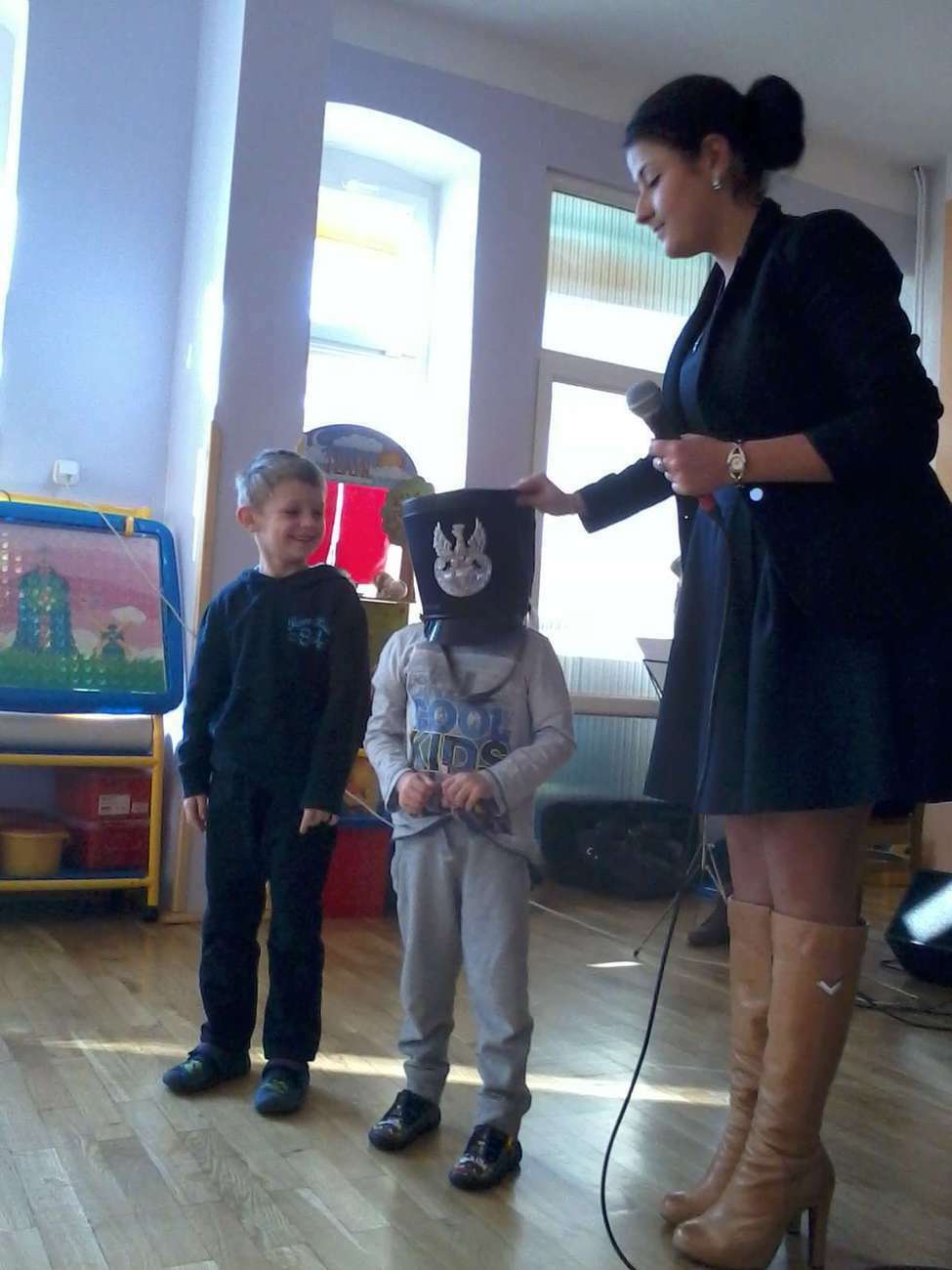 Tuptusiowe przedszkolaki musiały, także pokazać gościom z Filharmonii jak poprawnie trzymać flagę Polski , bo niestety zapomnieli.