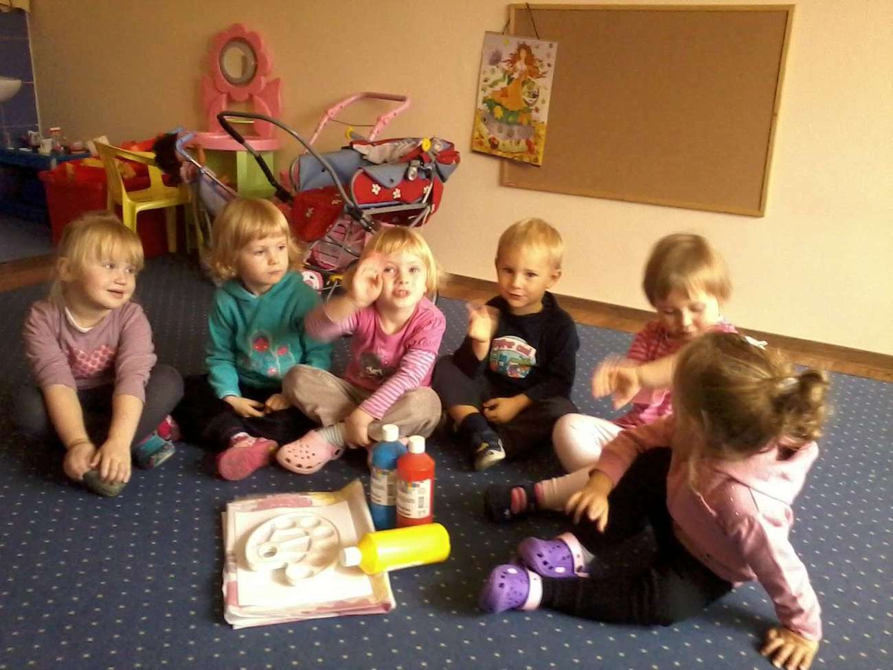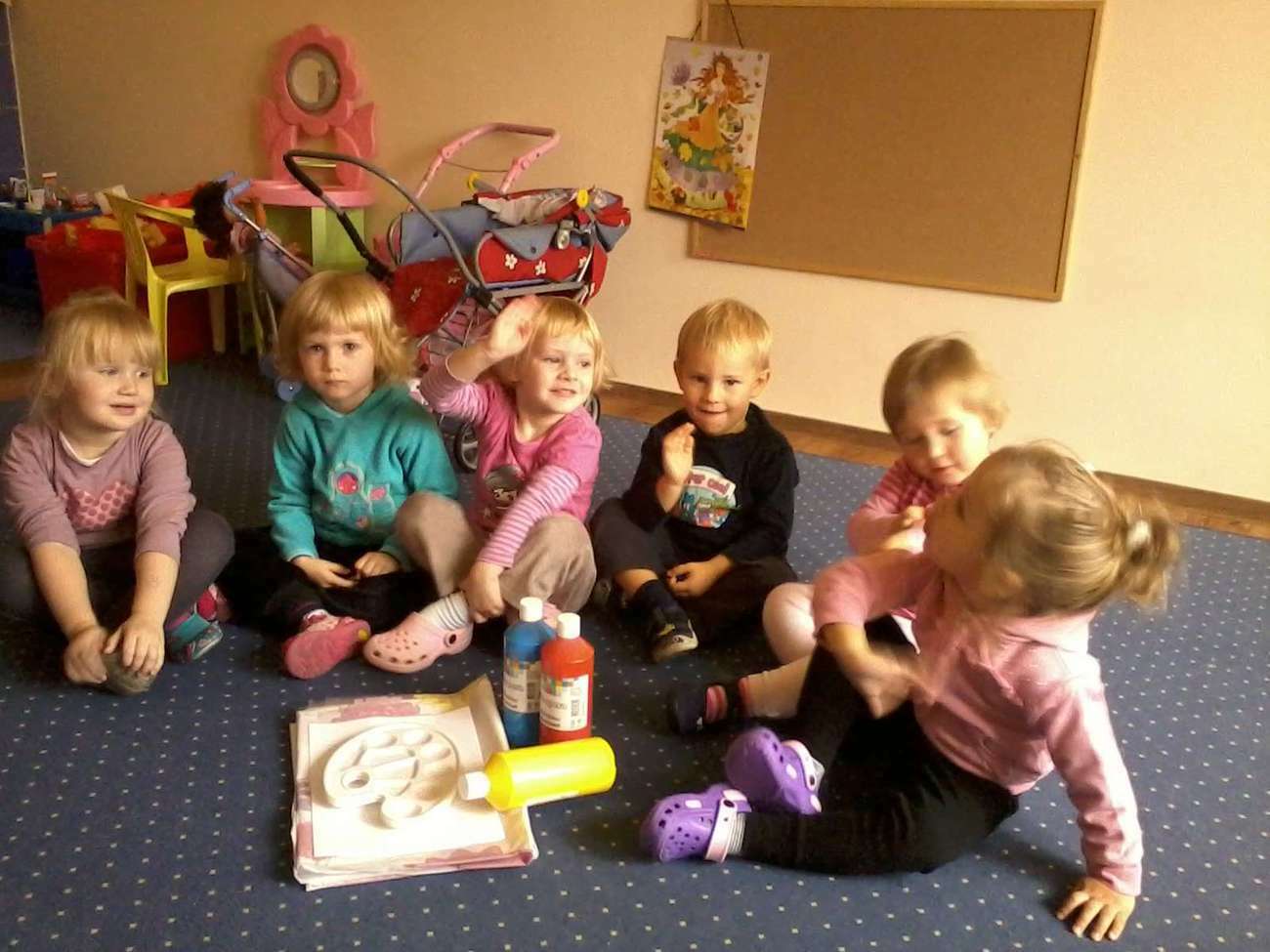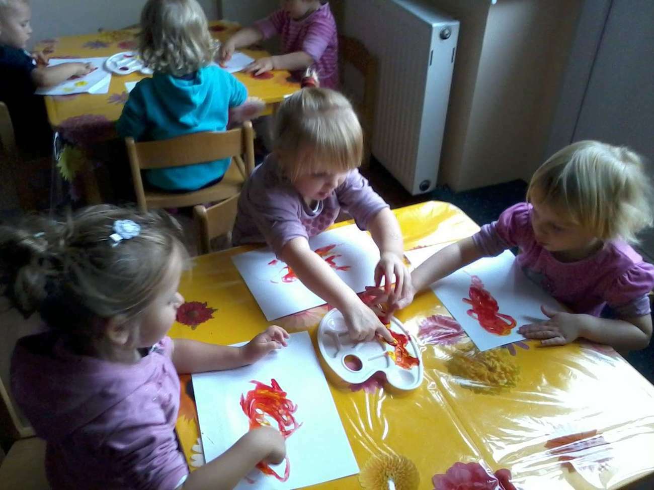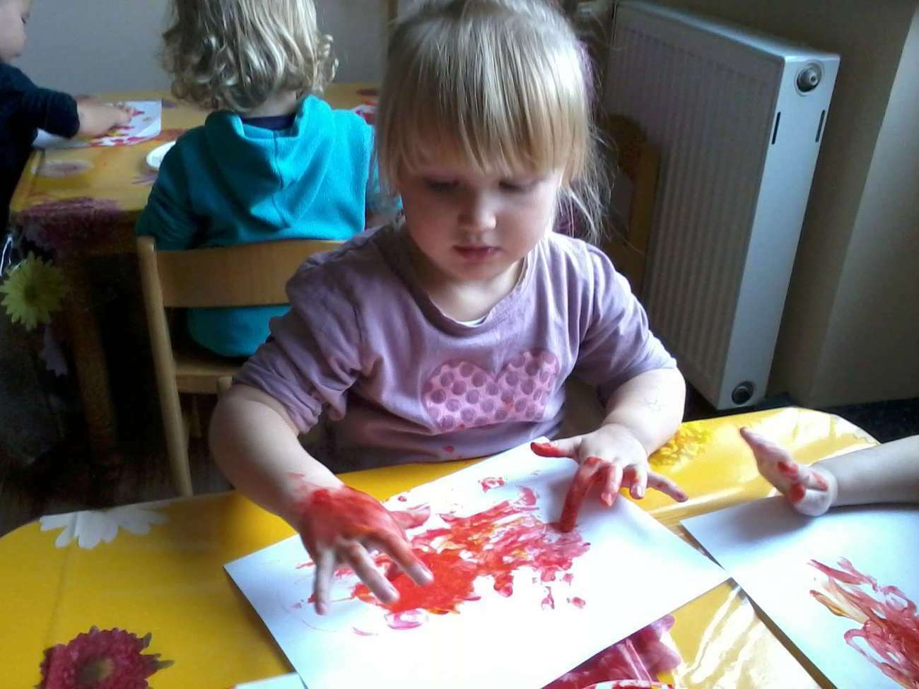 Pewnego dnia pani Klaudia obiecała maluszkom, że po raz pierwszy będą malowały farbami. Choć obawiała się tylko jednego, żeby tygryski wyszły "czysto" z tej zabawy nie zapominając o sali .