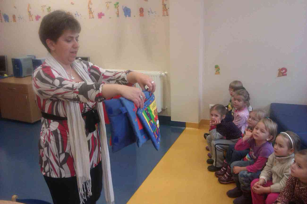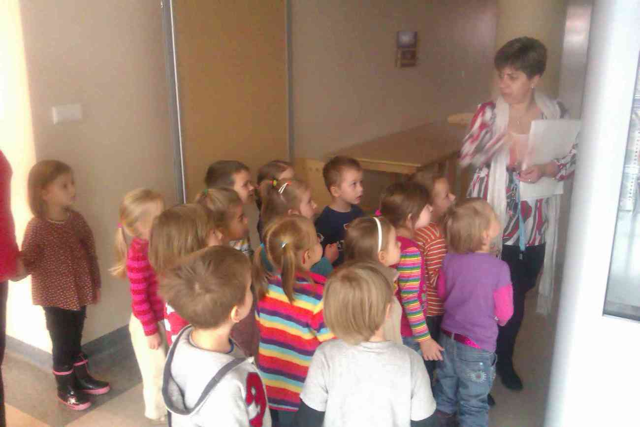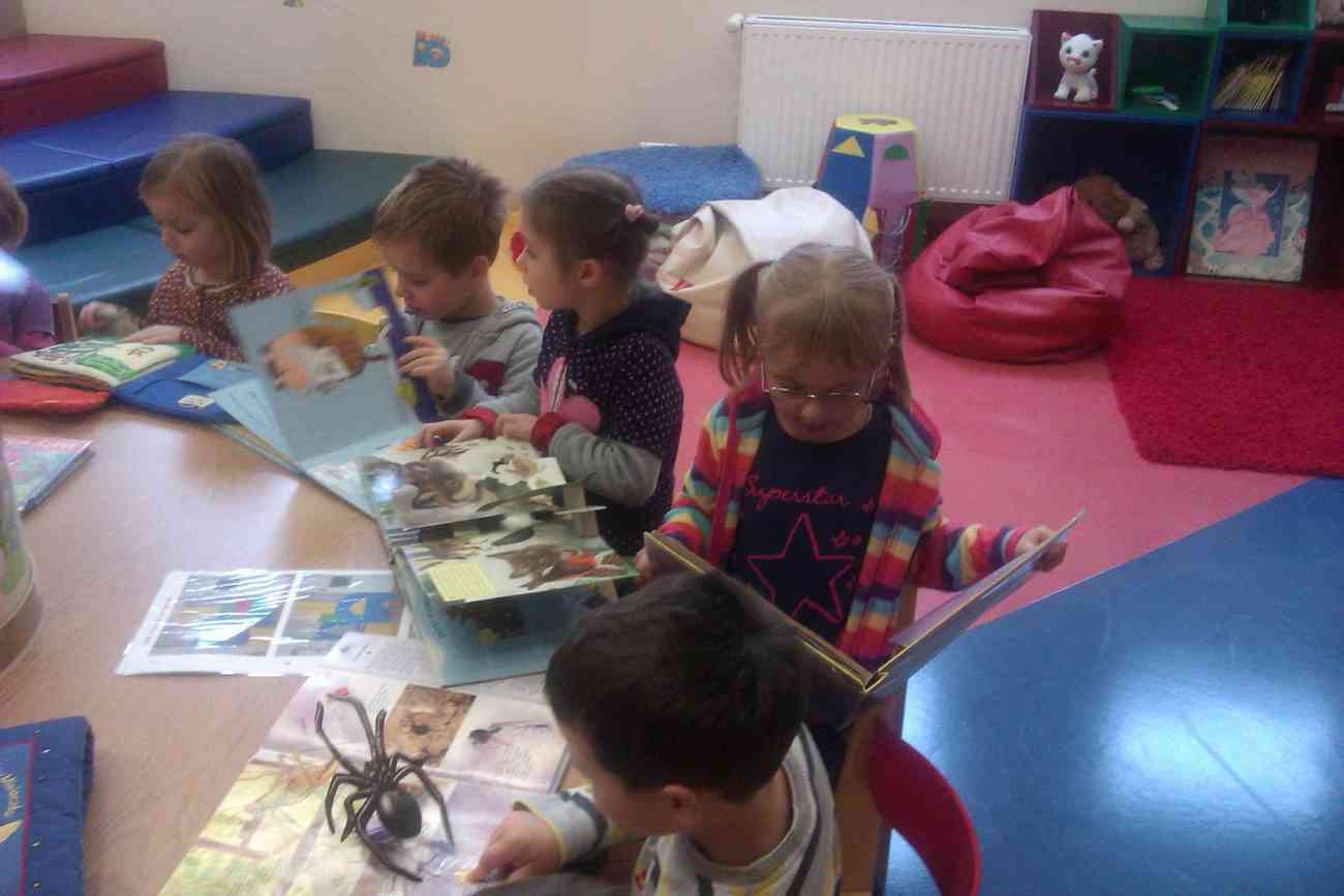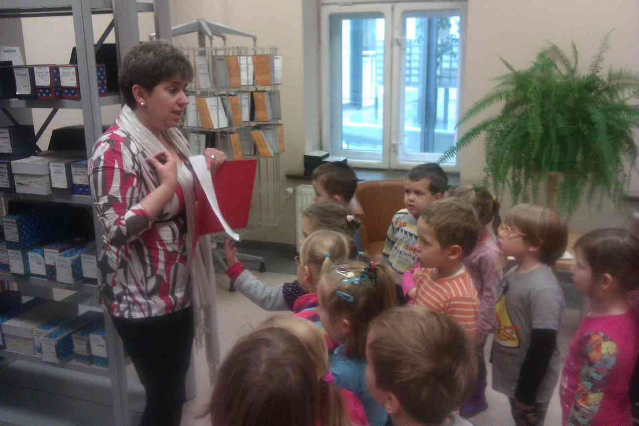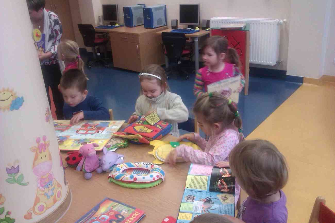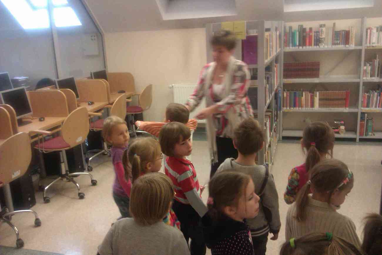 W piątek mimo ponurej pogody wybraliśmy się do Książnicy Karkonoskiej na lekcję biblioteczną. Było to nasze pierwsze wyjście w tego typu miejsce, dlatego też wcześniej przypomnieliśmy sobie jak należy się zachowywać w bibliotece. Przedszkolaki dzielnie i bardzo sprawnie dotarły na miejsce. Nie da się ukryć, że coraz sprawniej poruszamy się całą grupą. Widać, że częste i długie spacery przyniosły efekty. Urwisy nawet nie zauważyły, kiedy znaleźliśmy się na miejscu :) Spotkanie rozpoczęliśmy od zwiedzania biblioteki. Pani bibliotekarka obiecała pokazać nam miejsca niedostępne dla odwiedzających bibliotekę czytelników. Tak też się stało. Odwiedziliśmy wszystkie piętra biblioteki . Mogliśmy zobaczyć książki dla niewidomych i dowiedzieć się jak uczą się pisać co okazało się nie lada wyczynem. Mogliśmy również zobaczyć wystawę robaków, która niezwykle nas zainteresowała. Odwiedziliśmy także panie, które pracują w piwnicy i wysyłają ksiązki specjalna winda dla książek. Na końcu odwiedziliśmy czytelnie dla dzieci do której każdy przedszkolak obiecał zabrać rodziców. Pani bibliotekarka pokazała nam wiele książek dla dzieci, także niezwykle ciekawe i pobudzające wyobraźnię ksiązki przestrzenne. Wszyscy otrzymali zakładki do ksiązki i nalepki z logo akcji "Cała Polska Czyta Dzieciom". Każdy przedszkolak obiecał przypomnieć w domu jak ważne dla dzieci jest czytanie książek i jak najszybciej wrócić do czytelni z rodzicami:)
