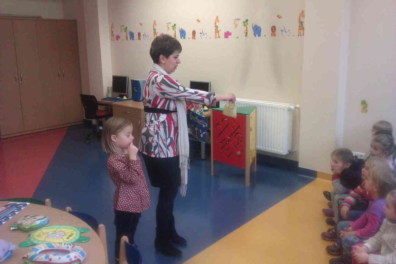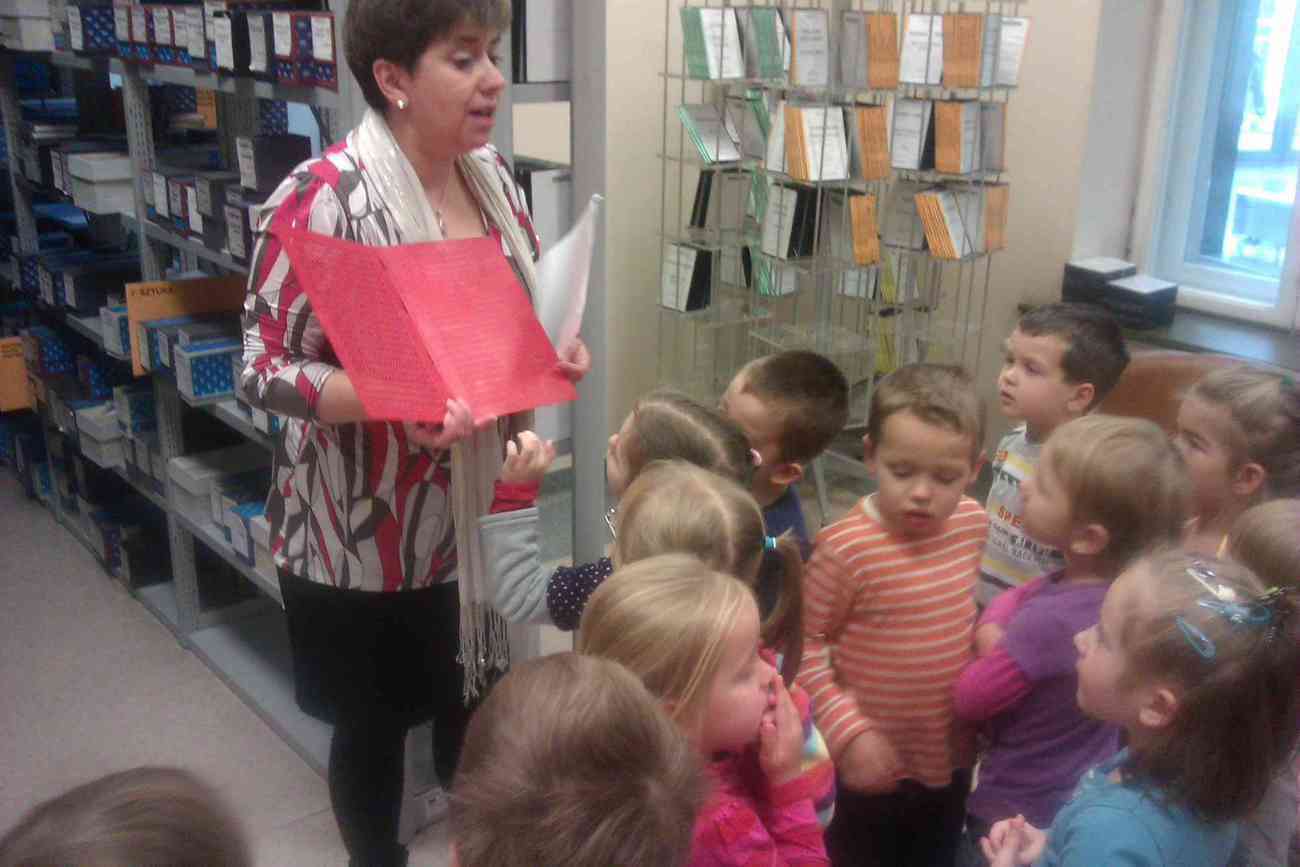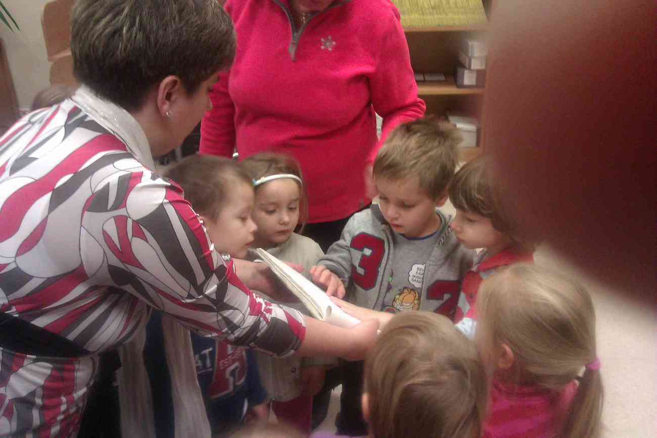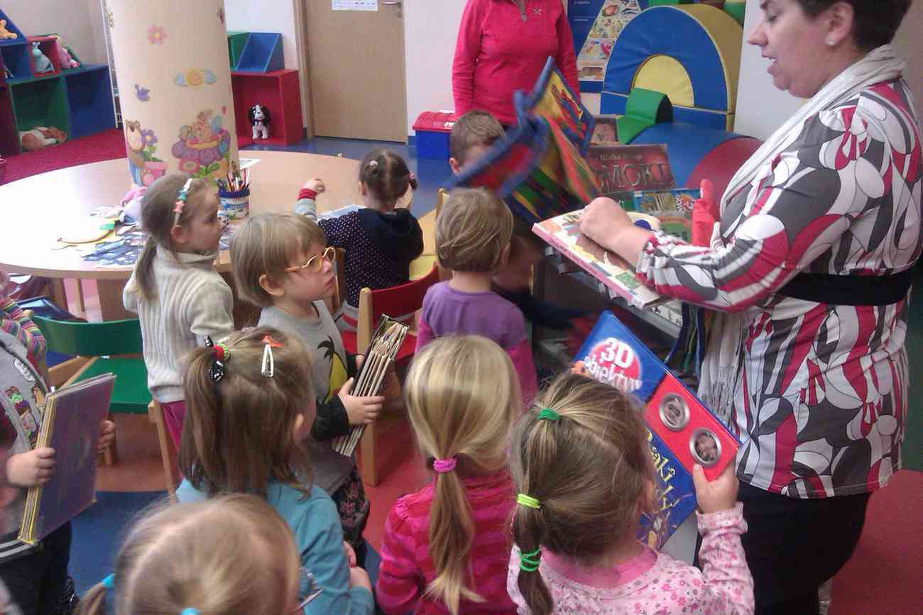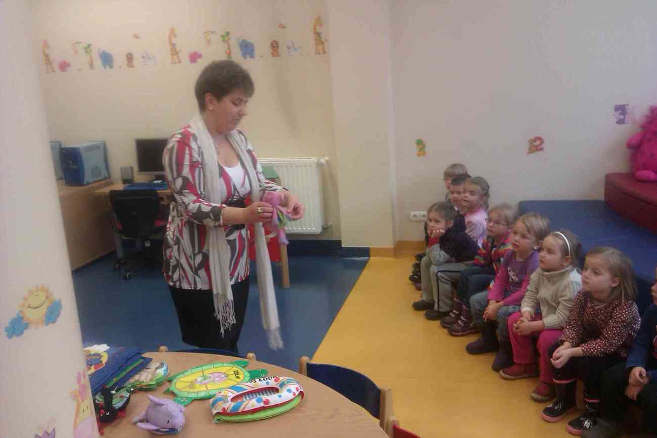 W piątek mimo ponurej pogody wybraliśmy się do Książnicy Karkonoskiej na lekcję biblioteczną. Było to nasze pierwsze wyjście w tego typu miejsce, dlatego też wcześniej przypomnieliśmy sobie jak należy się zachowywać w bibliotece. Przedszkolaki dzielnie i bardzo sprawnie dotarły na miejsce. Nie da się ukryć, że coraz sprawniej poruszamy się całą grupą. Widać, że częste i długie spacery przyniosły efekty. Urwisy nawet nie zauważyły, kiedy znaleźliśmy się na miejscu :) Spotkanie rozpoczęliśmy od zwiedzania biblioteki. Pani bibliotekarka obiecała pokazać nam miejsca niedostępne dla odwiedzających bibliotekę czytelników. Tak też się stało. Odwiedziliśmy wszystkie piętra biblioteki . Mogliśmy zobaczyć książki dla niewidomych i dowiedzieć się jak uczą się pisać co okazało się nie lada wyczynem. Mogliśmy również zobaczyć wystawę robaków, która niezwykle nas zainteresowała. Odwiedziliśmy także panie, które pracują w piwnicy i wysyłają ksiązki specjalna winda dla książek. Na końcu odwiedziliśmy czytelnie dla dzieci do której każdy przedszkolak obiecał zabrać rodziców. Pani bibliotekarka pokazała nam wiele książek dla dzieci, także niezwykle ciekawe i pobudzające wyobraźnię ksiązki przestrzenne. Wszyscy otrzymali zakładki do ksiązki i nalepki z logo akcji "Cała Polska Czyta Dzieciom". Każdy przedszkolak obiecał przypomnieć w domu jak ważne dla dzieci jest czytanie książek i jak najszybciej wrócić do czytelni z rodzicami:)