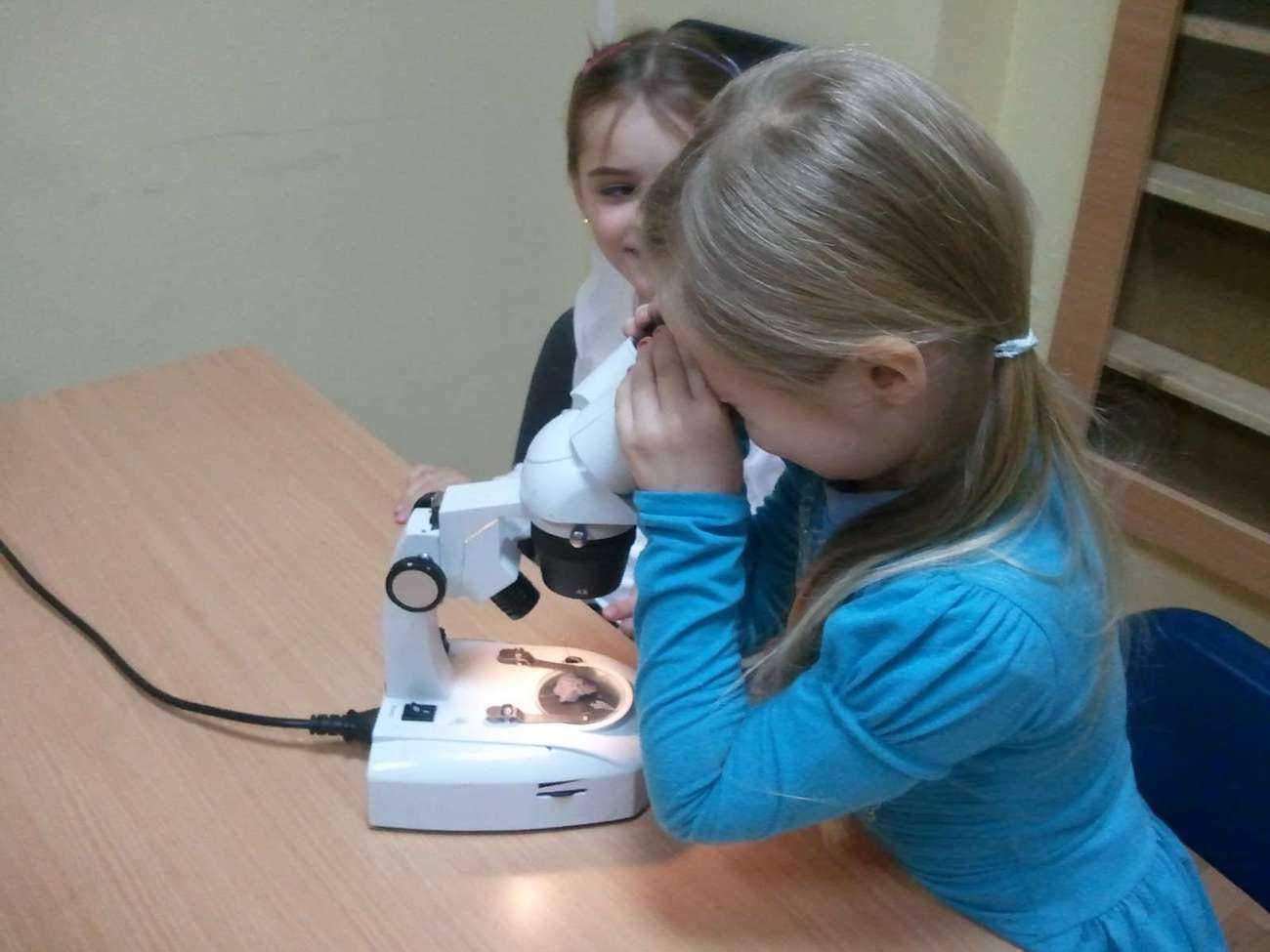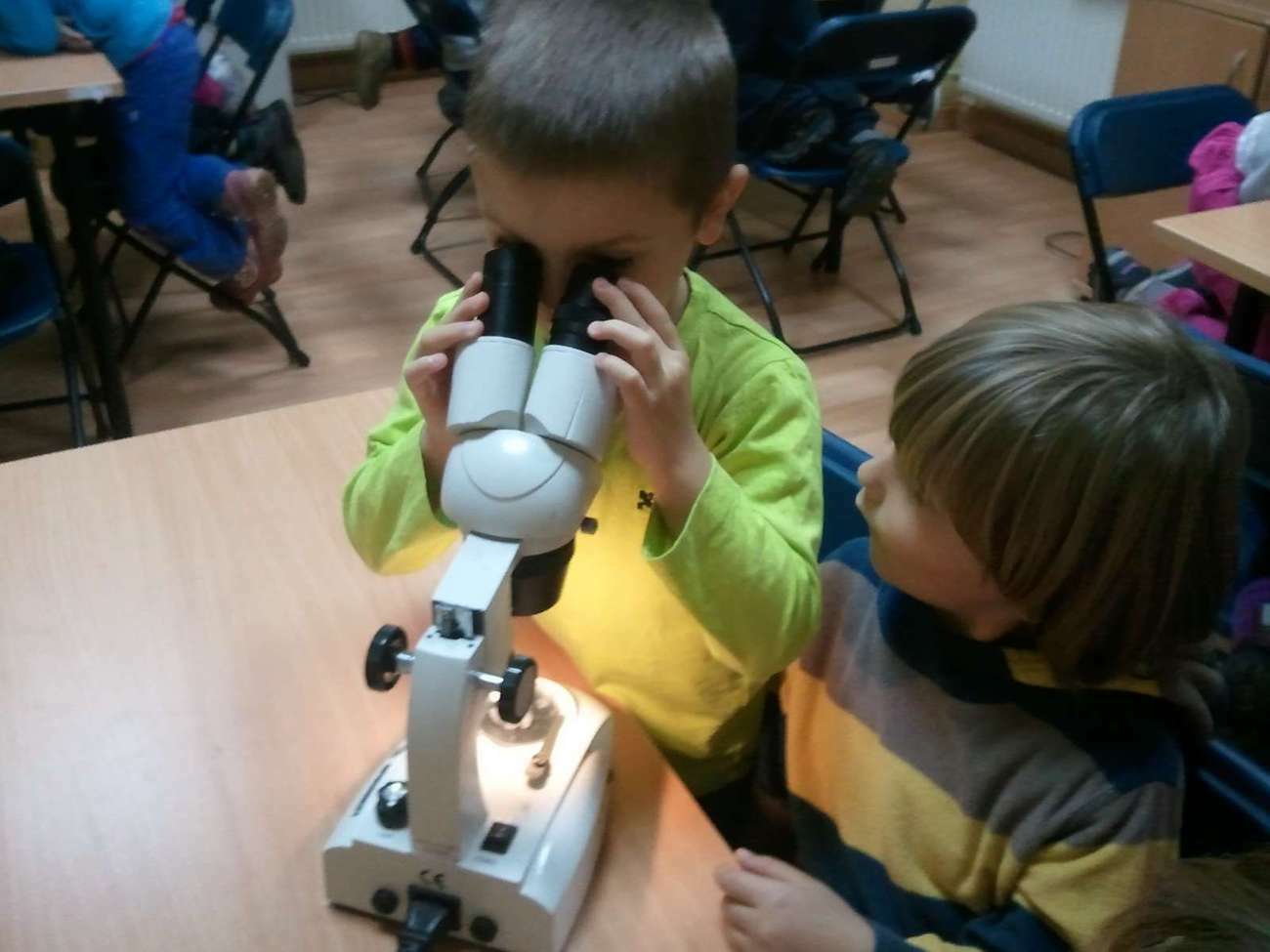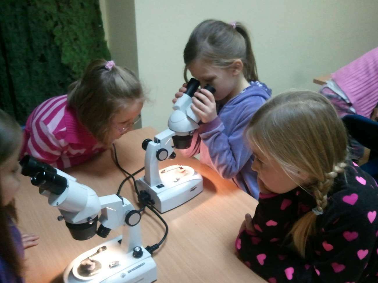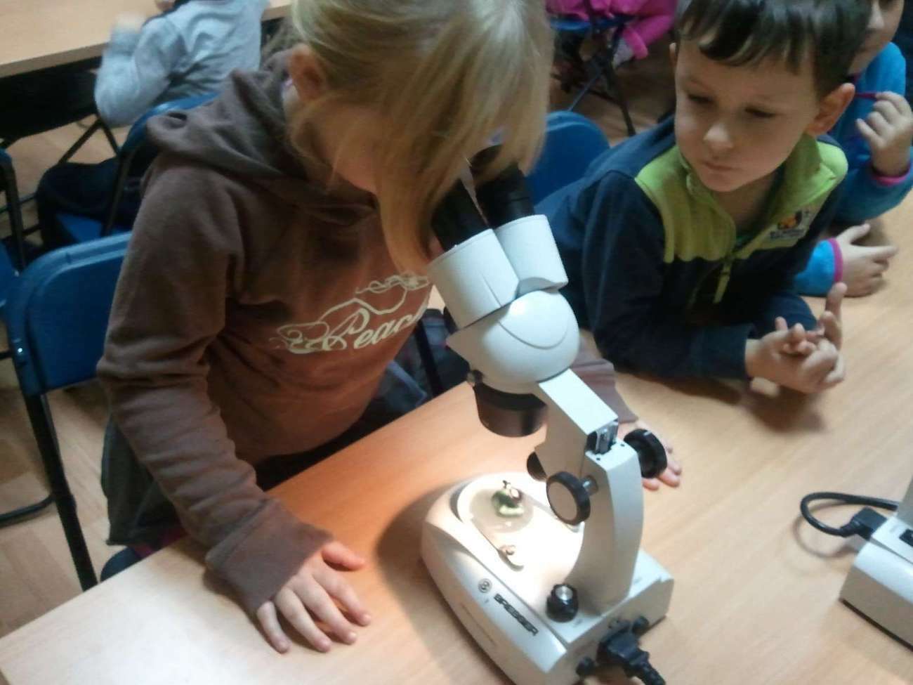 Po zakończonej prezentacji przeszliśmy do drugiego pomieszczenia, gdzie w gablotach oglądaliśmy różne gatunki much, motyli, żuków, chrabąszczy i ważek. Mogliśmy się im przyjrzeć z bardzo bliska, dzięki binokularom, które udostępnił nam pan prowadzący spotkanie. W tym powiększeniu owady wydawały się strasznymi istotami nie z tego świata. Pomimo tego jak sami na początku przyznaliśmy, że nie każdy z nas lubi owady to po tym spotkaniu, wiemy, że są bardzo interesujące i warte bliższego poznania.