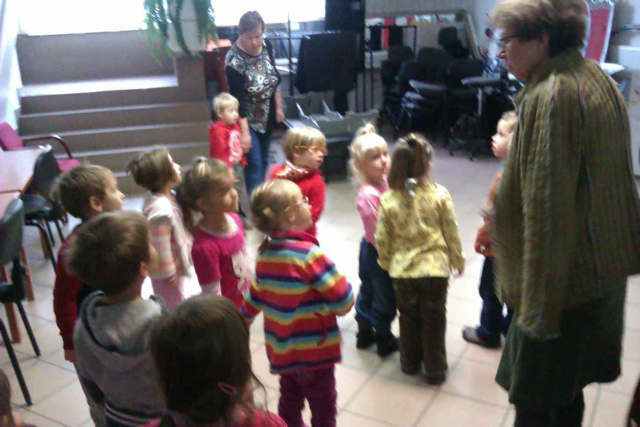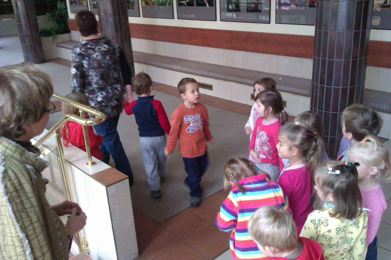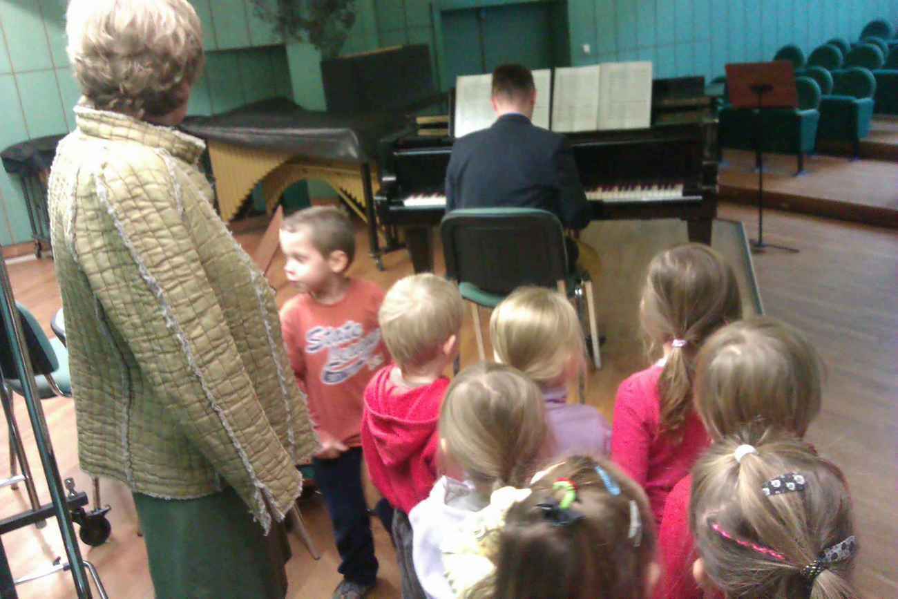 Na miejscu przywitała nas i oprowadziła pani Basia. Przedszkolaki zachowywały się bardzo kulturalnie, ponieważ nawet Urwisy wiedzą już, że jest to miejsce, w którym należy zachować ciszę, by nie przeszkadzać muzykom. Pani Basia pokazała nam główną salę jak również małe salki koncertowe, w których odbywają się nie tylko koncerty, ale także próby.