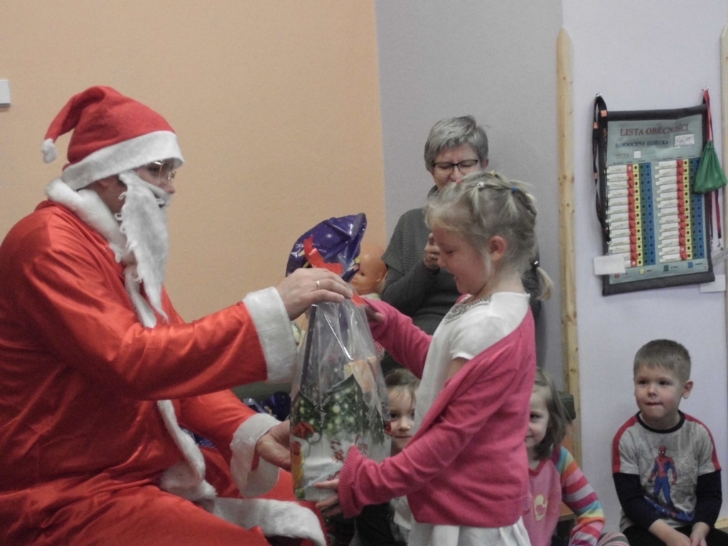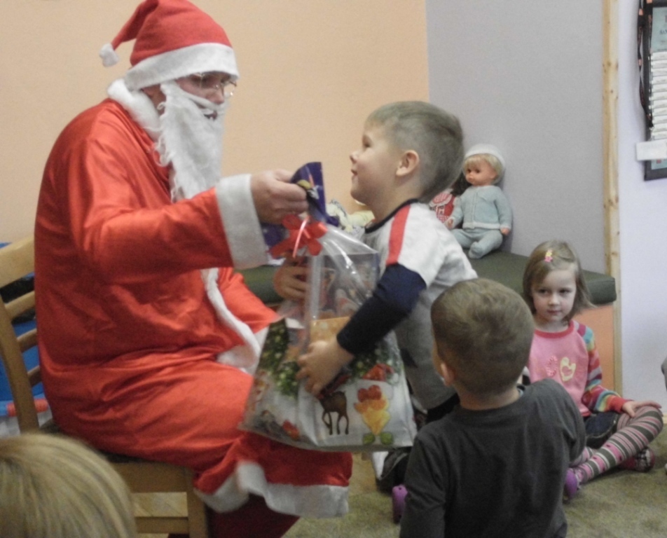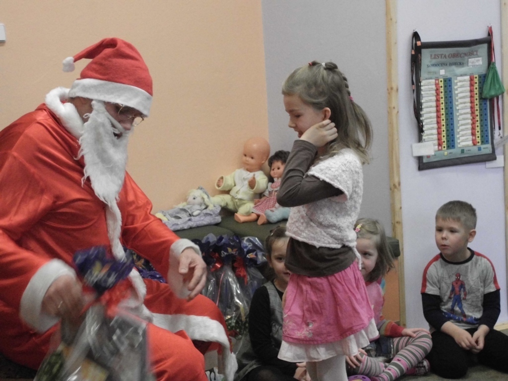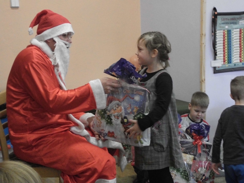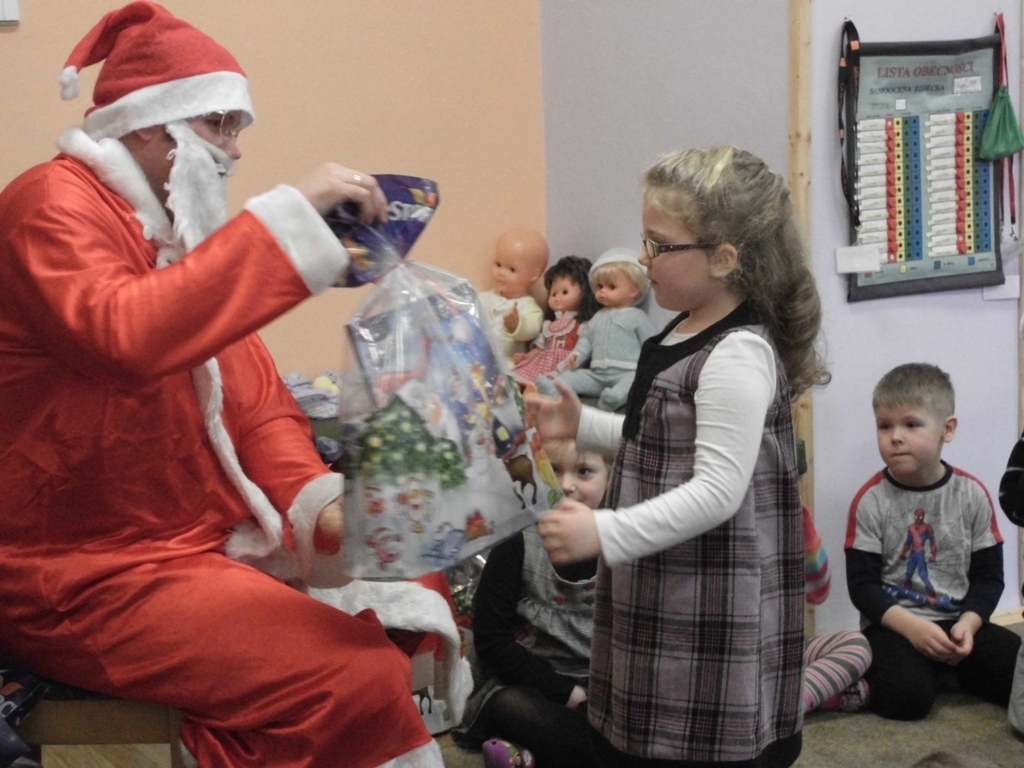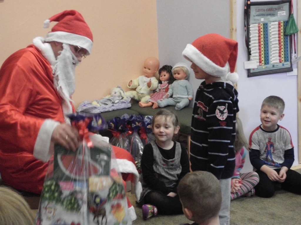 Wszyscy przywitaliśmy naszego gościa bardzo gorąco i zaprosiliśmy do wspólnego śpiewu, które zakończyło się wręczeniem oczekiwanych prezentów oraz zdjęciami.